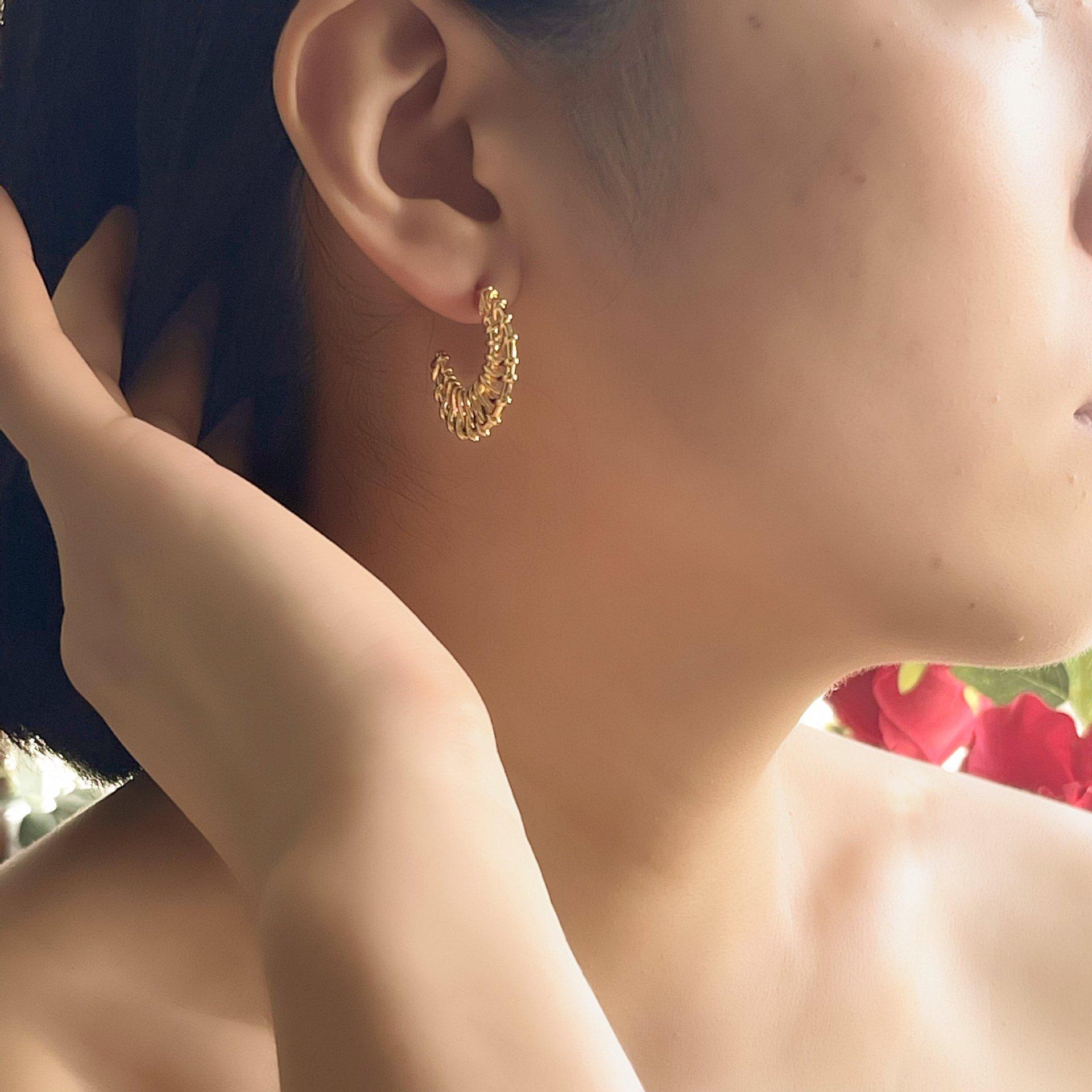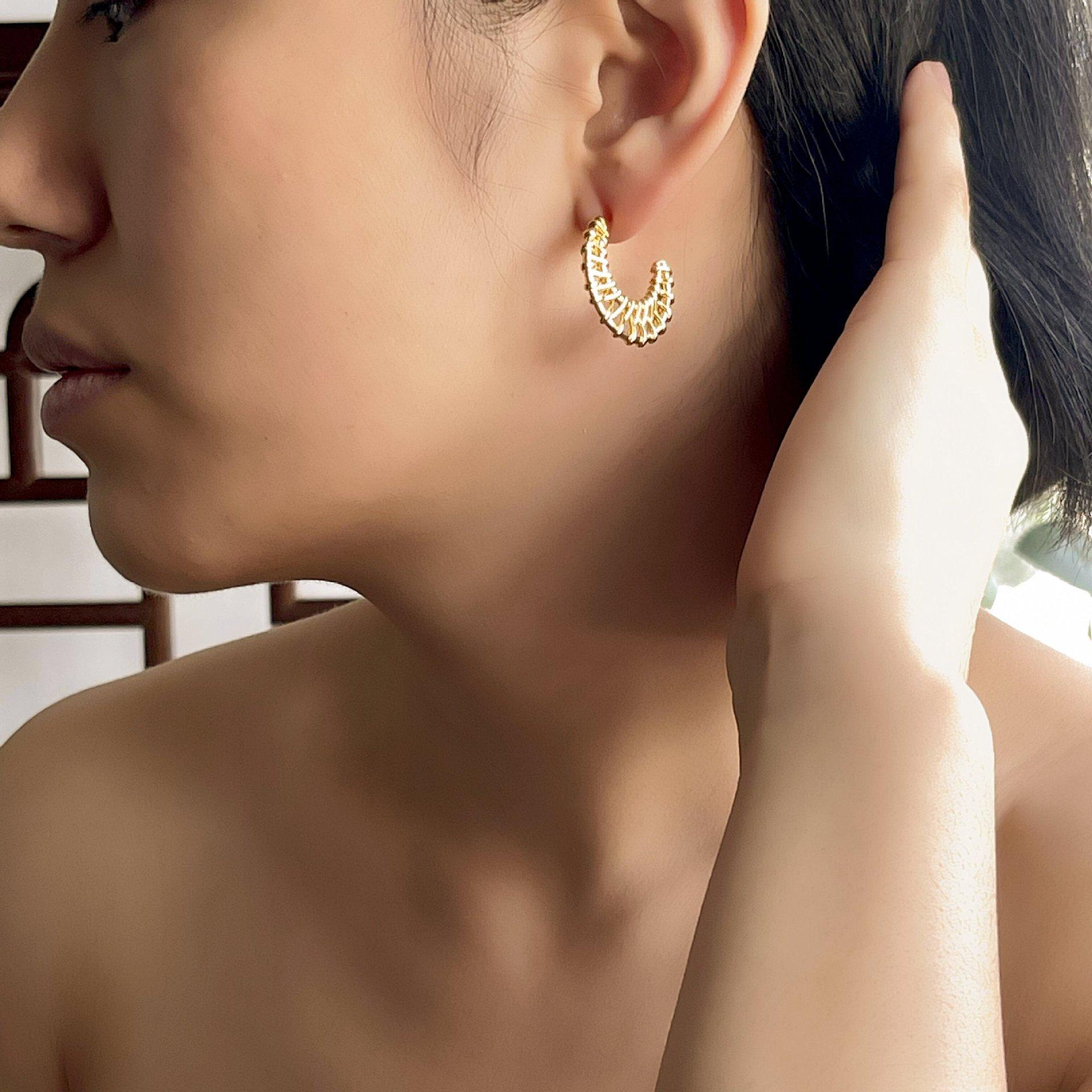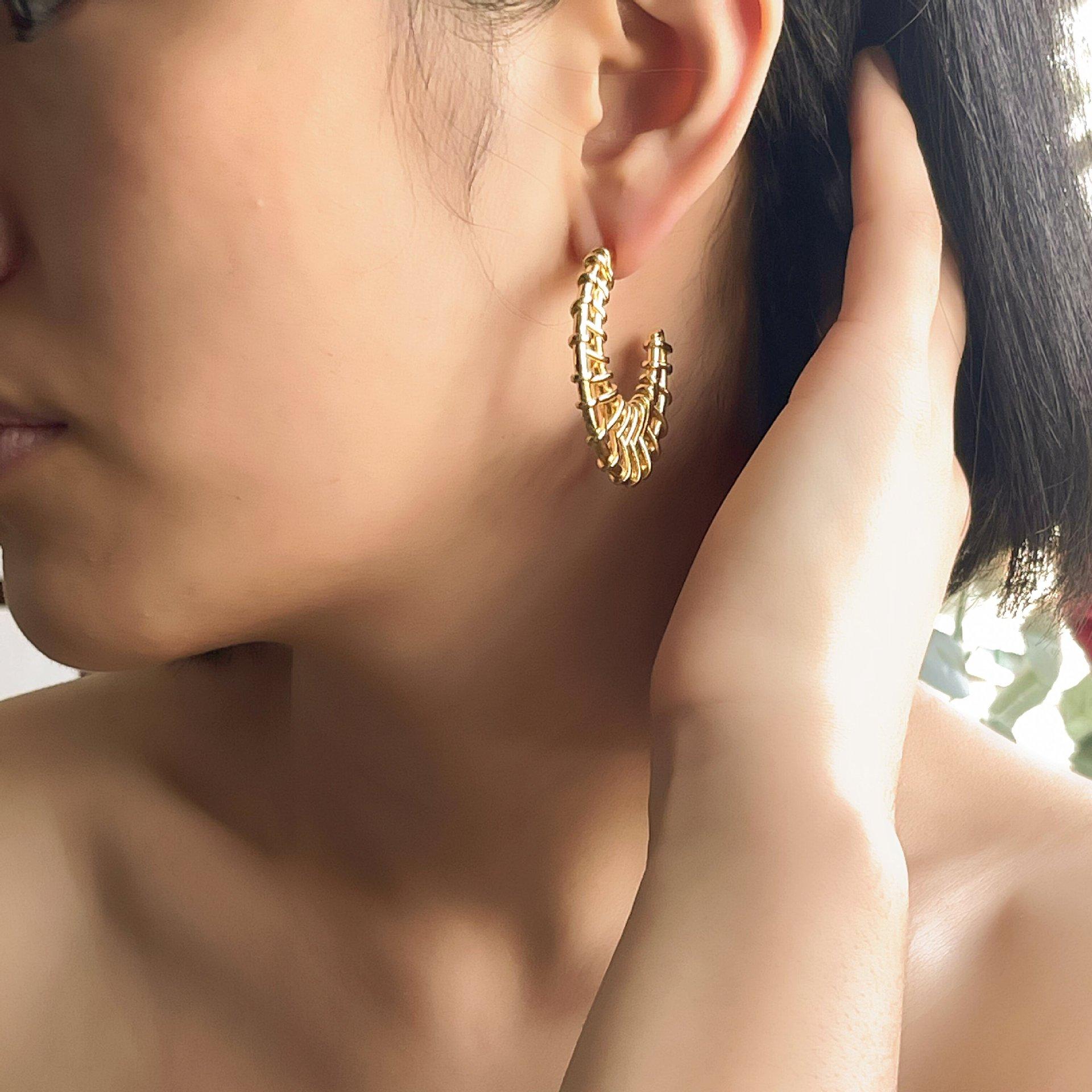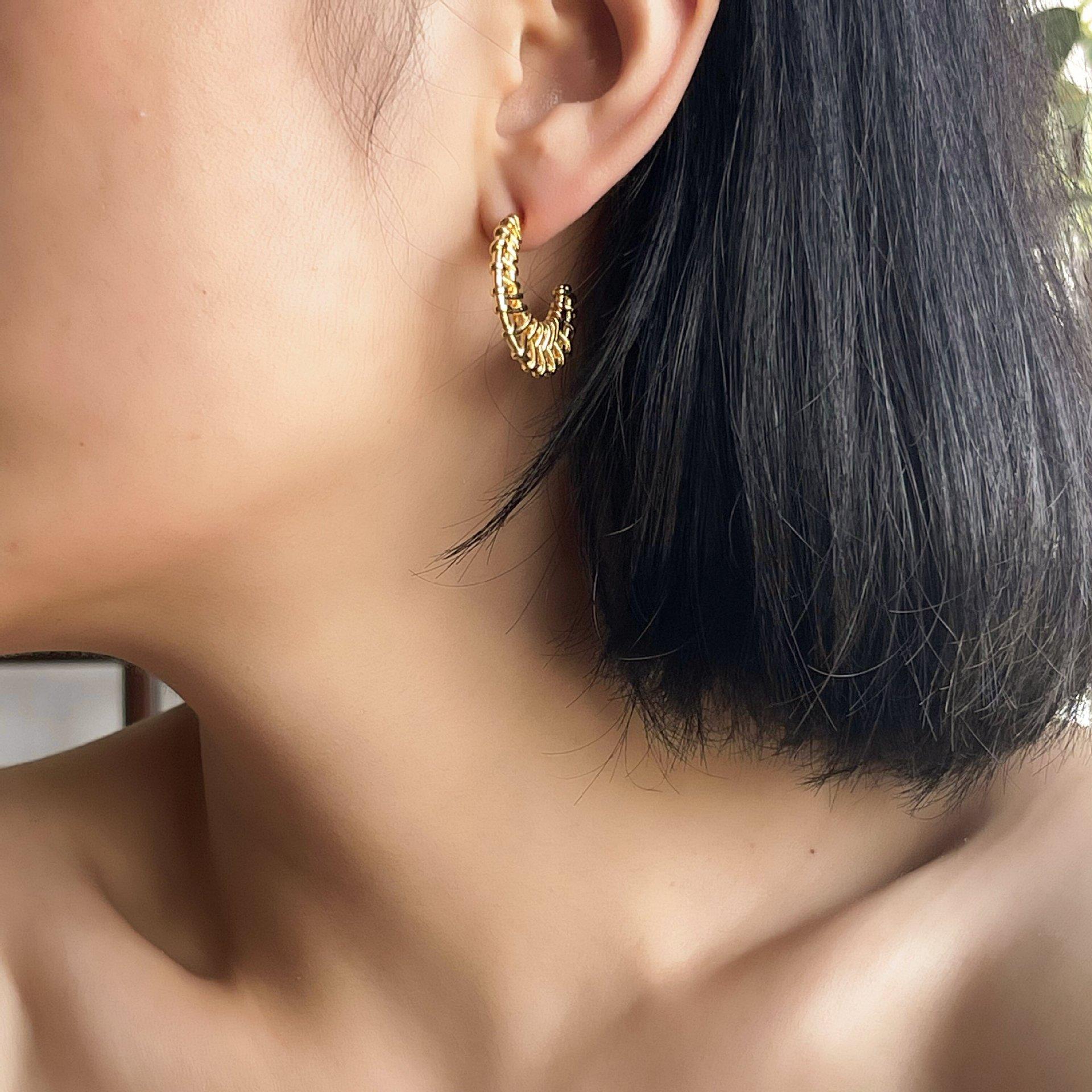 Aretes Geométricos Tejidos Simples Europeos y Americanos, Aretes Exagerados Personalizados, Estilo Vacacional, Aretes de Botón Geométricos Únicos de Lujo Ligero para Mujer