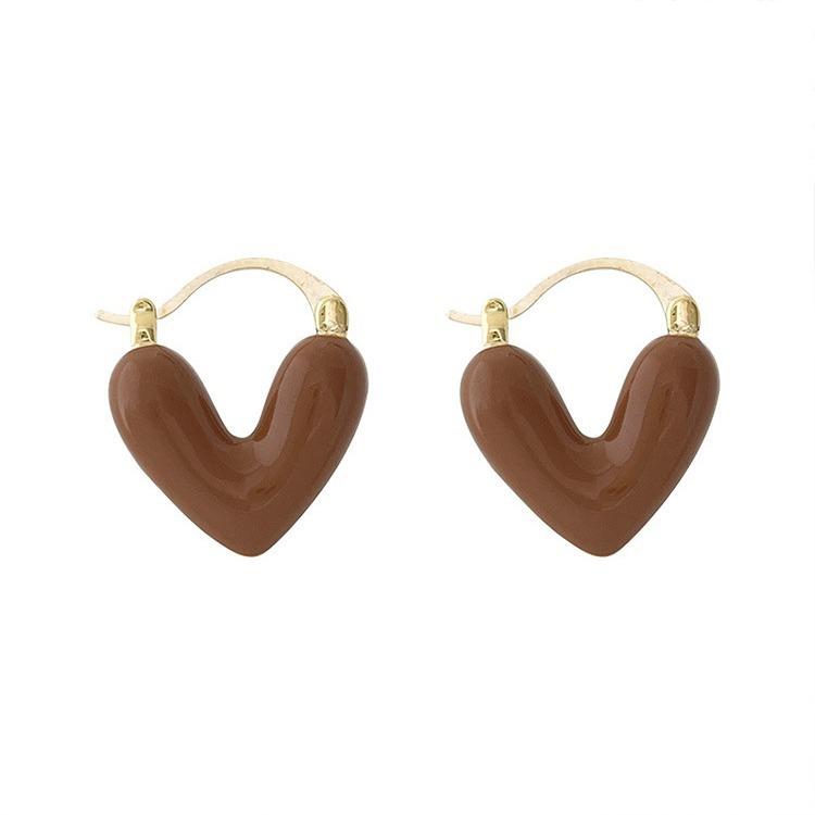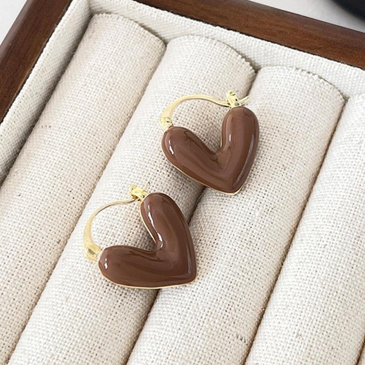 Nuevos pendientes elegantes de lujo con forma de corazón francés de alta gama con hebilla de oreja de amor y caída de aceite, diseño de nicho, pendientes que combinan con todo.