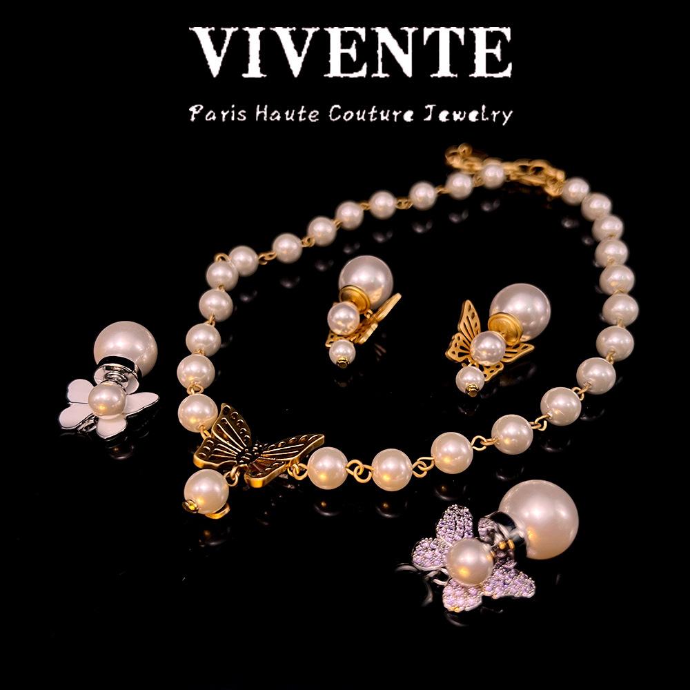 D Home - Collar de perlas de mariposa huecas, joyería ligera, de lujo, combina con todo, cadena de clavícula de alta gama, lote de anillos de alta versión