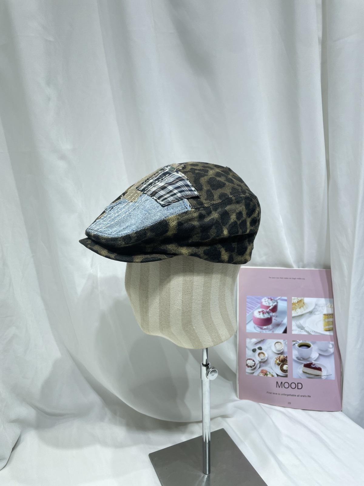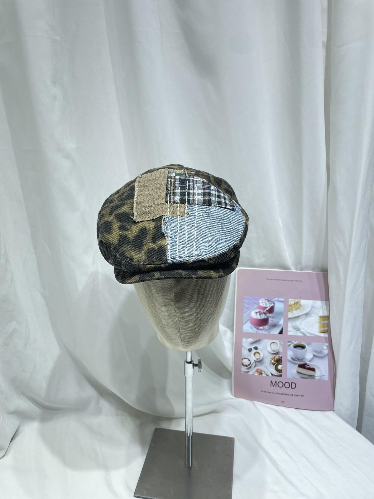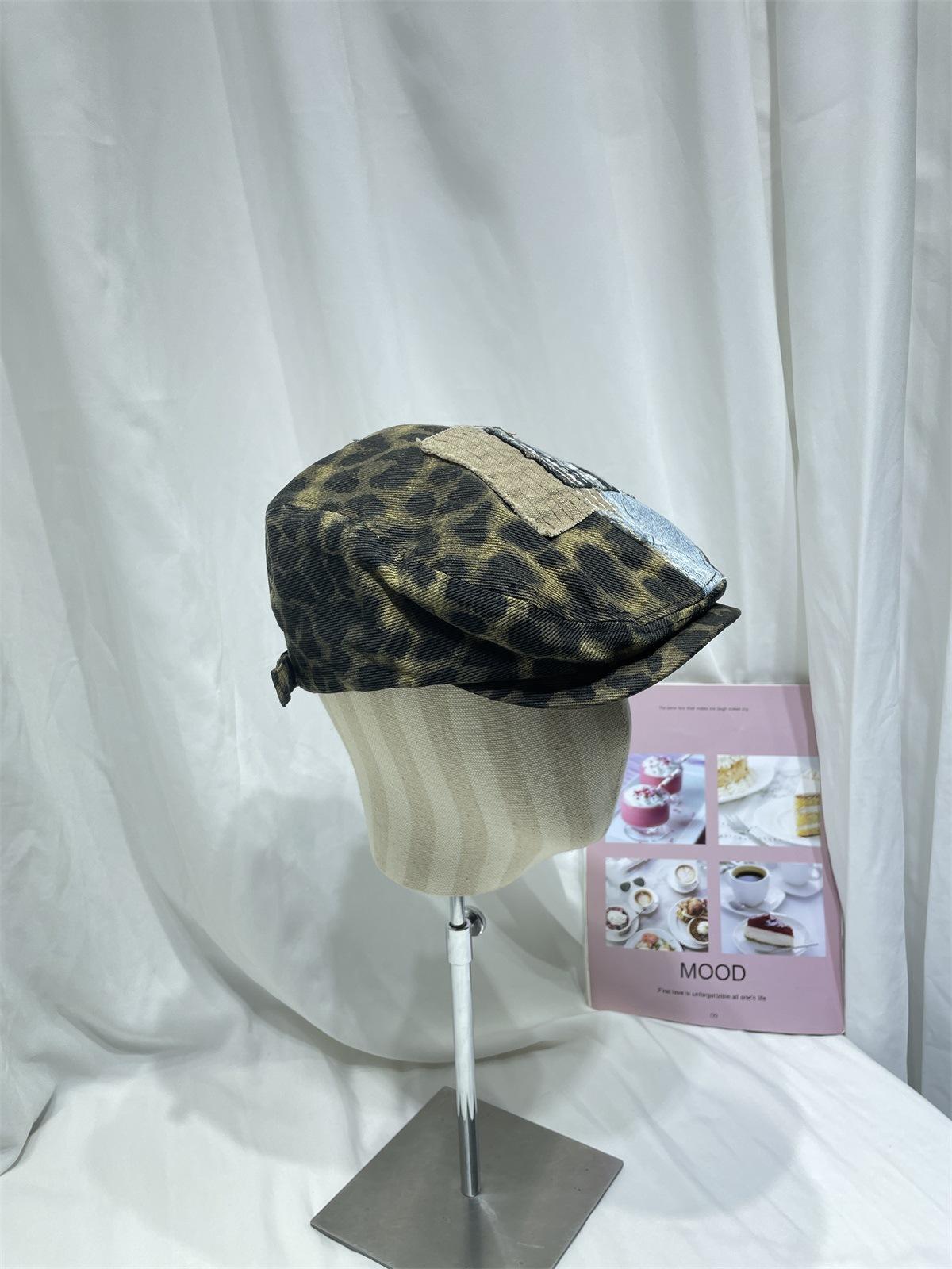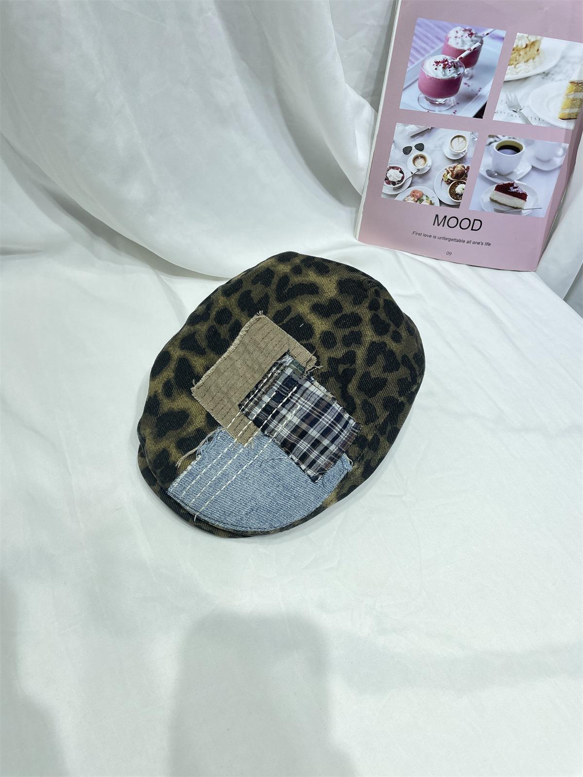 Compra Gorra progresiva con parche de estampado de leopardo retro japonés para niños, otoño e invierno, personalidad callejera, combina con todo, cara pequeña, boina de pintor, tendencia al por mayor en Joom.pro
