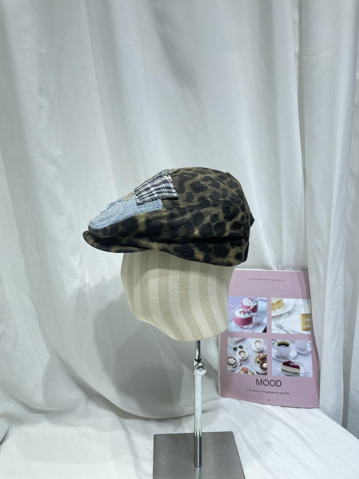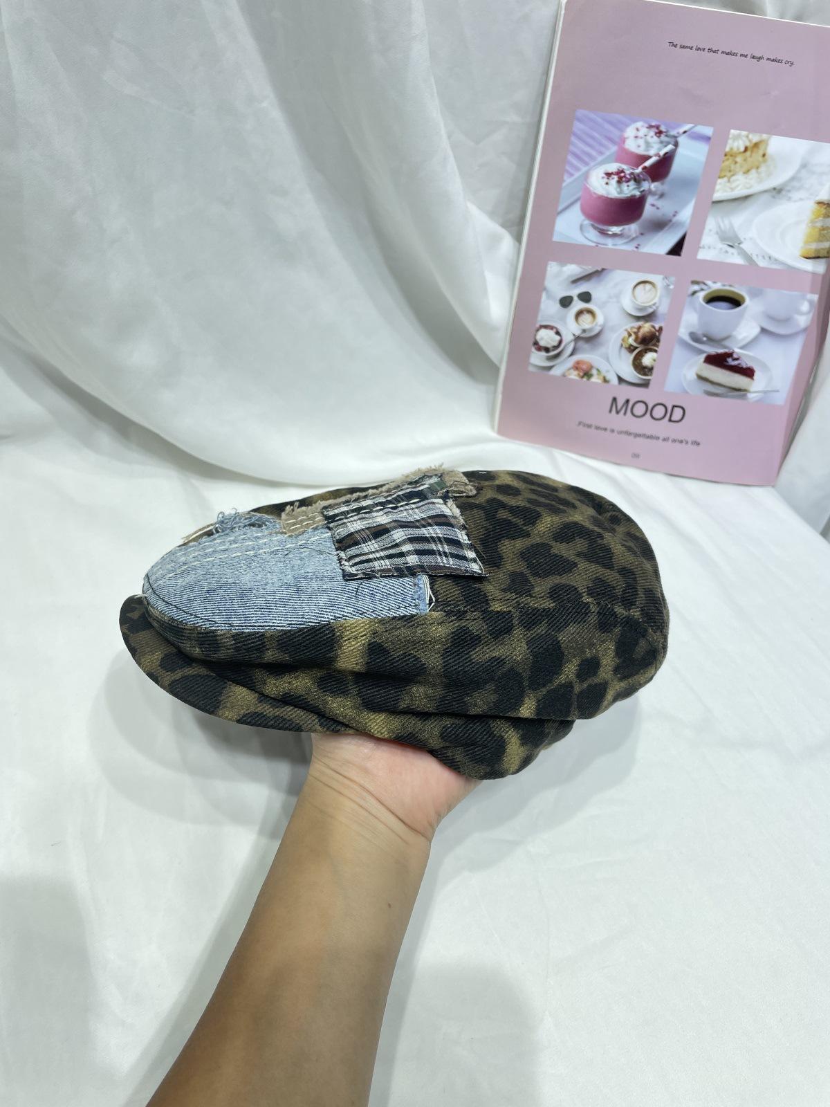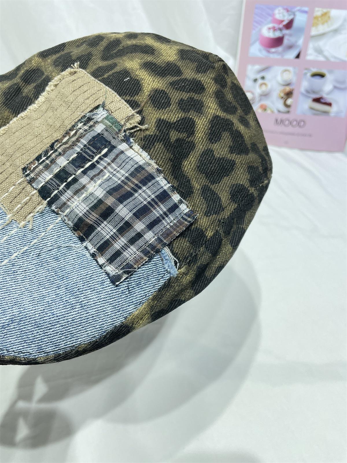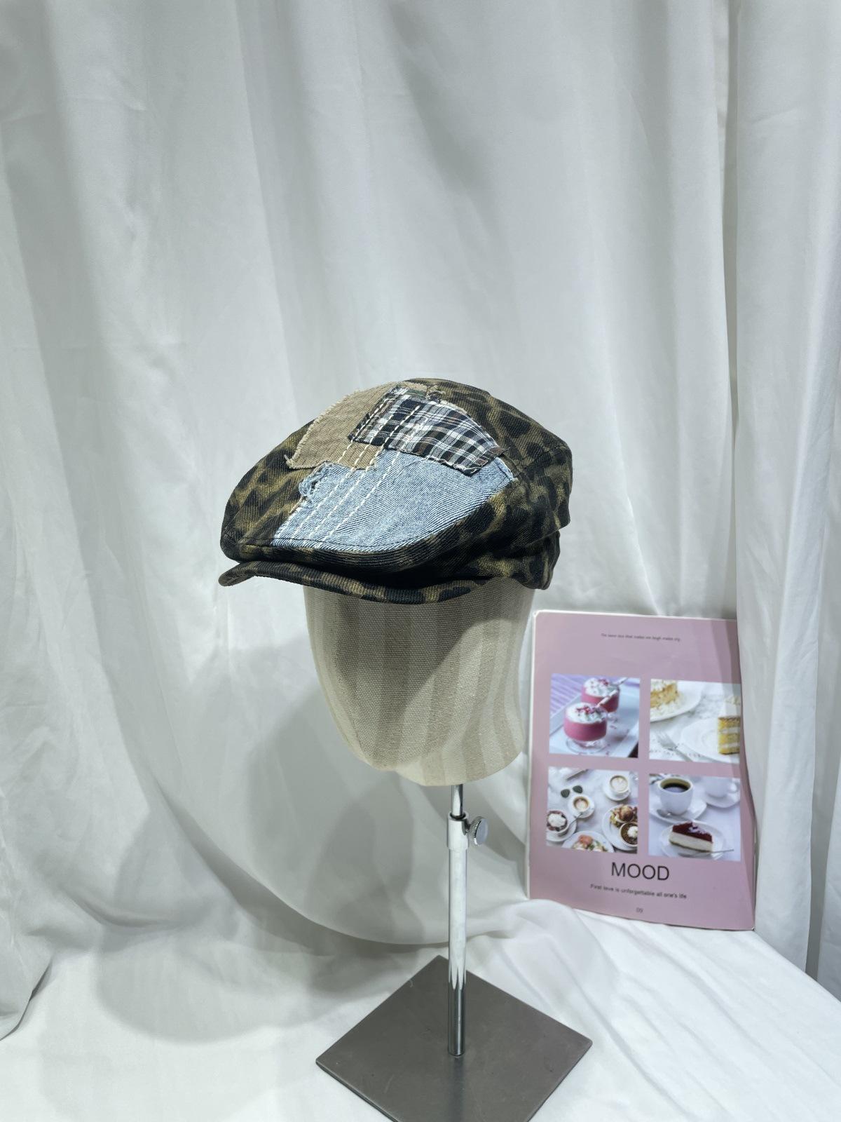 Compra Gorra progresiva con parche de estampado de leopardo retro japonés para niños, otoño e invierno, personalidad callejera, combina con todo, cara pequeña, boina de pintor, tendencia al por mayor en Joom.pro