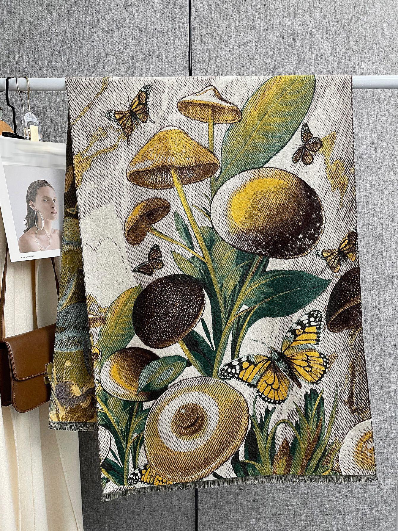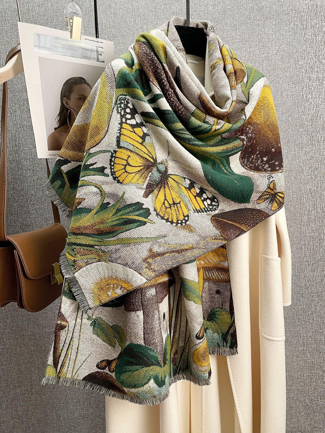 Bufanda grande tipo chal para mujer, cálida, de alta gama, con diseño de mariposas, de cachemir, para otoño e invierno.