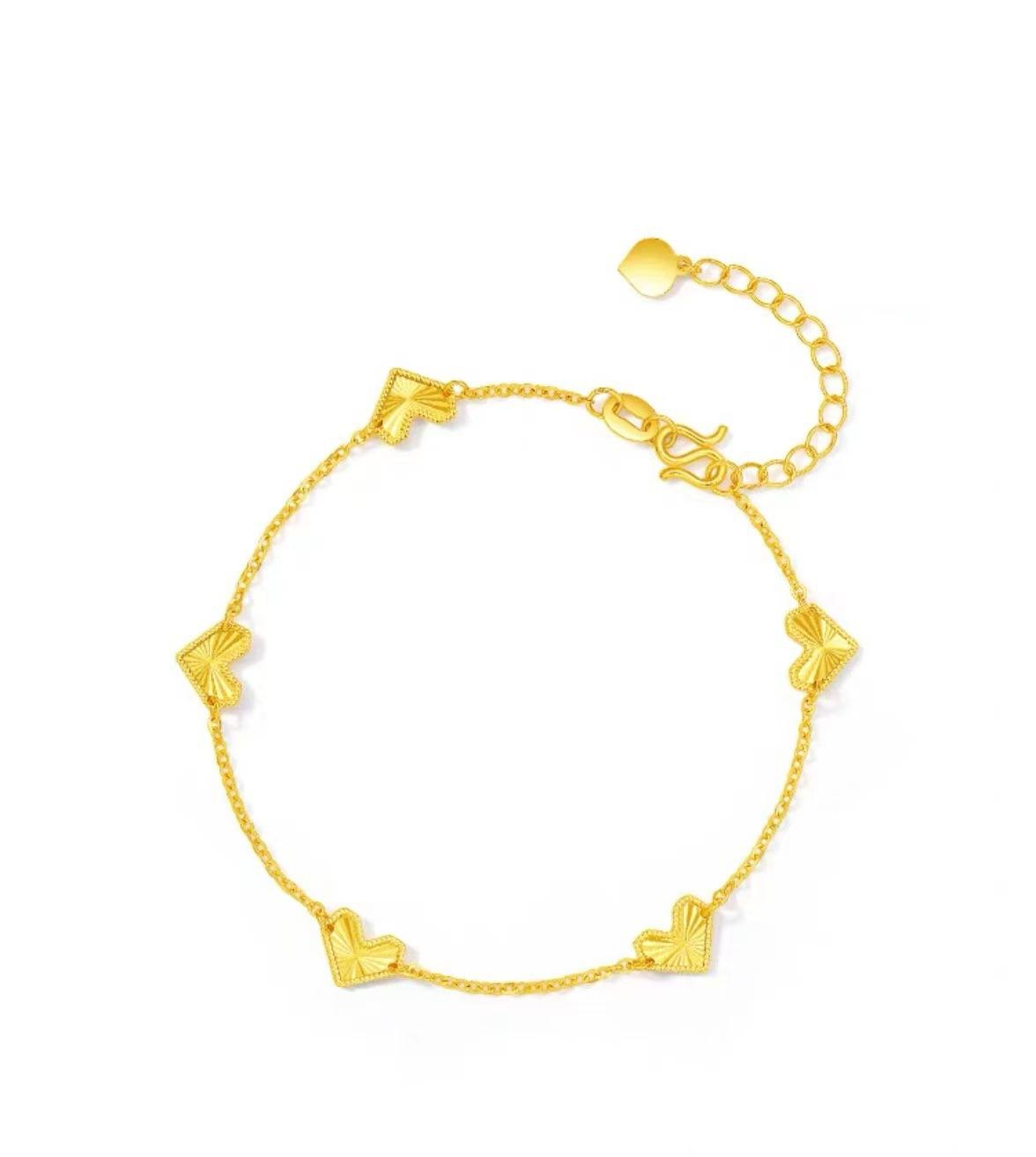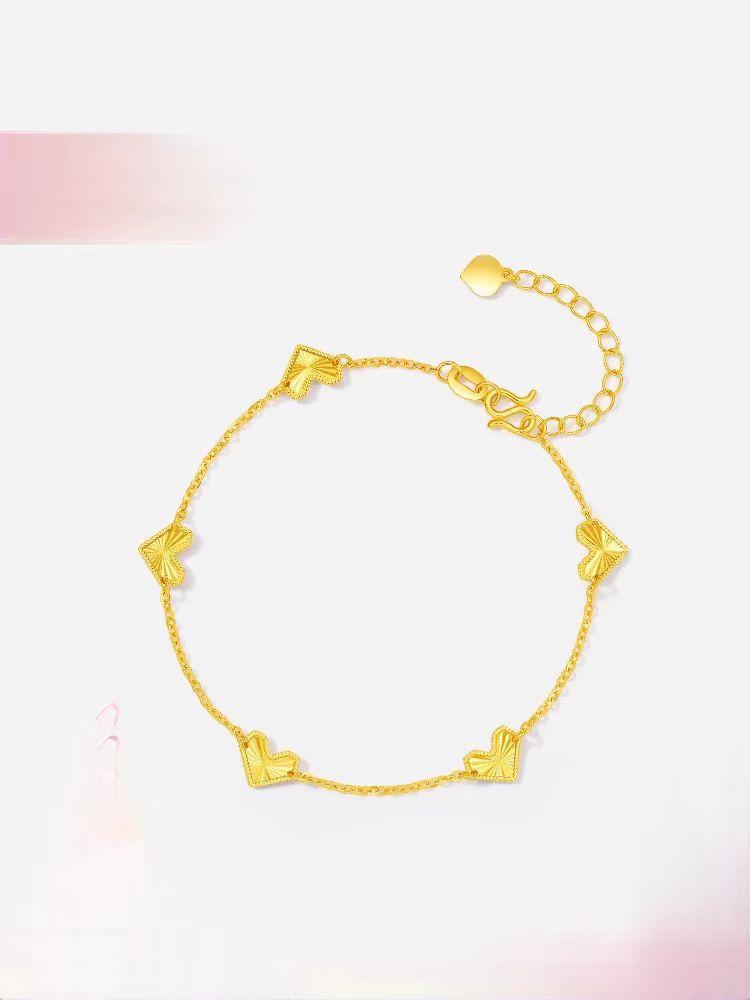 Pulsera de amor CNC del mismo estilo de la familia Zhou, moderna, combinable con todo, color dorado, con diseño de nicho en forma de corazón, imitación de oro arena de Vietnam.