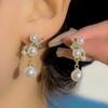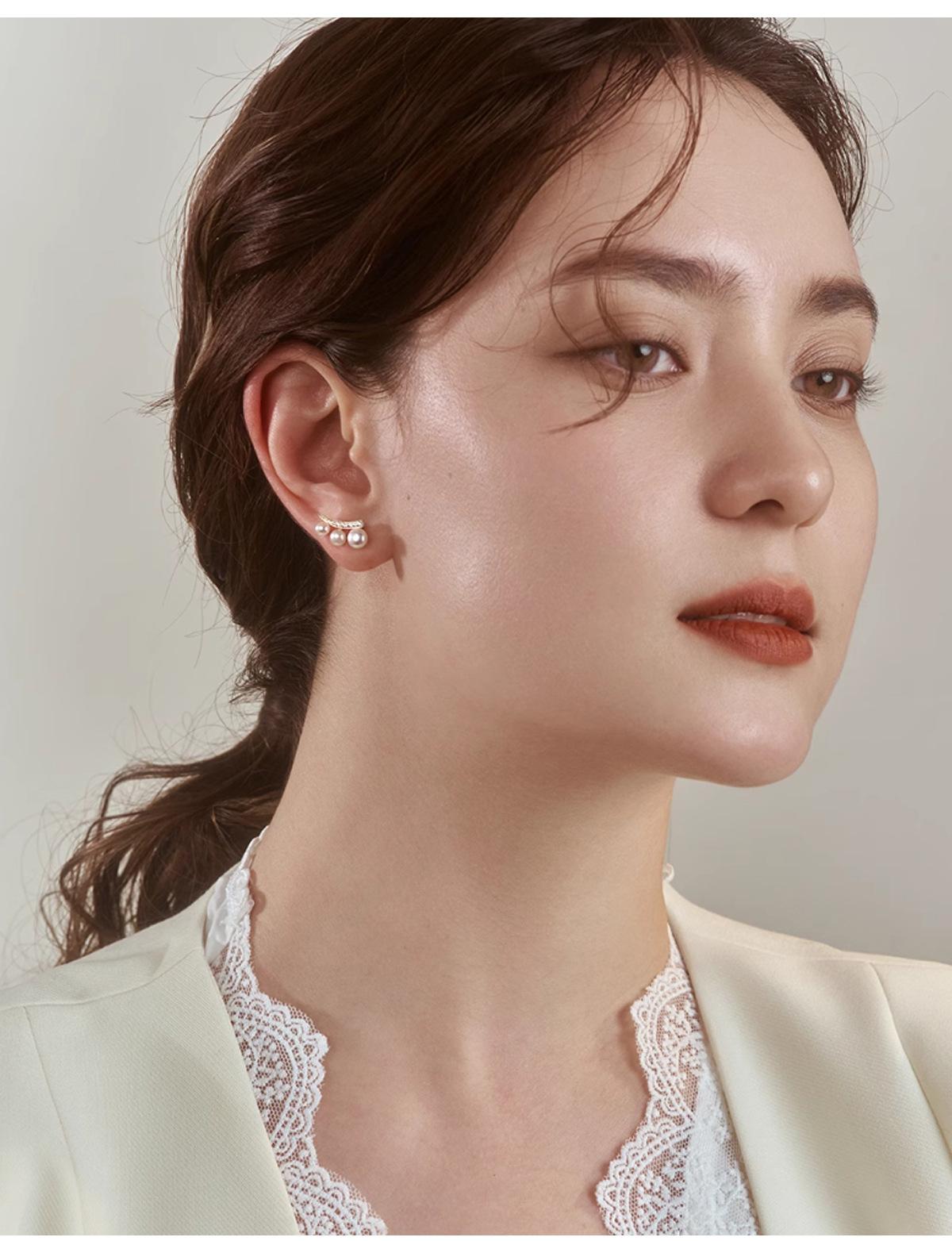 Pendientes de perlas Shijia vintage francesas para mujer, ligeros, de lujo, de alta gama, con un diseño moderno y elegante, pendientes sencillos en fila.