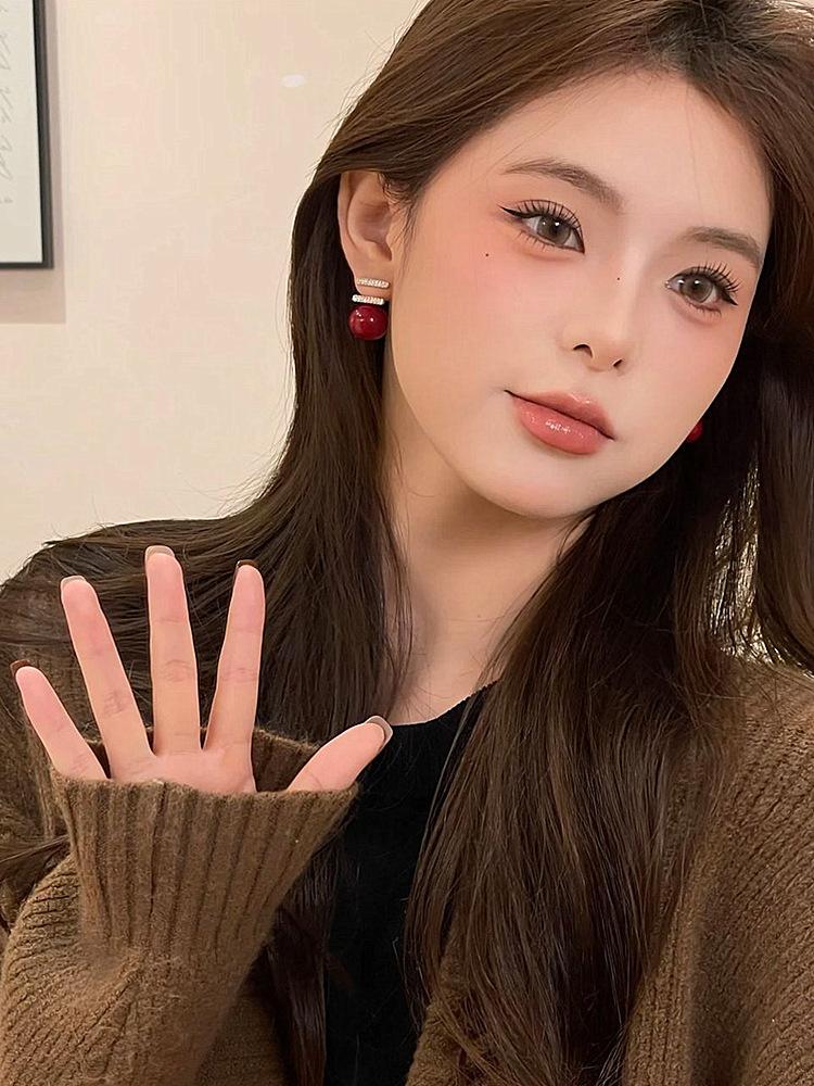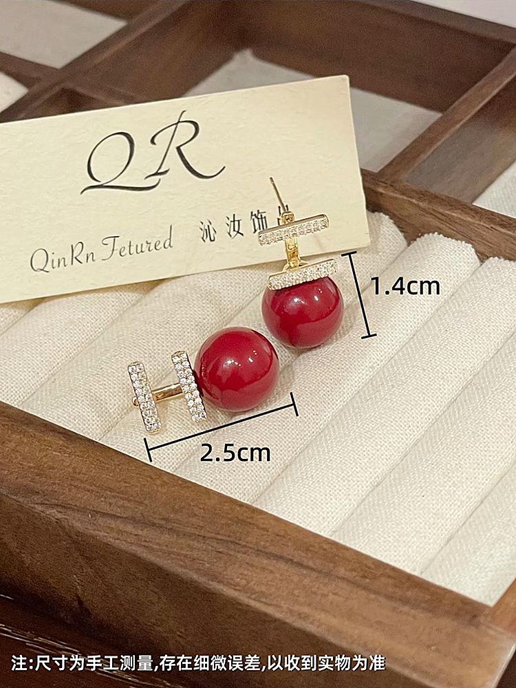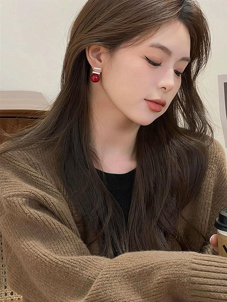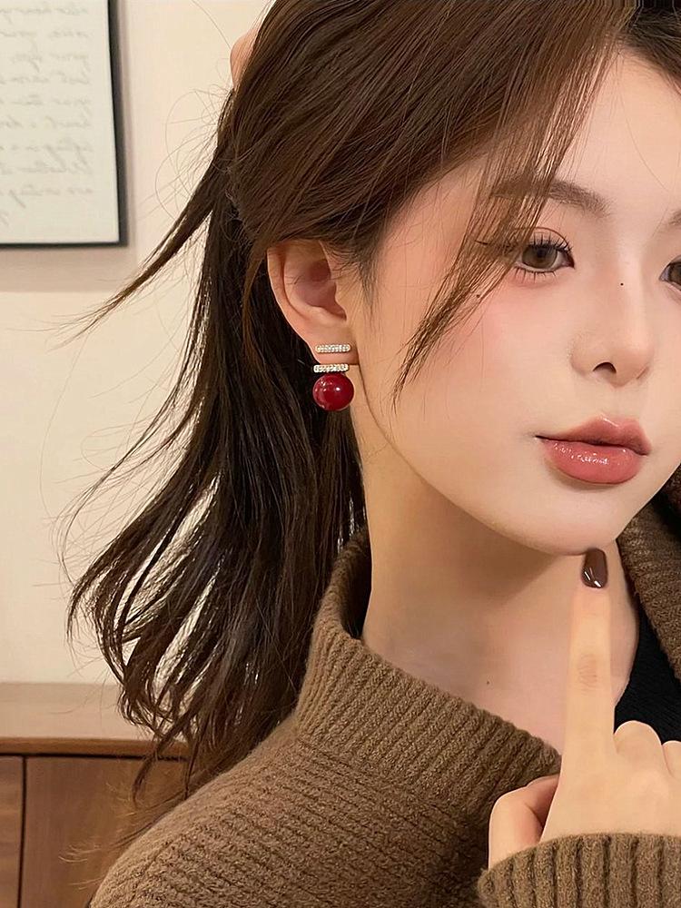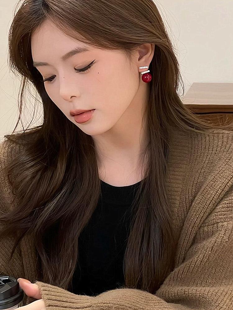 Pendientes de perlas rojas para mujer, nuevos, explosivos, ligeros, de lujo, de nicho, de plata S925, con diseño de moda avanzado.