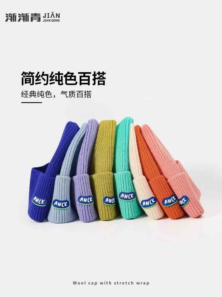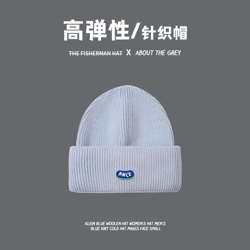 Gorro azul de lana para esquí de moda para hombre, otoño e invierno, cálido, con protección para los oídos y gorro de punto pequeño, versátil y que deja ver el rostro.