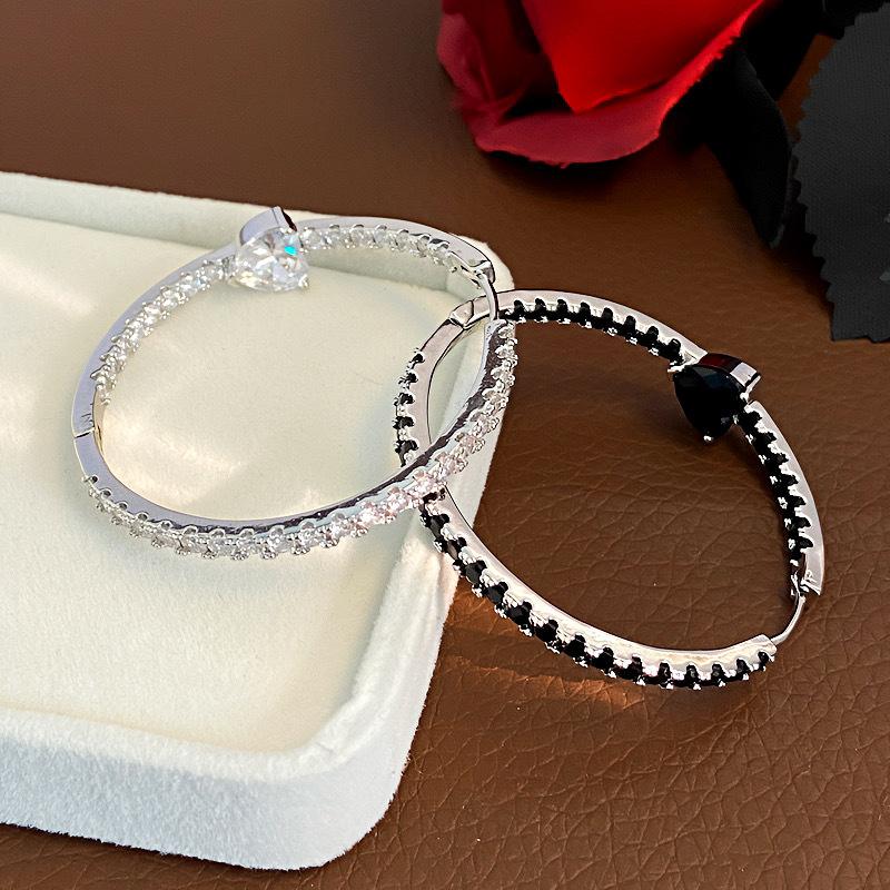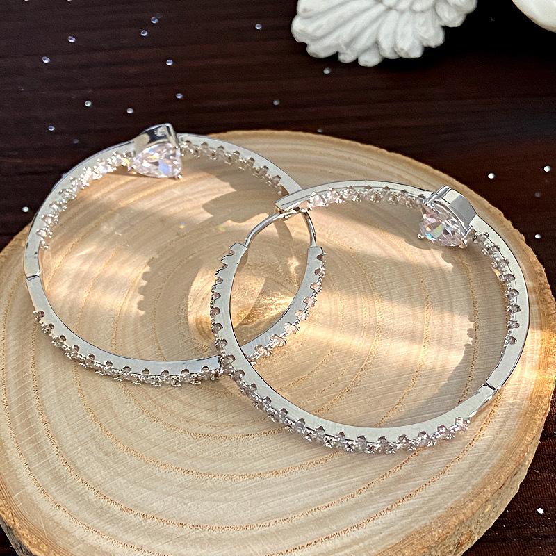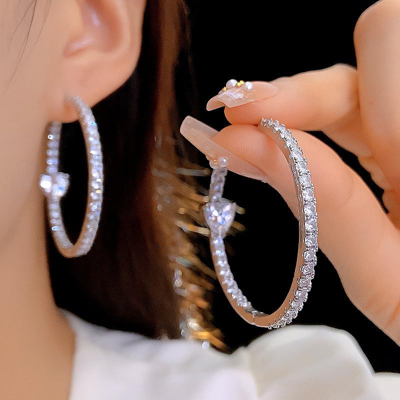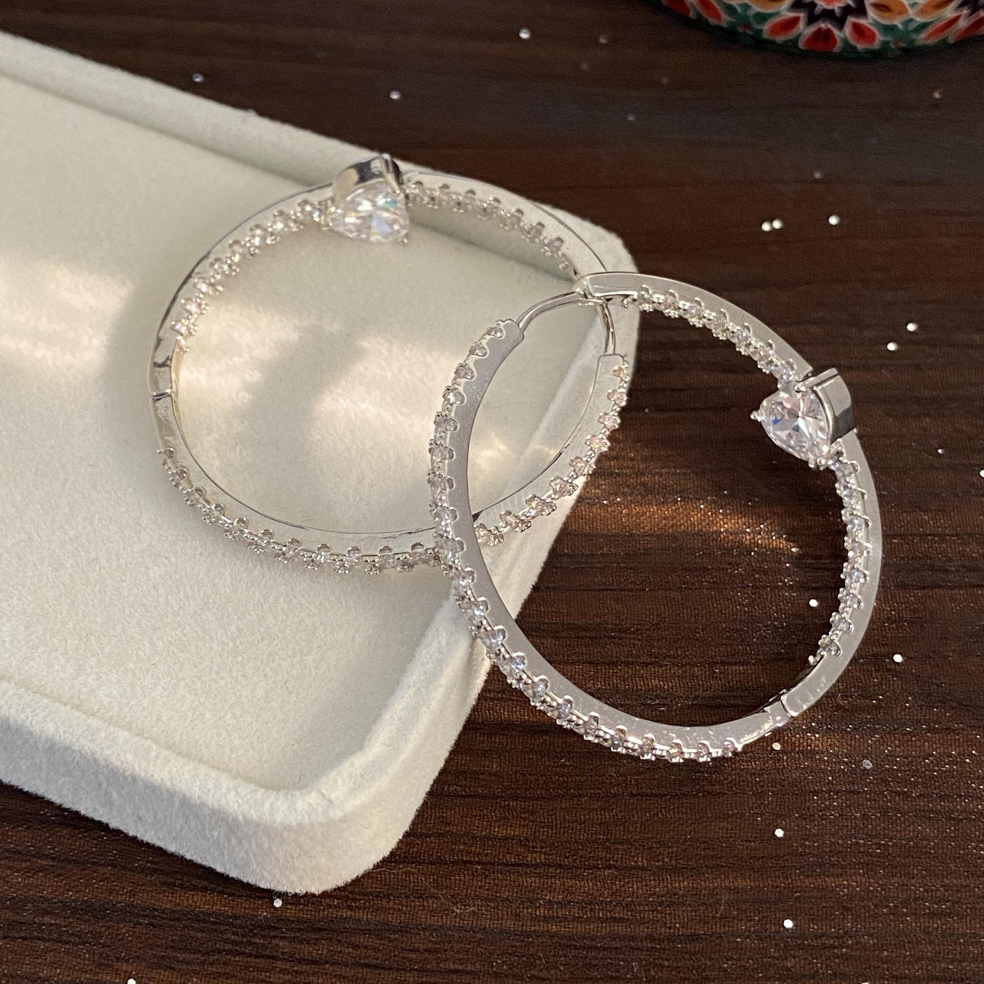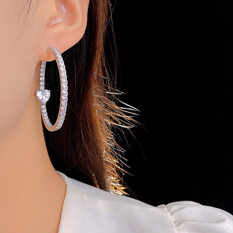 Aretes de Aro de Corazón de Zircón Exagerado en Estilo Europeo y Americano, Estilo de Lujo Ligero, Aretes de Aro Adelgazantes para el Rostro, Aretes de Alta Gama y Elegantes