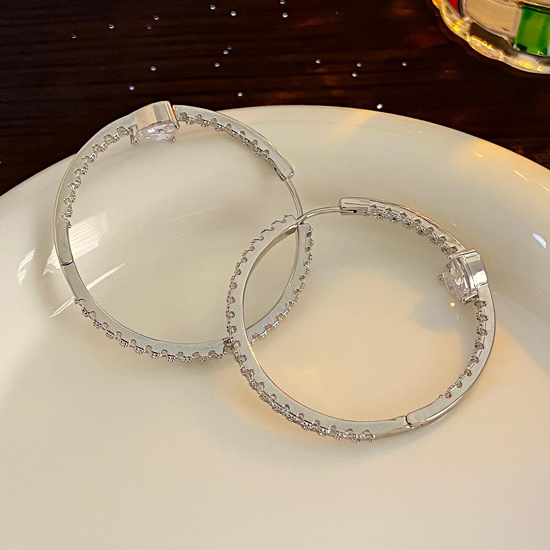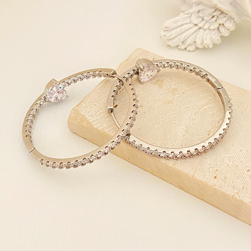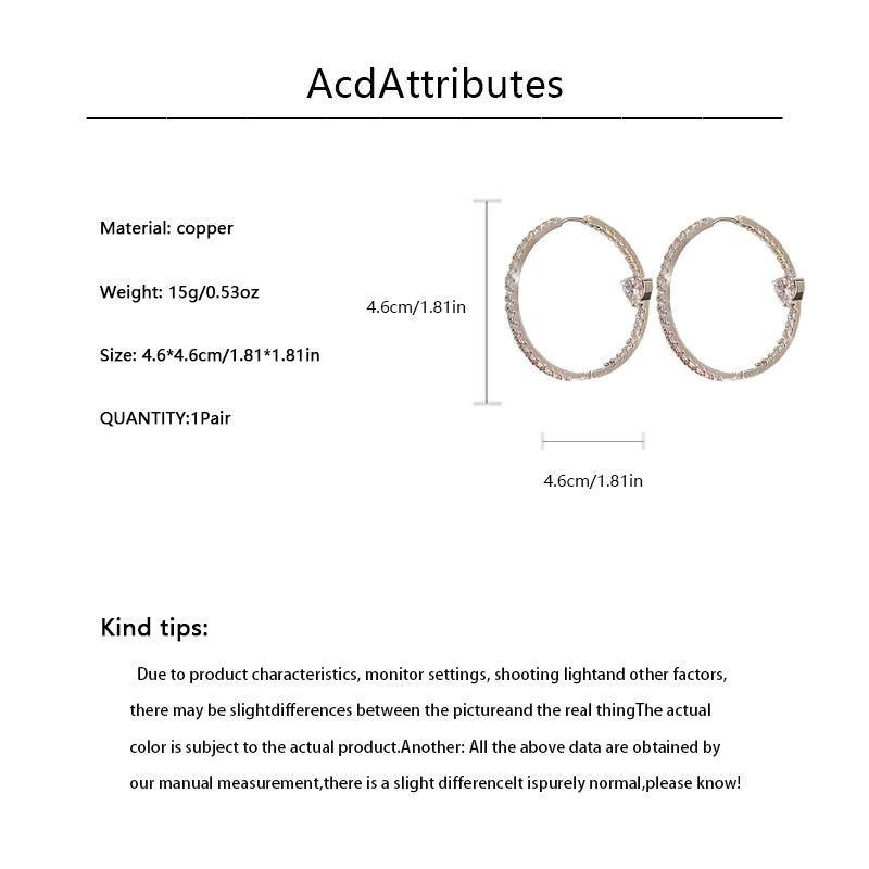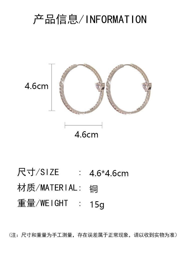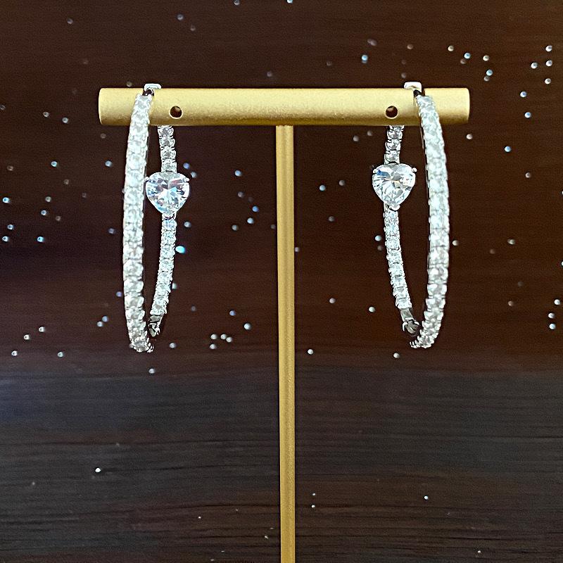 Aretes de Aro de Corazón de Zircón Exagerado en Estilo Europeo y Americano, Estilo de Lujo Ligero, Aretes de Aro Adelgazantes para el Rostro, Aretes de Alta Gama y Elegantes