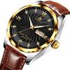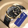 Reloj de cuarzo luminoso con doble calendario y incrustaciones de diamantes para hombre con correa de cuero genuino, reloj TikTok Live