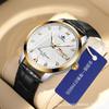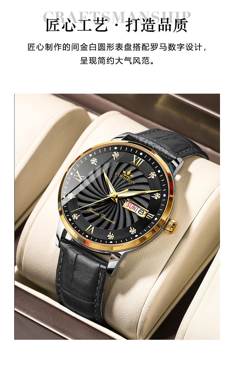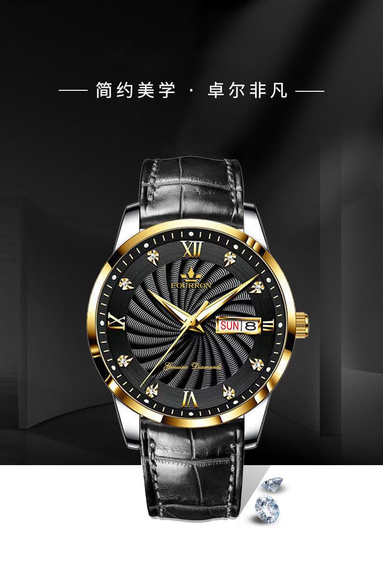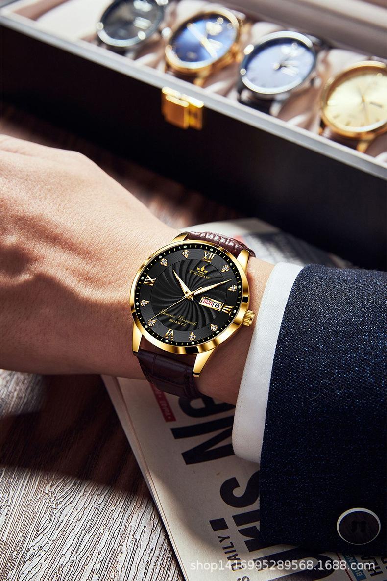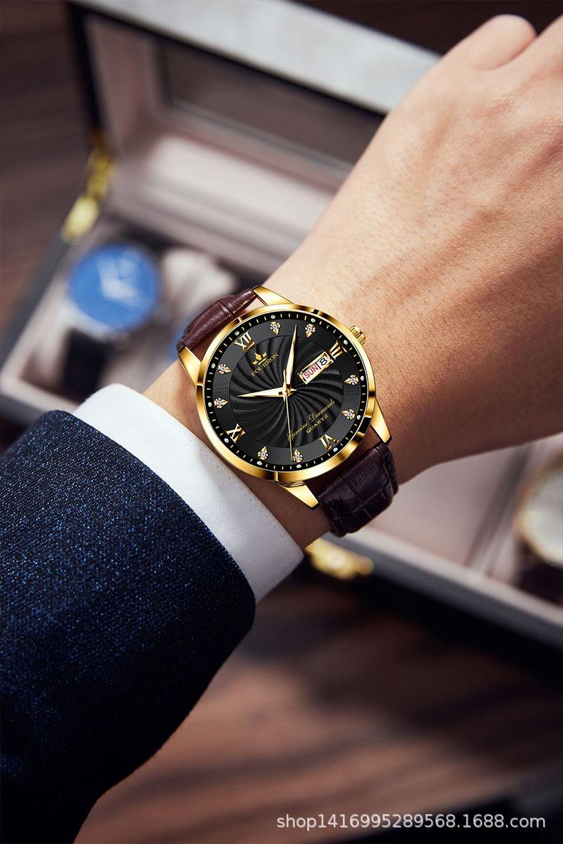 Compra Reloj de cuarzo luminoso con doble calendario y incrustaciones de diamantes para hombre con correa de cuero genuino, reloj TikTok Live al por mayor en Joom.pro