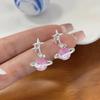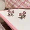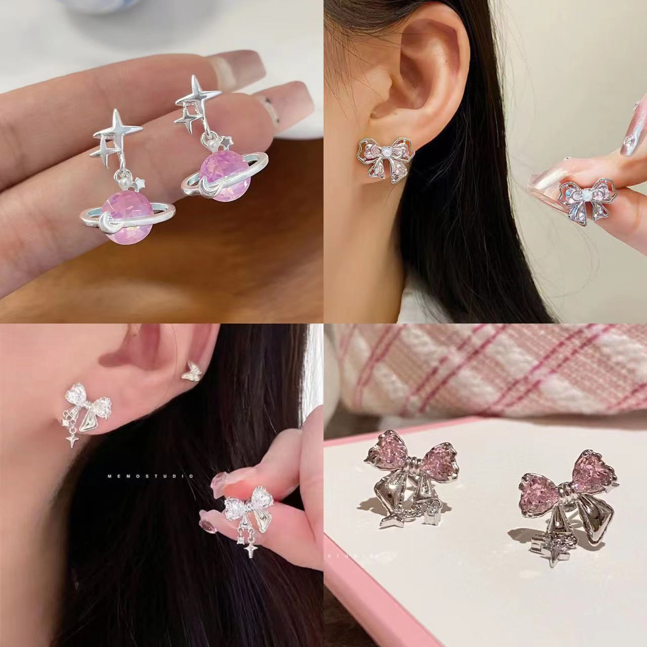 Silver Blind Star Butterfly Stud Earrings, fantasy planet earrings, Pink zircon bow earrings, Pink blind star butterfly earrings