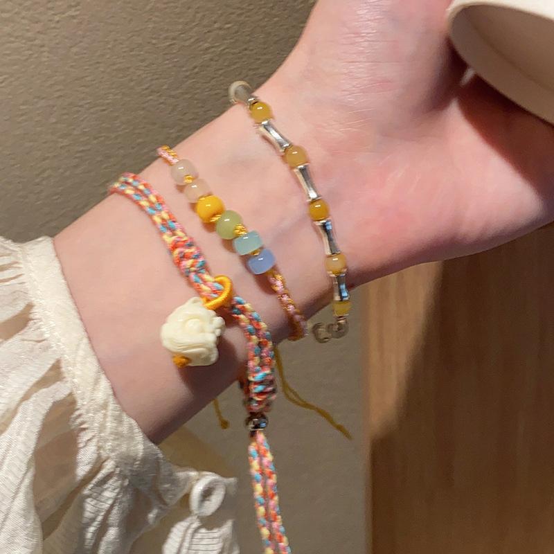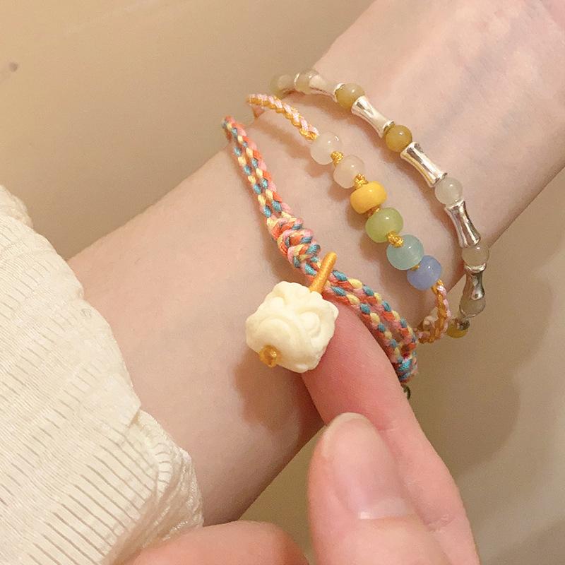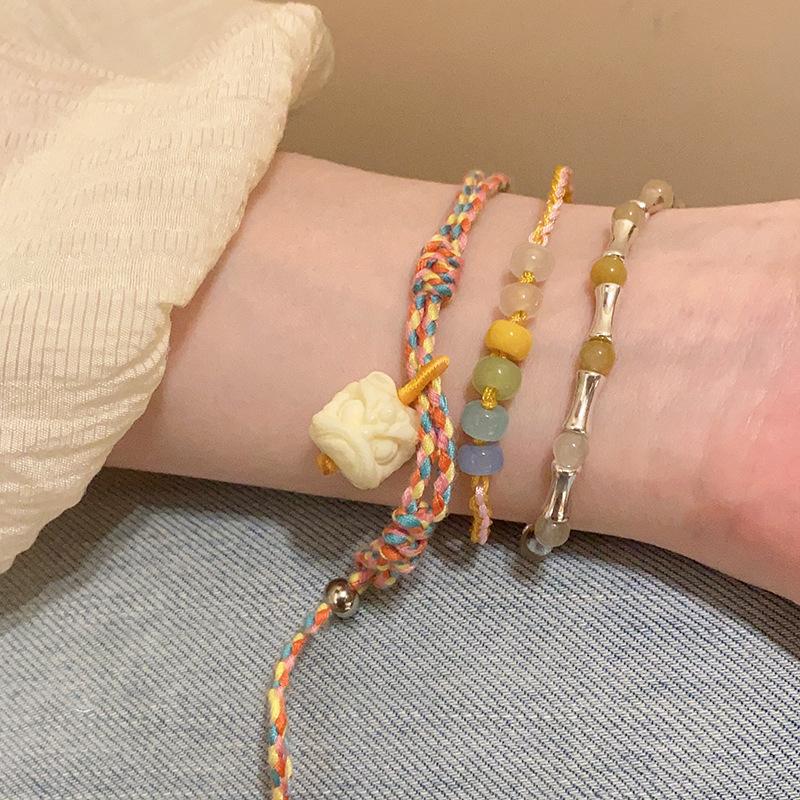 Braided rope lion, Braided beaded hand cord, Slub Stitching Bracelet