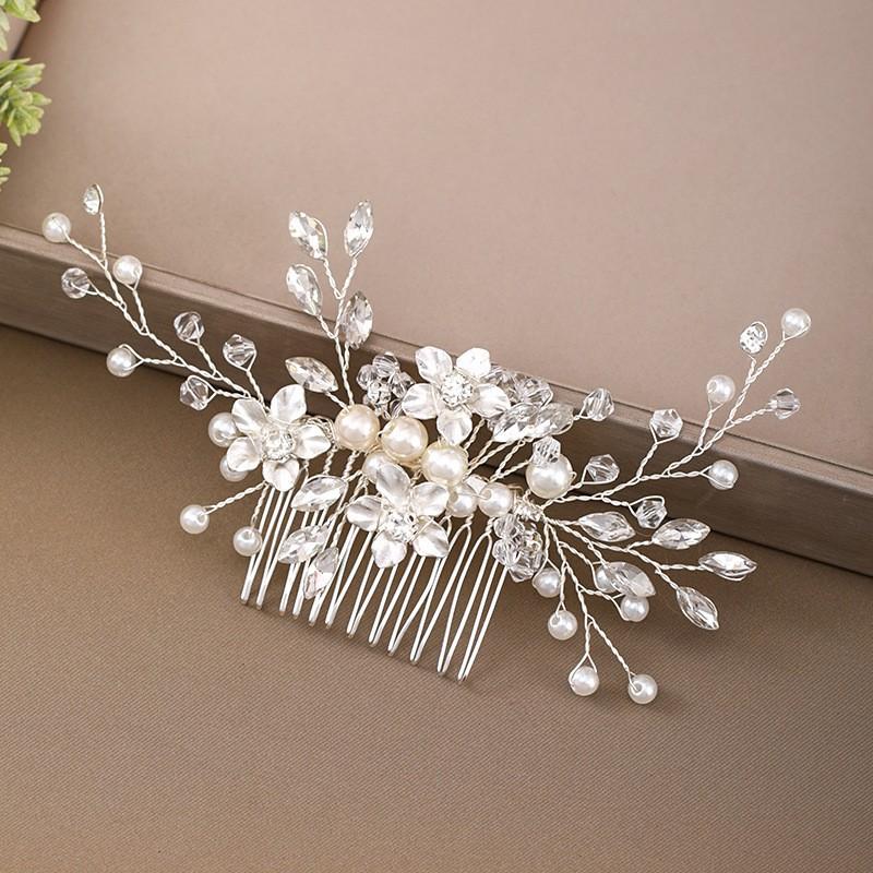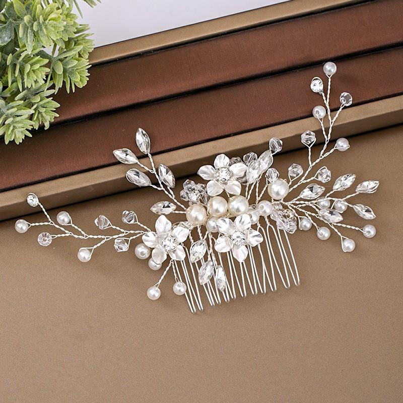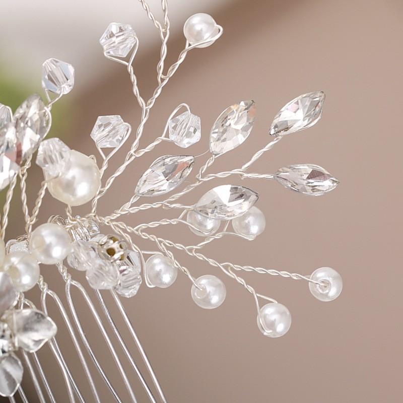 Peine de Cristal Hecho a Mano de Venta Caliente Europeo y Americano Tocado Novia Boda Vestido de Boda Perla Disco Peine para el Cabello Vestido Accesorios para el Cabello