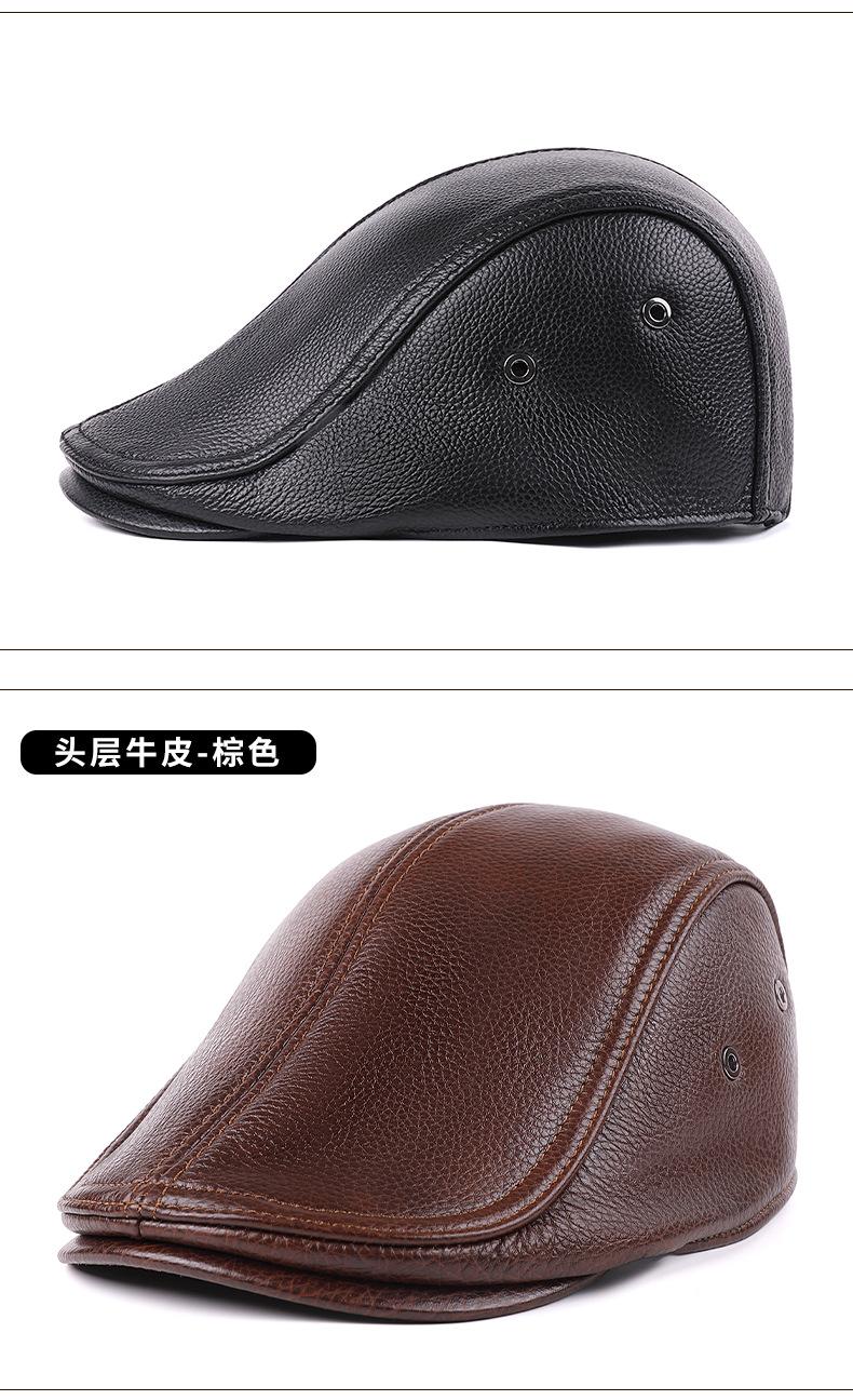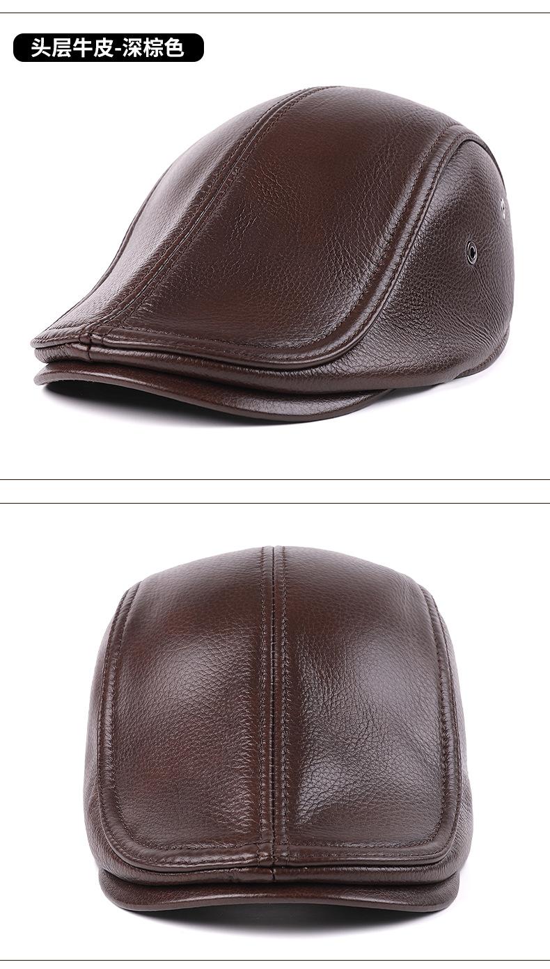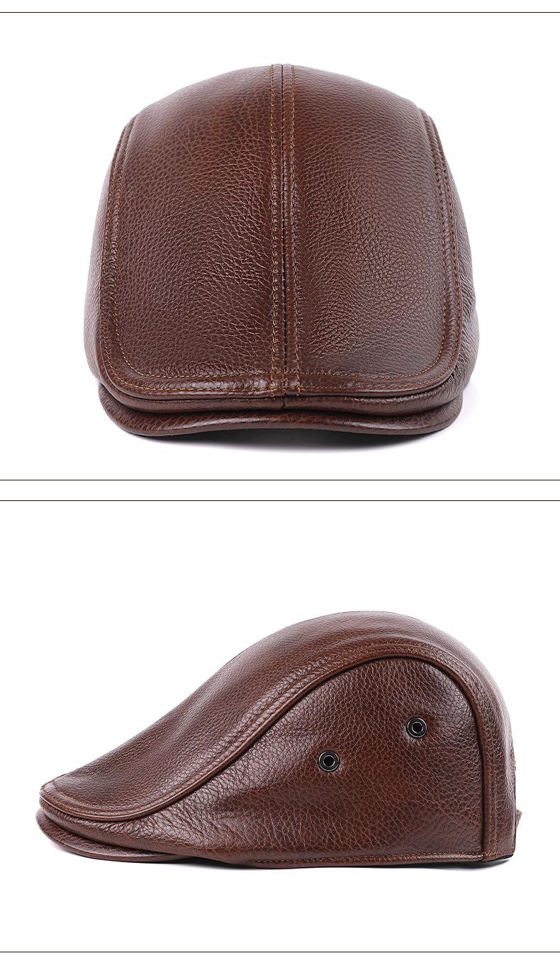 Gorra de Cuero Genuino, Estilo Delgado para Primavera y Otoño, Sombrero Cálido para Hombre y Mujer, Boina de Piel de Vaca, Gorra Plana, Sombrero de Hombre Moderno Estilo Coreano