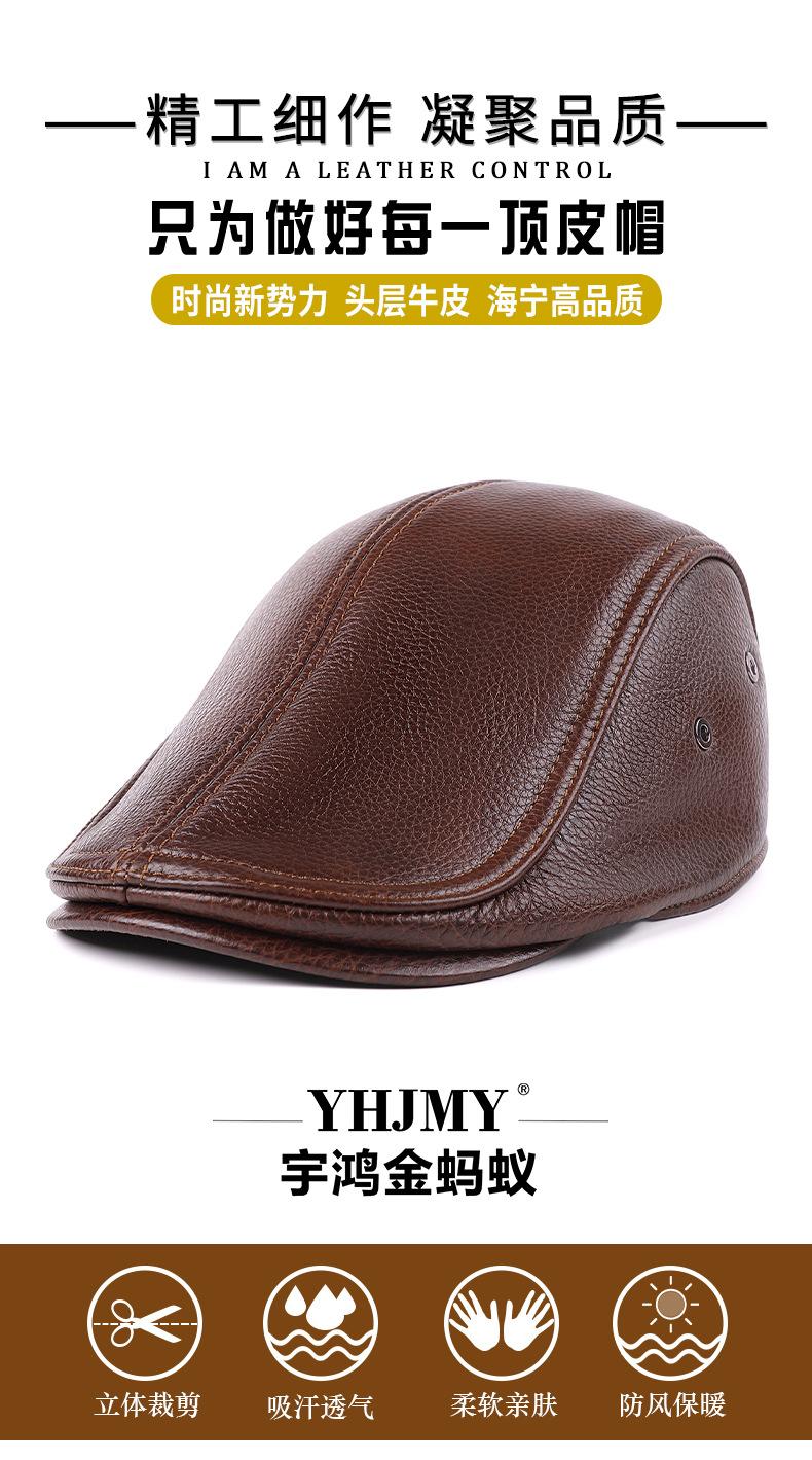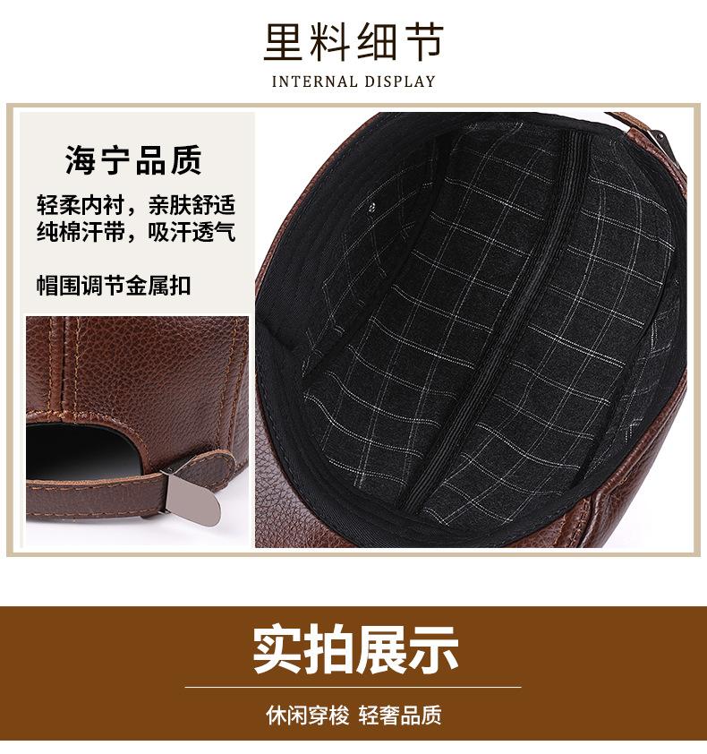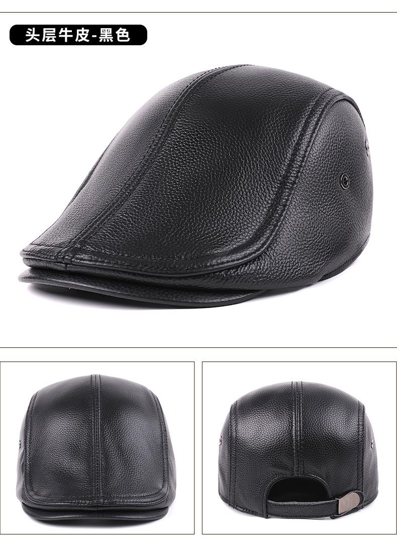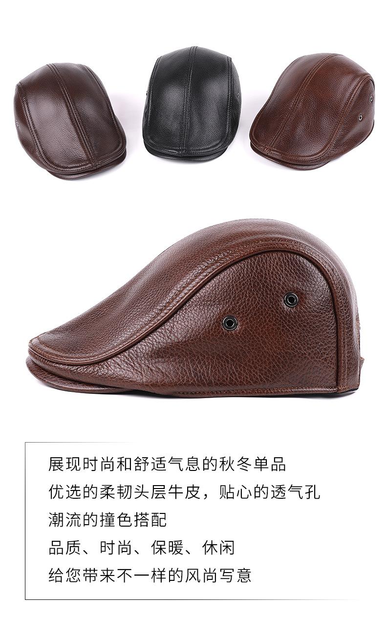 Gorra de Cuero Genuino, Estilo Delgado para Primavera y Otoño, Sombrero Cálido para Hombre y Mujer, Boina de Piel de Vaca, Gorra Plana, Sombrero de Hombre Moderno Estilo Coreano