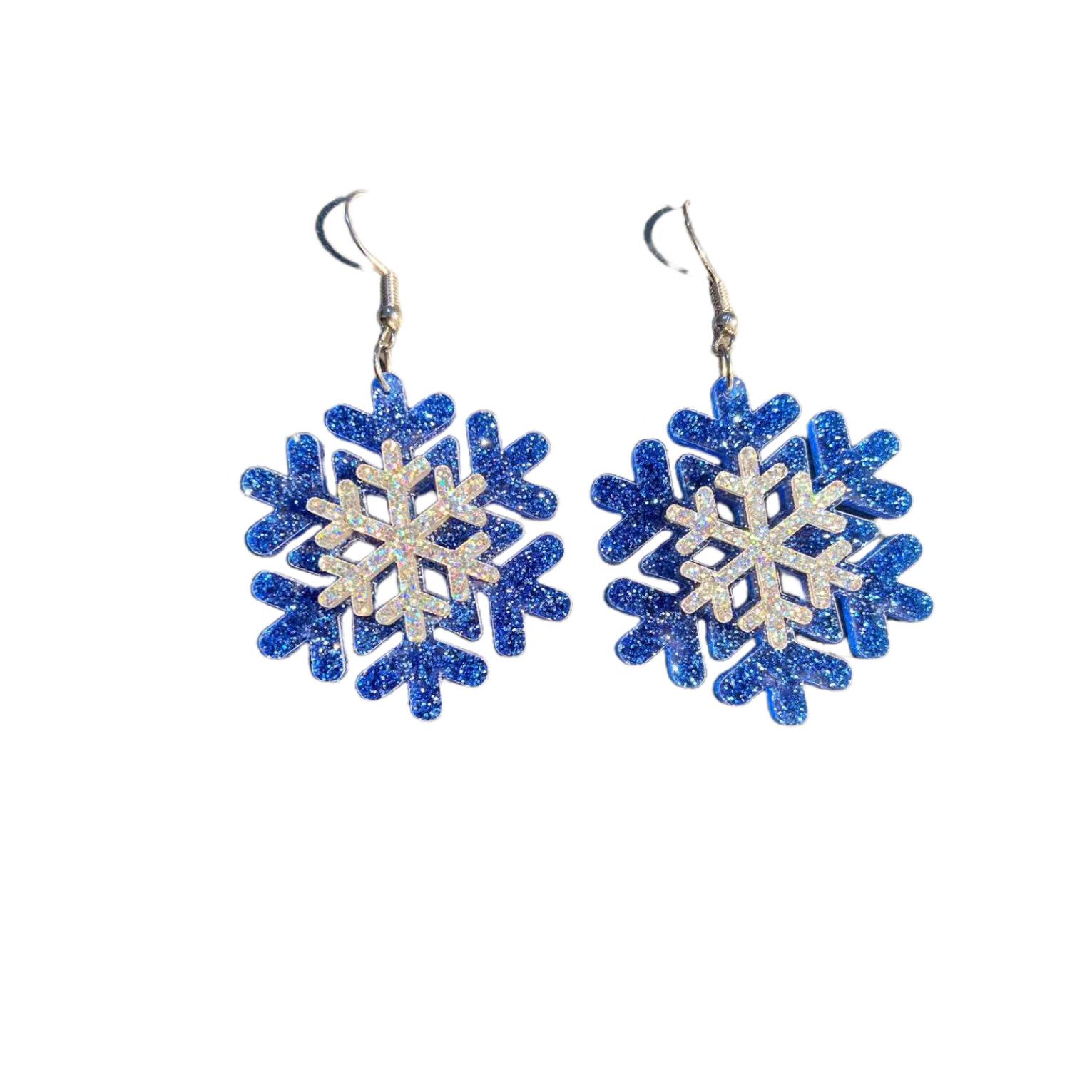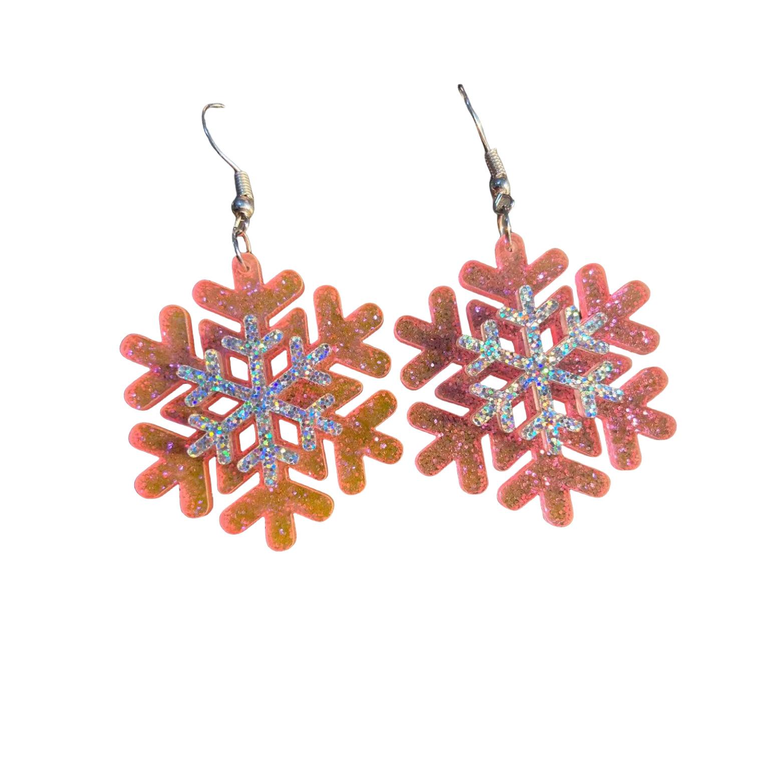 Pendientes navideños con diseño de copo de nieve y purpurina acrílica, con diseño de nicho, joyería para las orejas y colgante.
