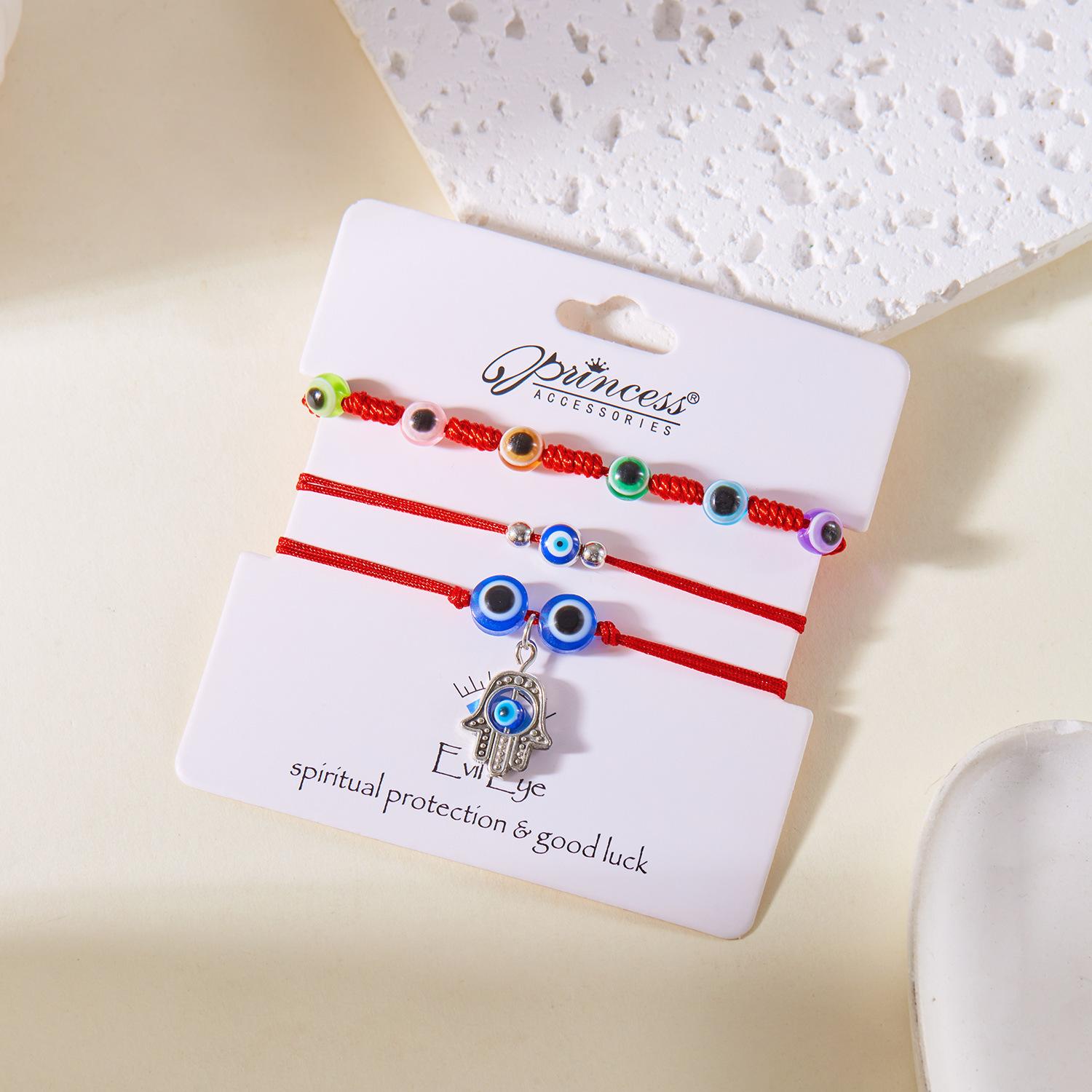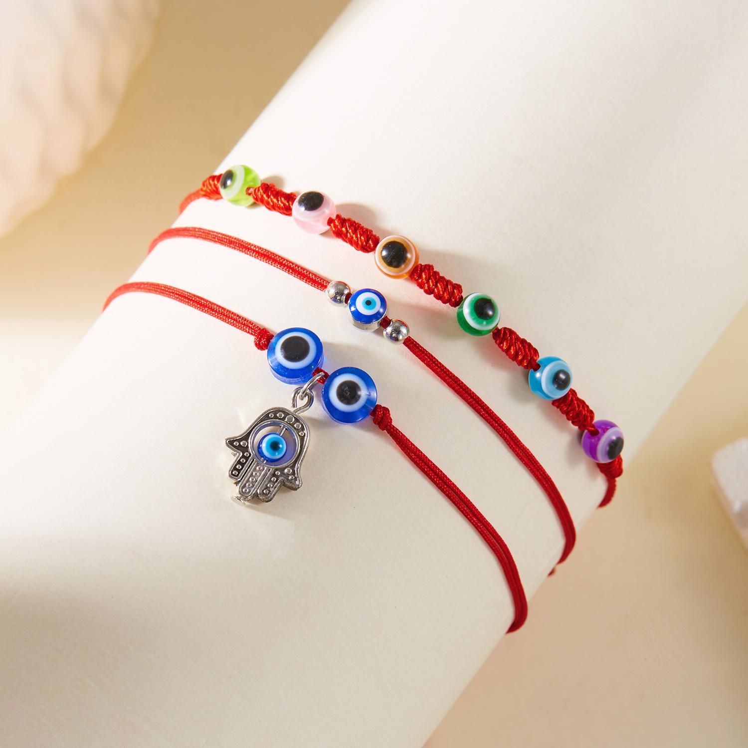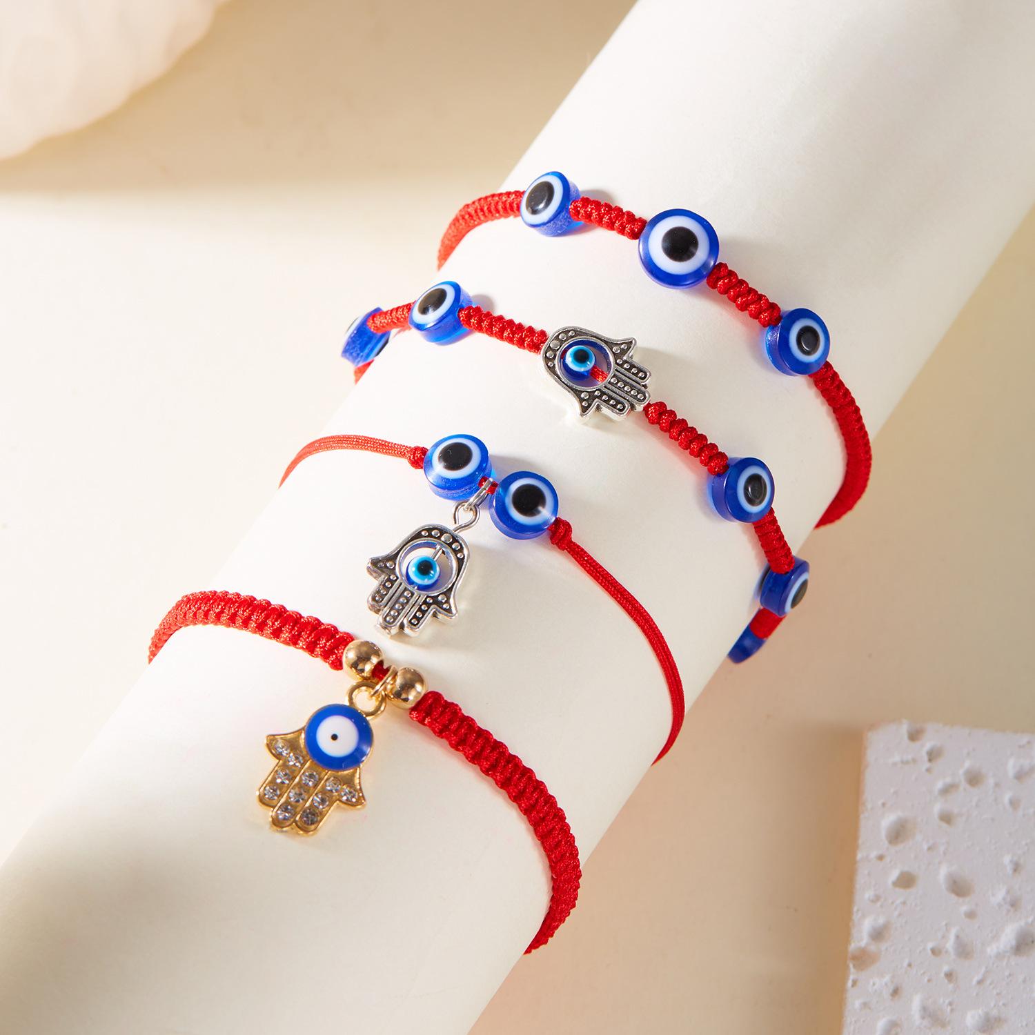 Pulsera de Estilo Nuevo de Fábrica Creativa Ojo Turco Transfronteriza Palma Ojo Azul Ojo Turco Cuerda Roja Tejida Pulsera Ajustable