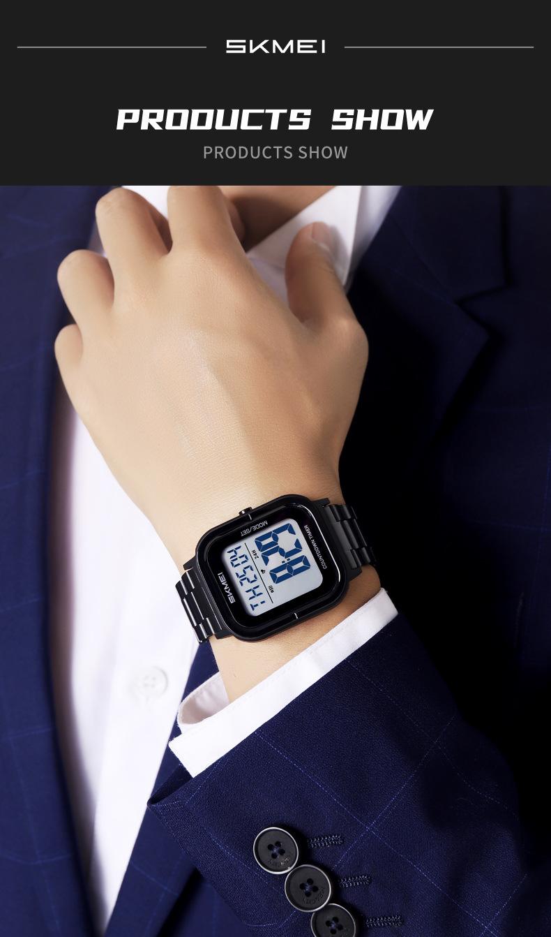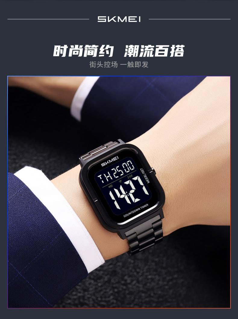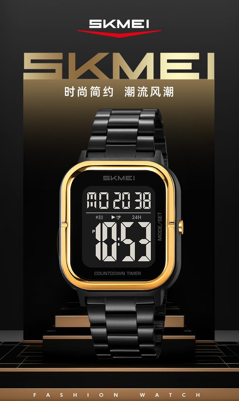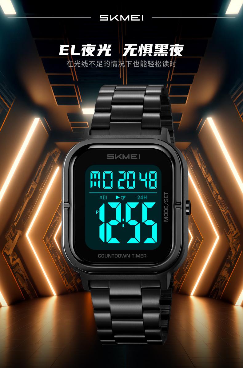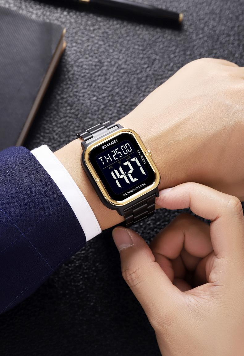 Relojes electrónicos de metal para hombre con explosión de comercio exterior Skmei de EE. UU., relojes electrónicos con pantalla digital y correa de acero, venta al por mayor
