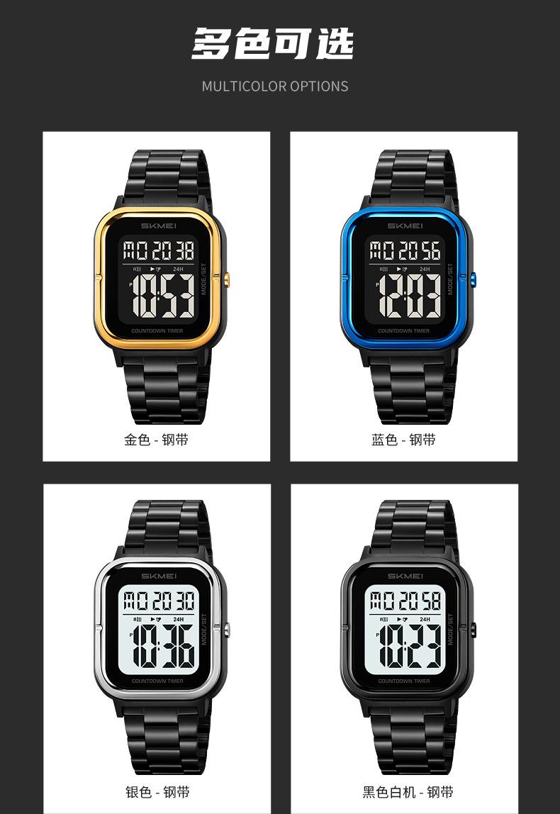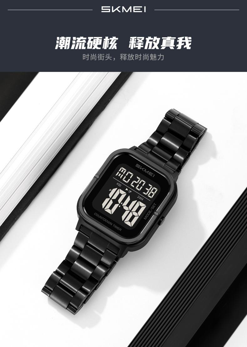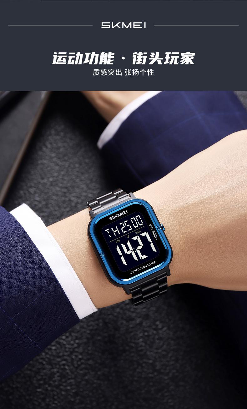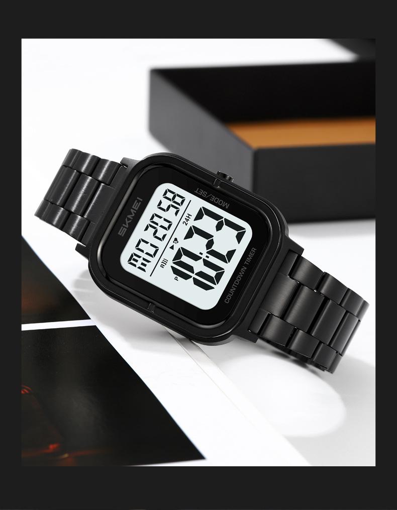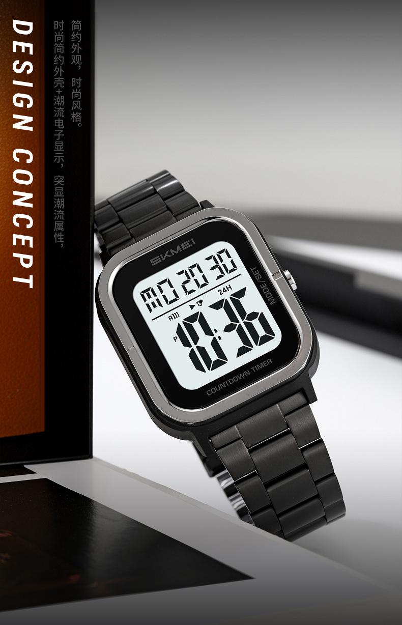 Relojes electrónicos de metal para hombre con explosión de comercio exterior Skmei de EE. UU., relojes electrónicos con pantalla digital y correa de acero, venta al por mayor