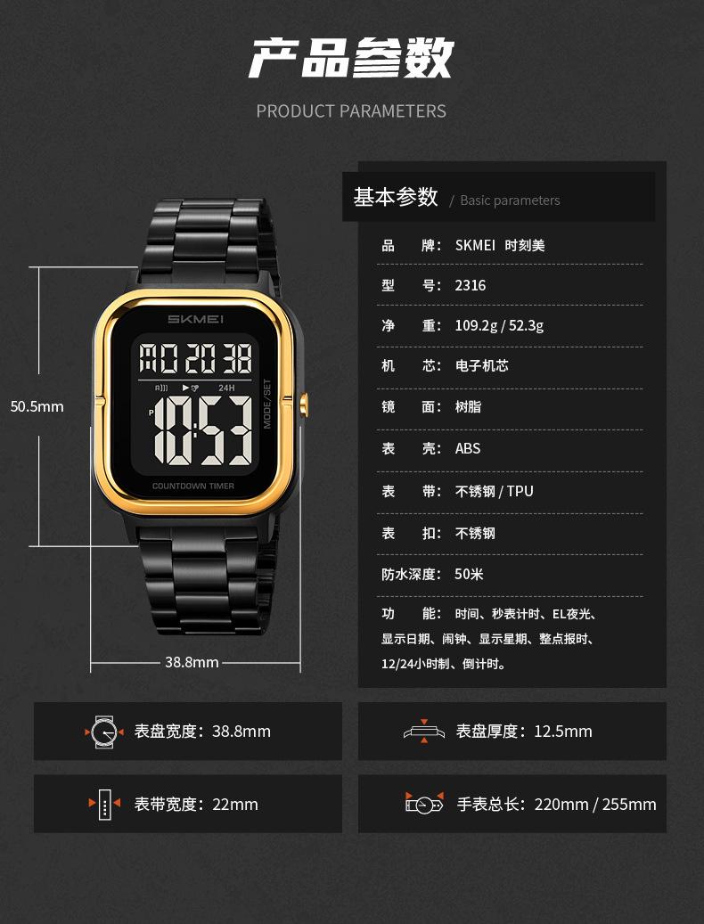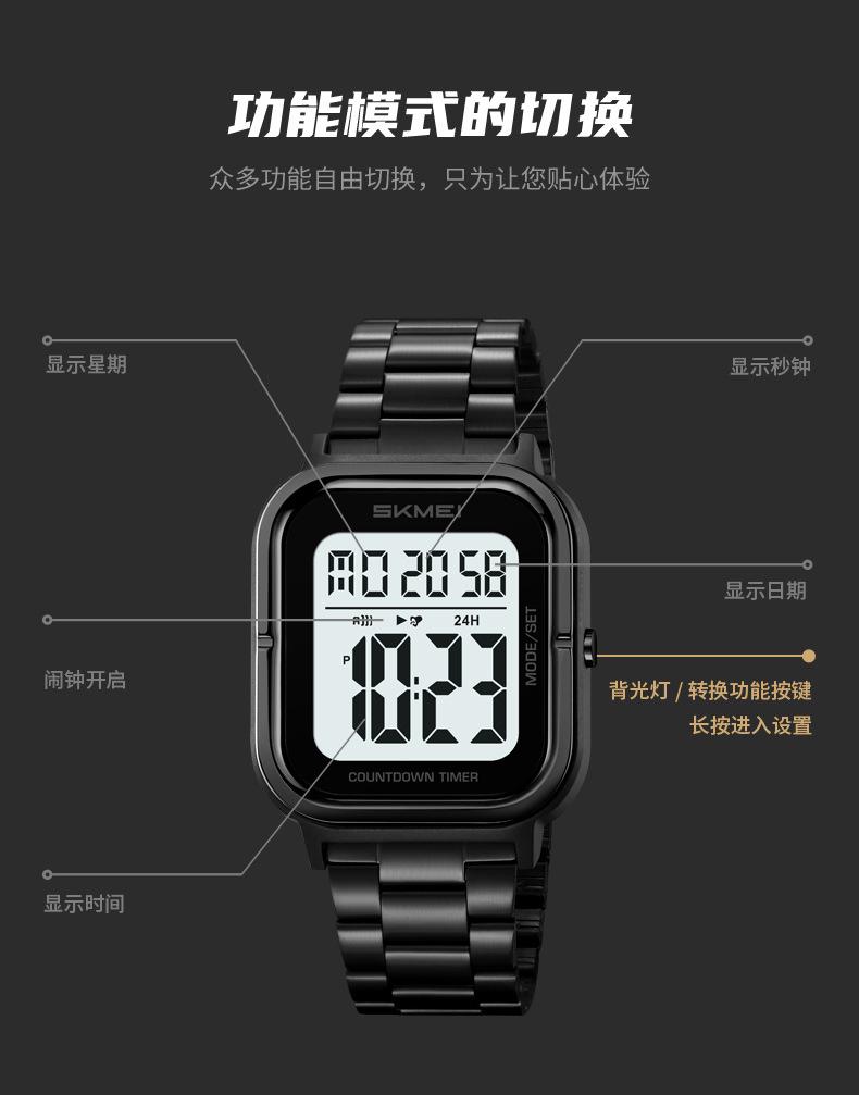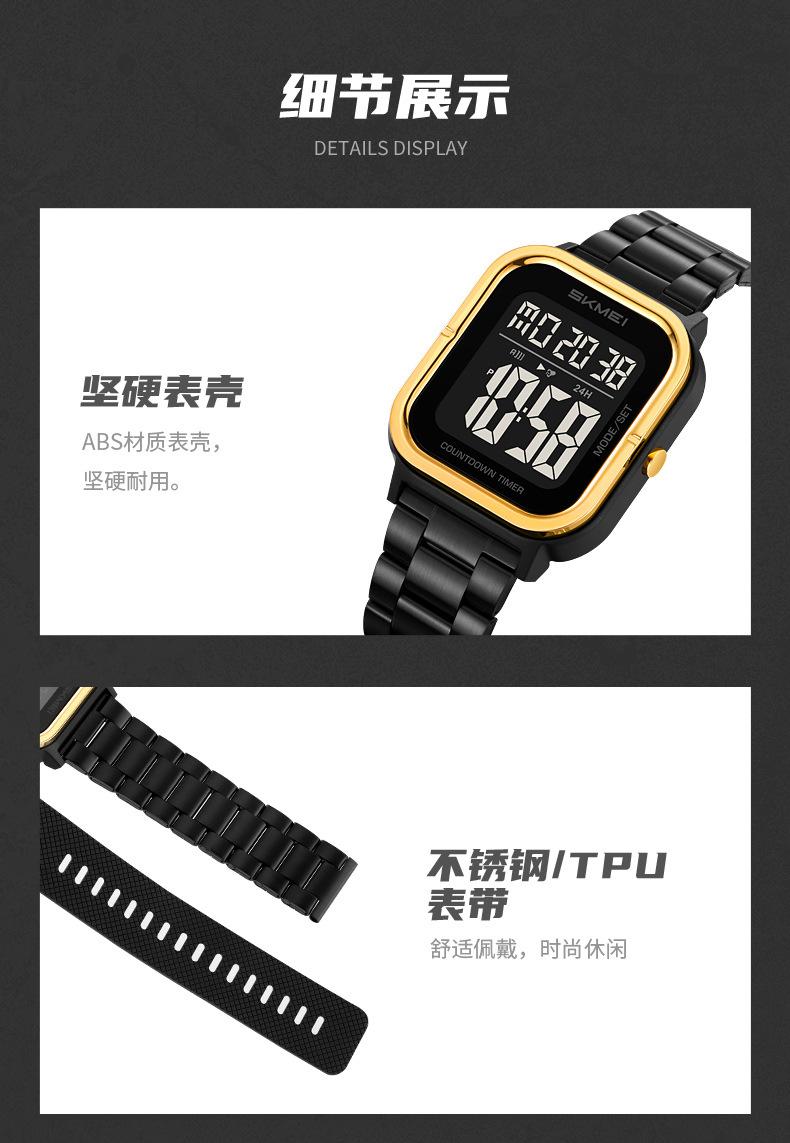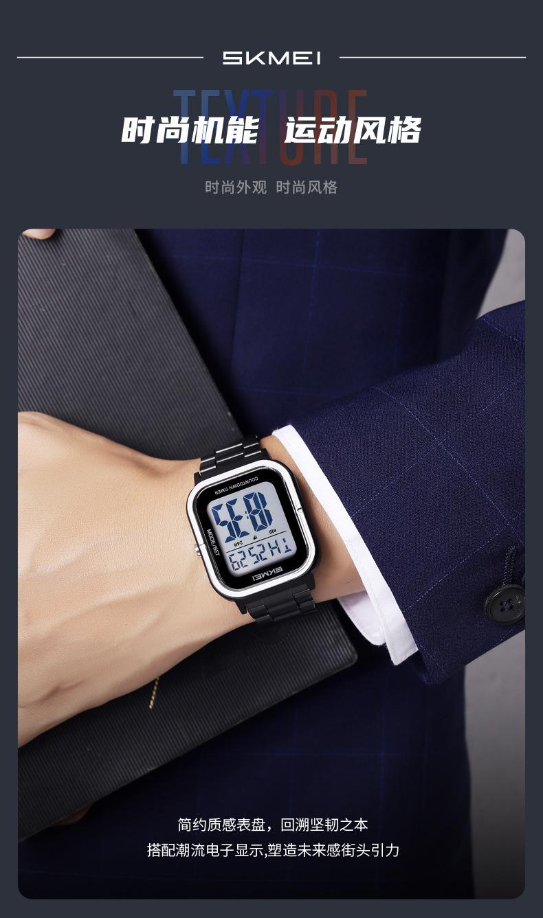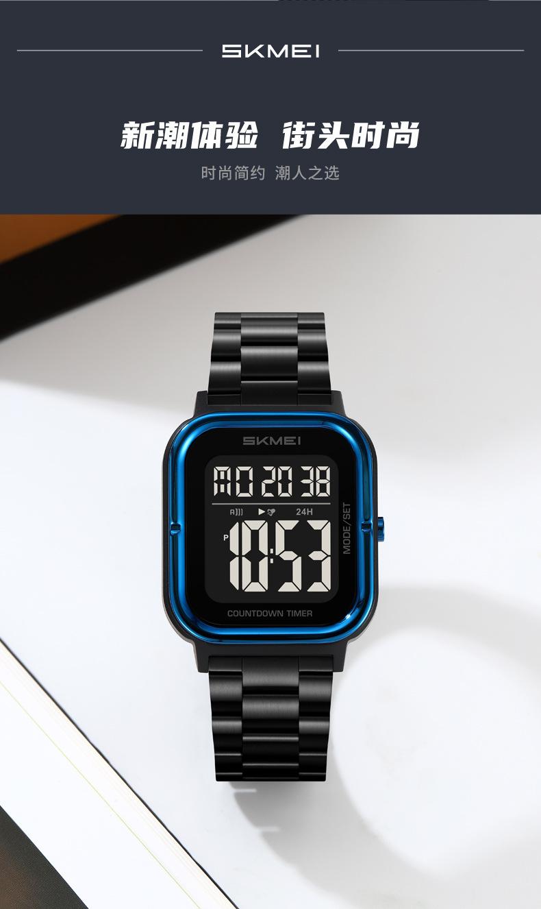 Relojes electrónicos de metal para hombre con explosión de comercio exterior Skmei de EE. UU., relojes electrónicos con pantalla digital y correa de acero, venta al por mayor
