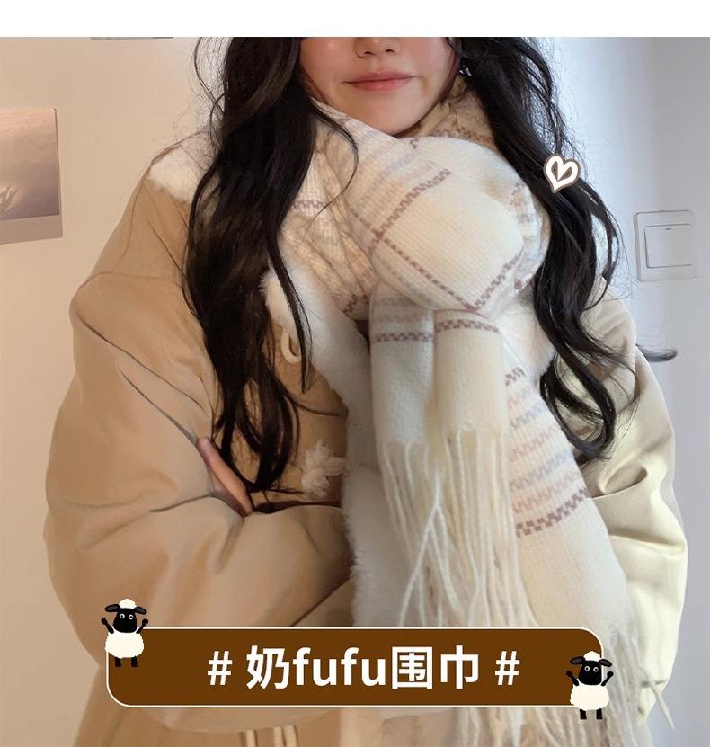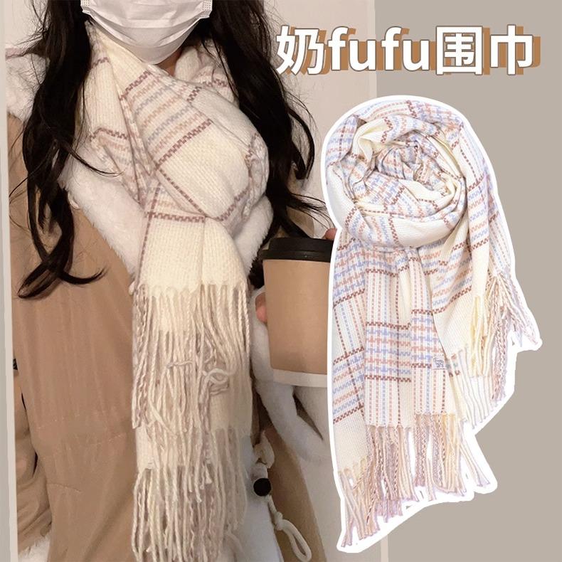 Bufanda blanca de alta gama para mujer, invierno 2024, nueva, gruesa, cálida, a cuadros, para otoño e invierno.