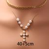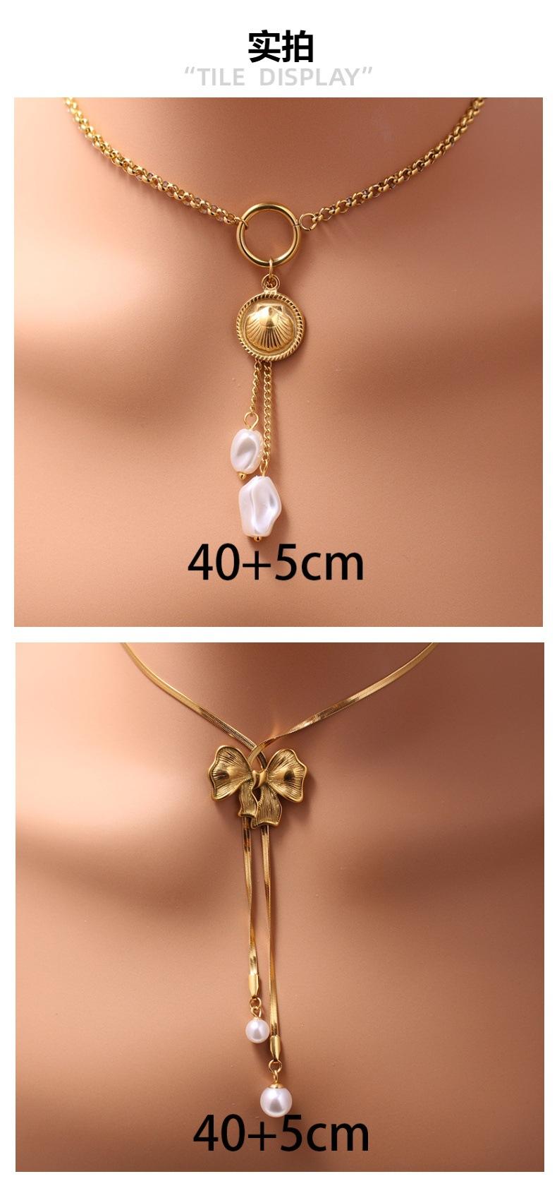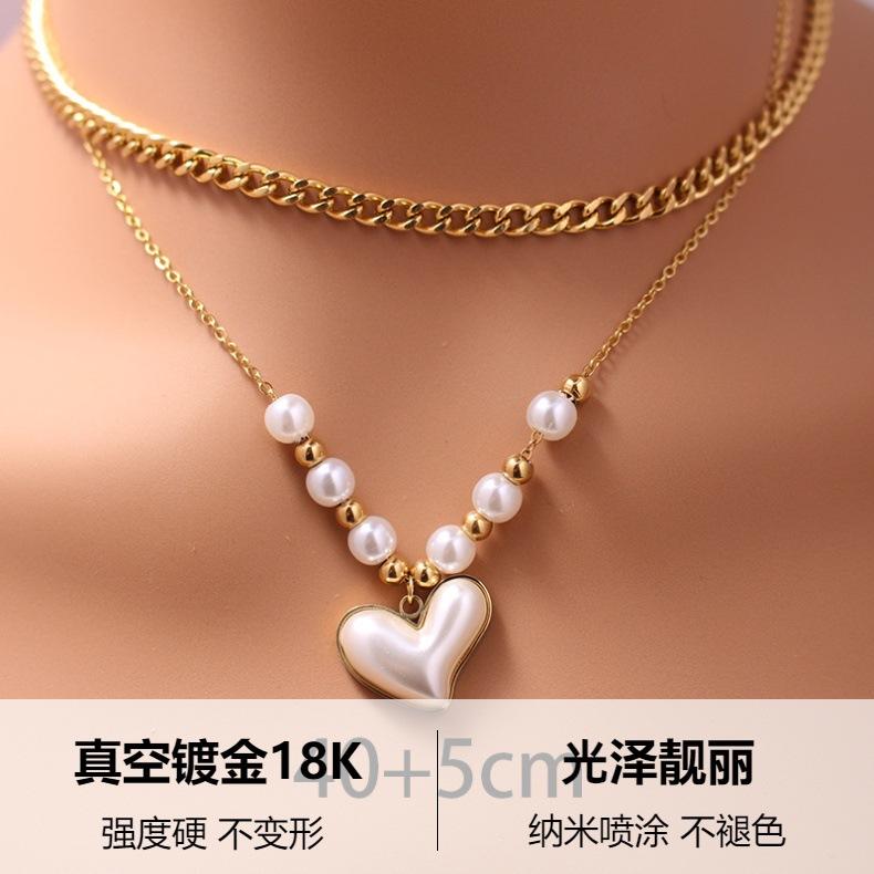 Europa y Estados Unidos ventas calientes transfronterizas estilo fragante pequeño imitación perla acero inoxidable con cuentas laminado acero titanio collar moda damas