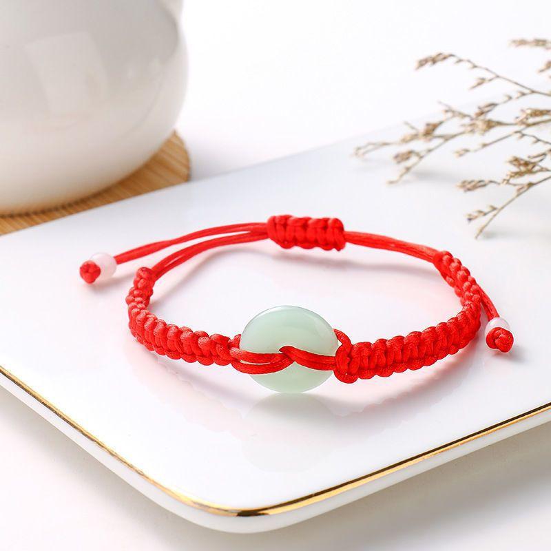 Compra Pulsera Cuerda Roja Hebilla de la Paz Jade Jade Tejida a Mano Cuerda de Mano Cuerda de Cuero Joyería de Mano Ajustable Estilo Pareja al por mayor en Joom.pro