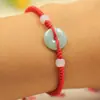 Pulsera Cuerda Roja Hebilla de la Paz Jade Jade Tejida a Mano Cuerda de Mano Cuerda de Cuero Joyería de Mano Ajustable Estilo Pareja