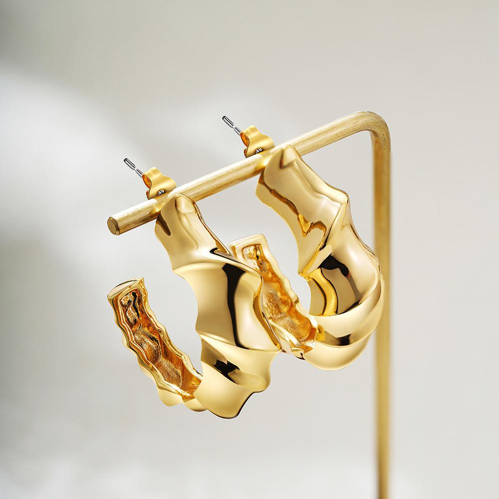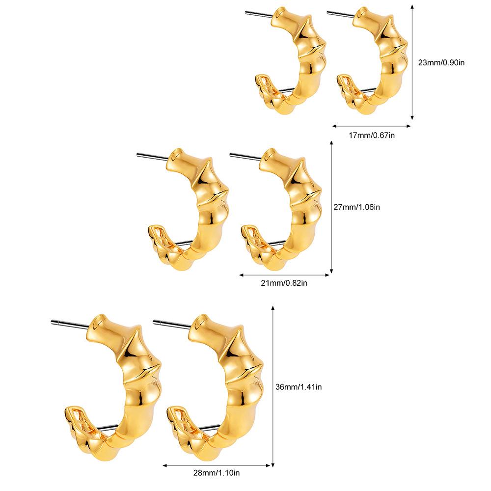 22244 stainless steel bamboo earrings, 18K gold C-shaped 23mmT087_3, 18K gold C-shaped 27mmT087_2, 18K gold C-shaped 36mmT087_1