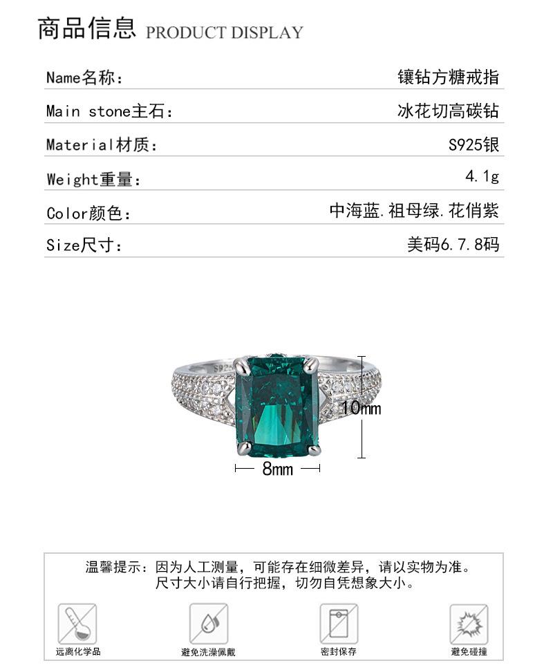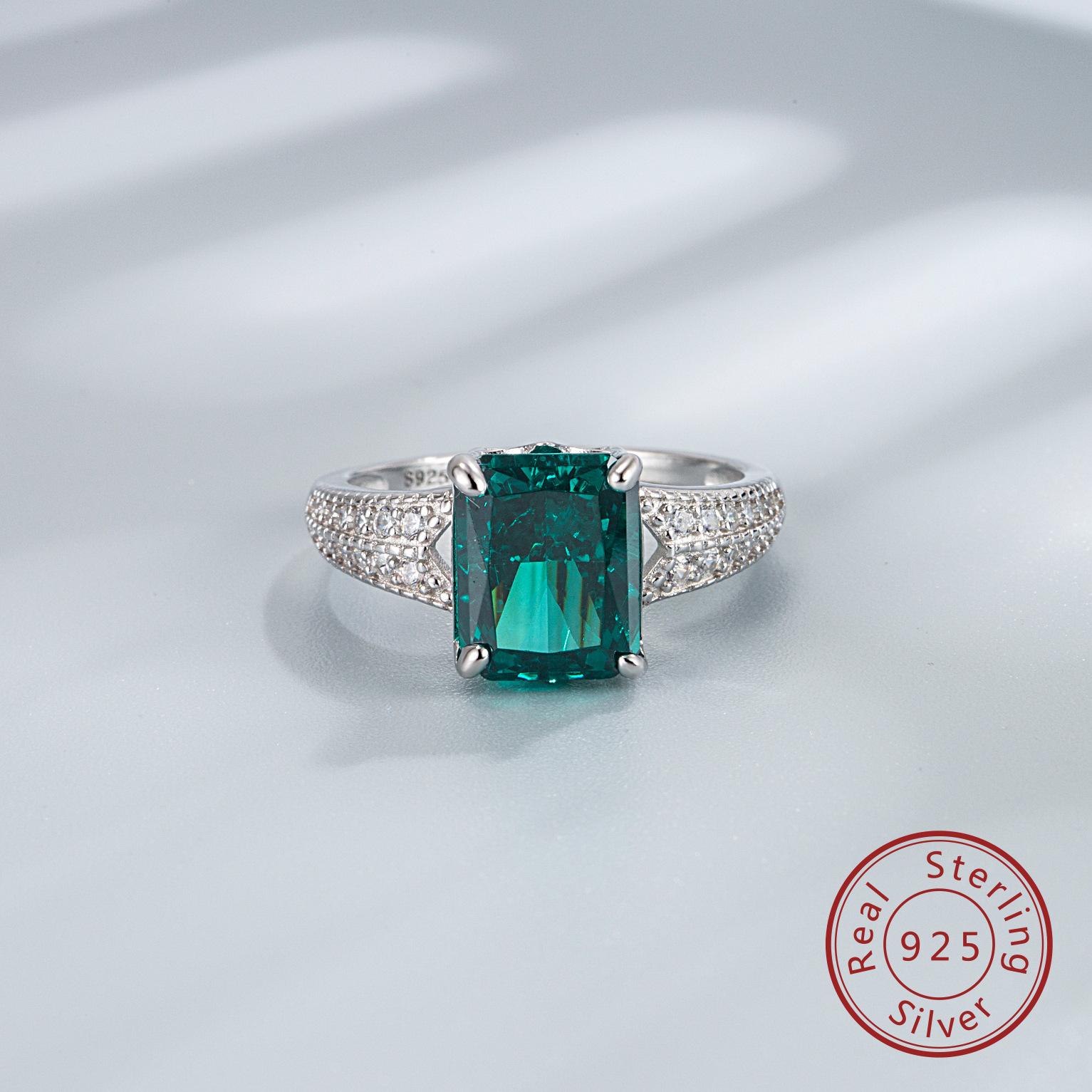 Anillo de esmeralda rectangular de 8 x 10 cm con corte de flor de hielo y diamantes de alto carbono en plata esterlina S925 de lujo transfronterizo de Amazon, de estilo europeo y americano.