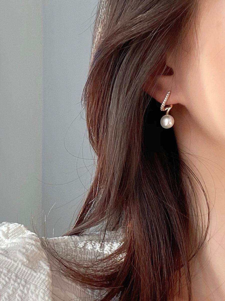 Aretes de Perlas Pequeñas Estilo Coreano para Mujer, Aretes de Micro-Diamantes de Alta Gama, Aretes de Lujo Accesible, Aretes y Joyería de Moda Nicho