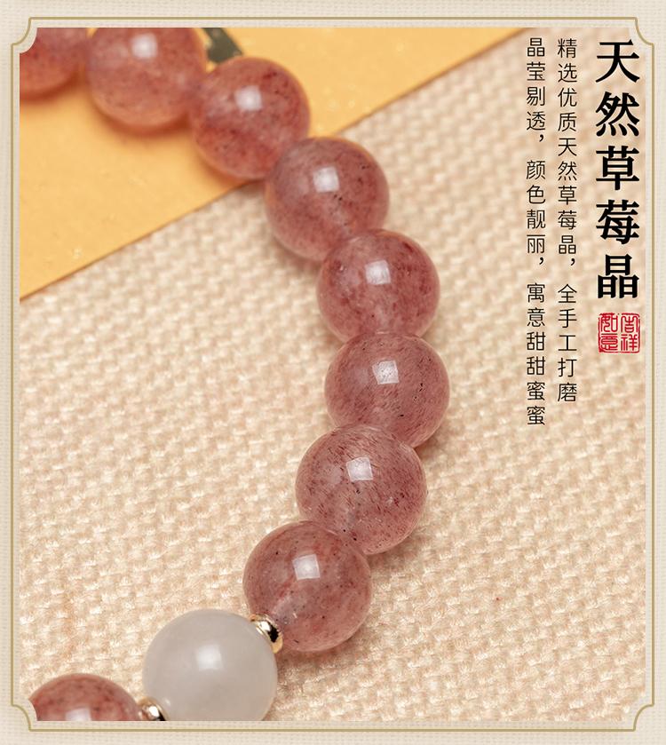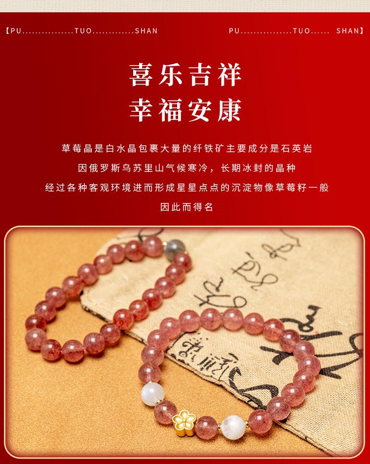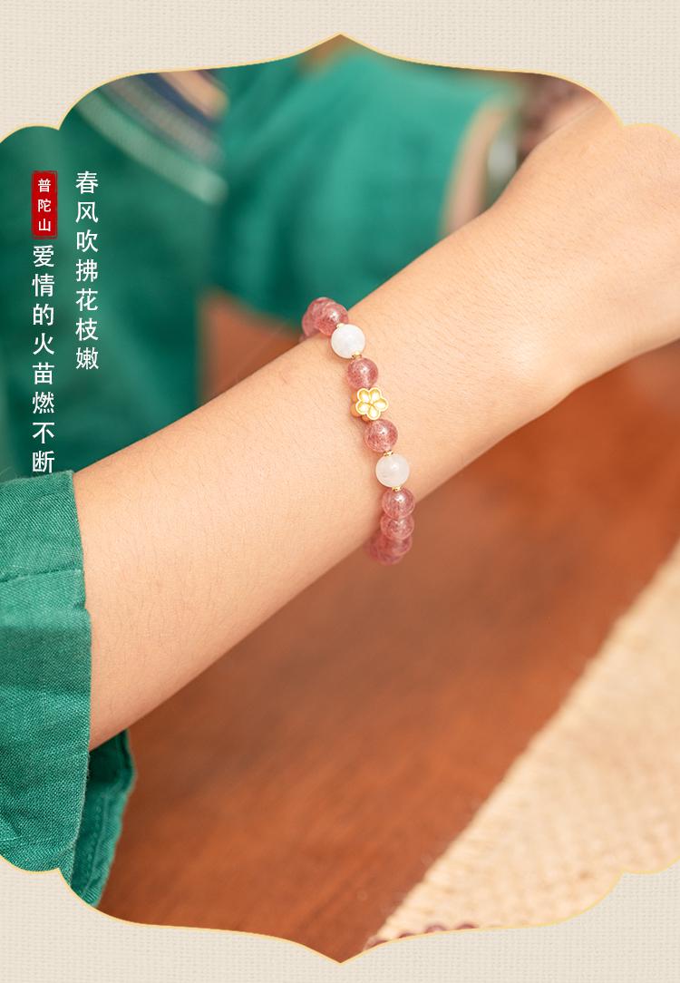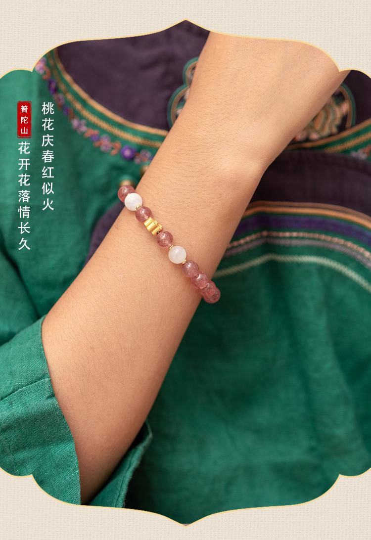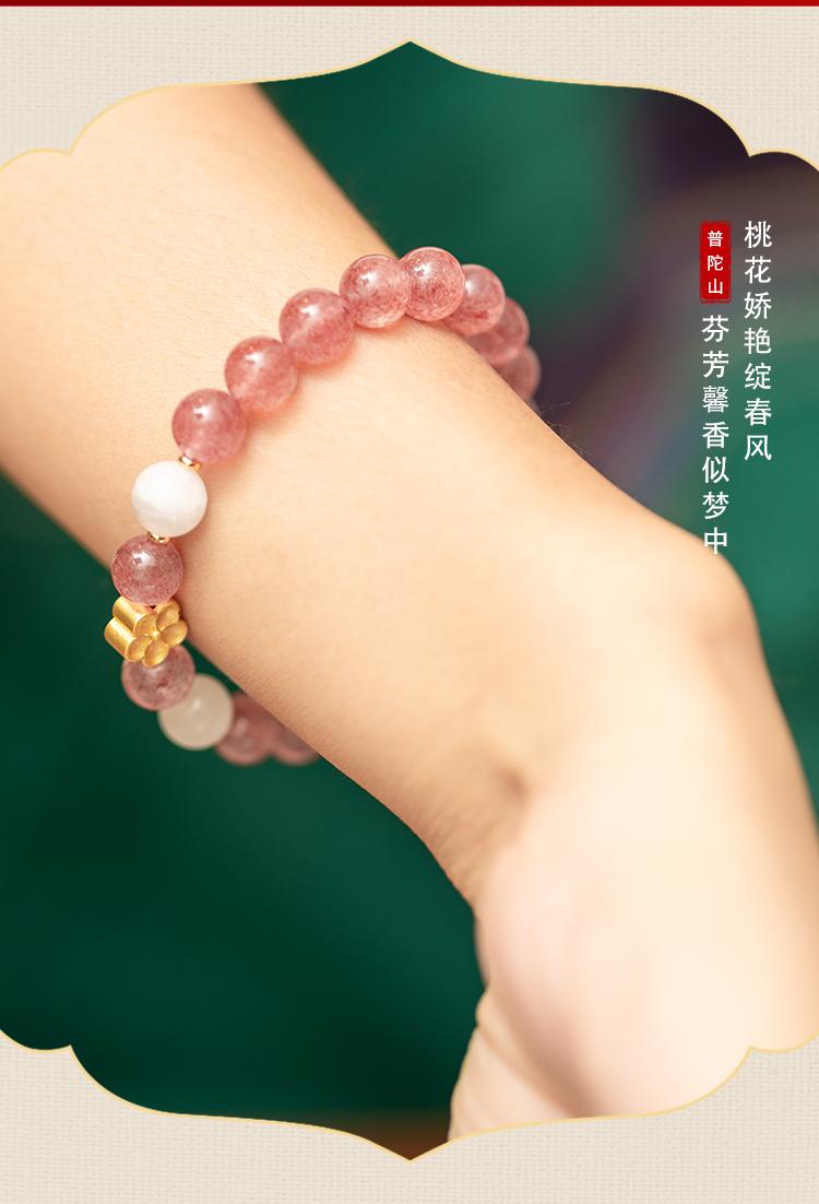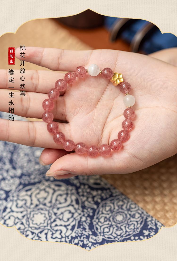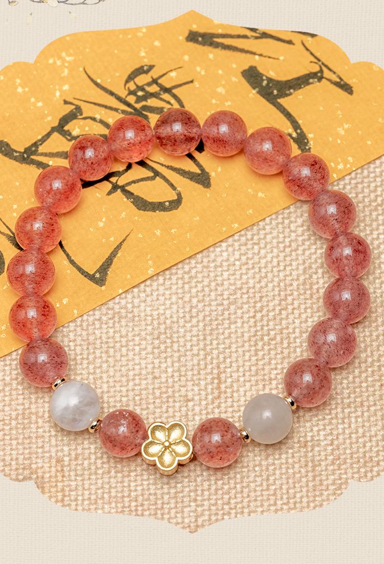 Pulsera Imitación Cristal de Fresa Flor de Durazno Estilo Étnico Transferencia Flor de Durazno Pulsera de Cristal de Fresa Femenina Pulsera para Mejor Amiga Regalo Femenino