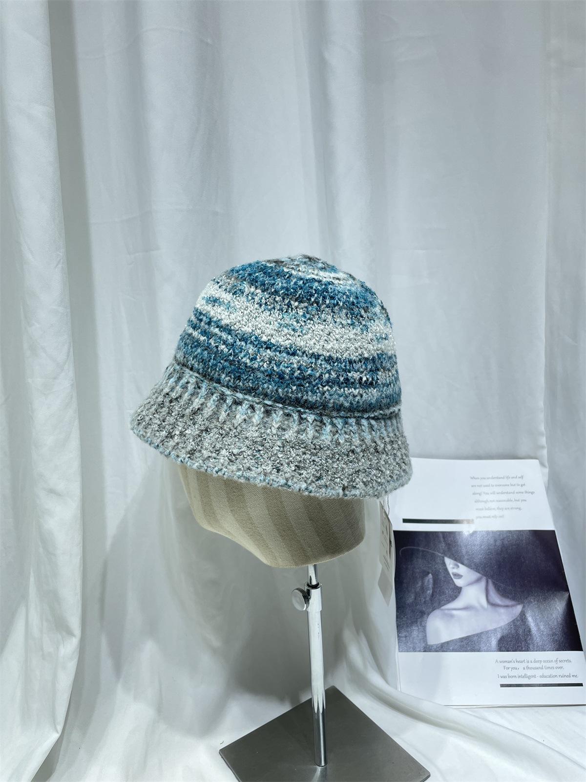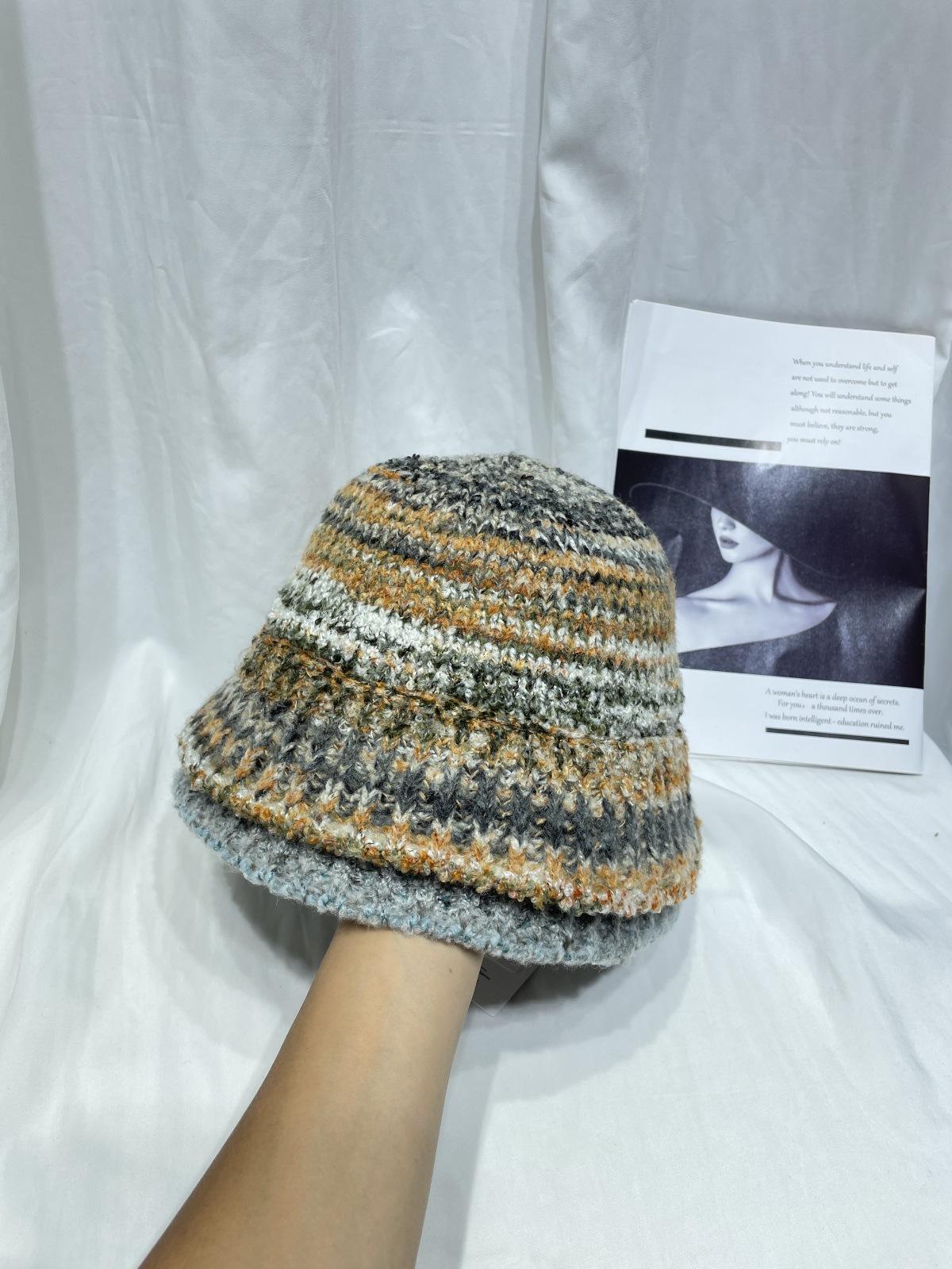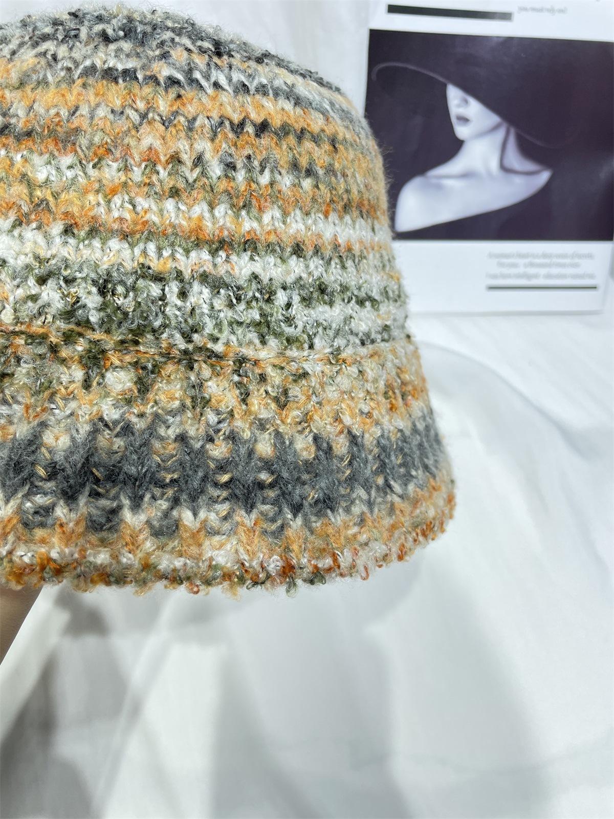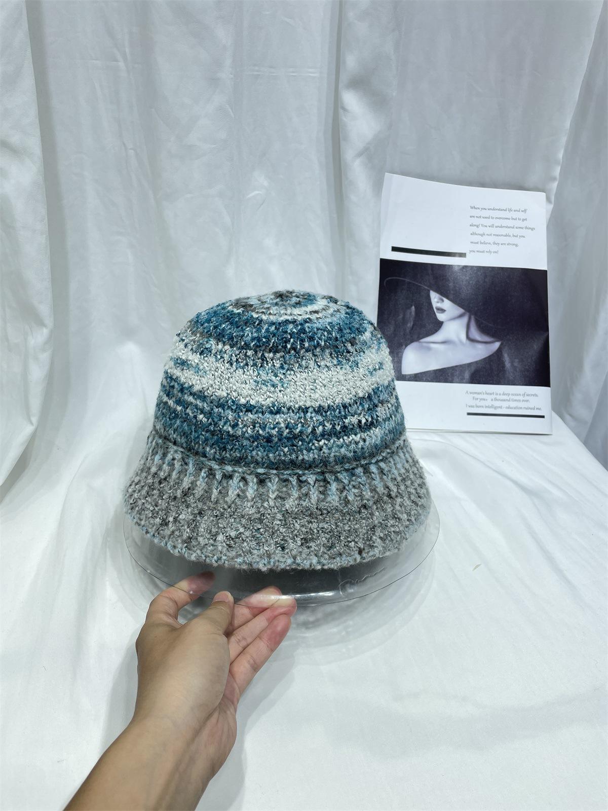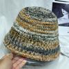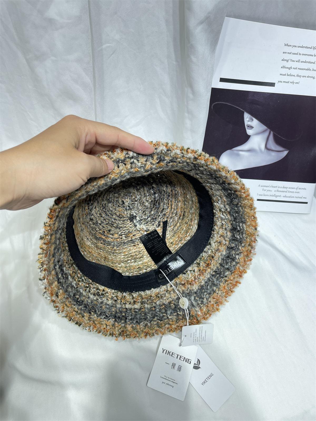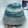 Corea del Sur Otoño e Invierno Colorido Degradado Tejido Sombrero de Pescador Sombrero de Cubo Cálido de Lana Estilo Japonés para Mujer Moda Rostro Pequeño