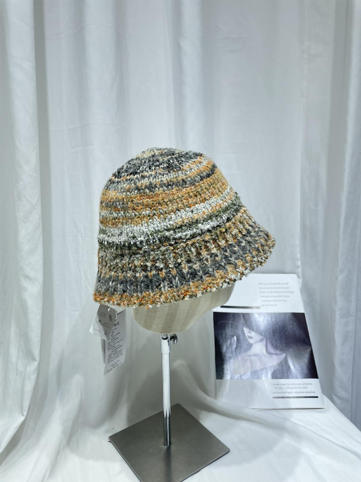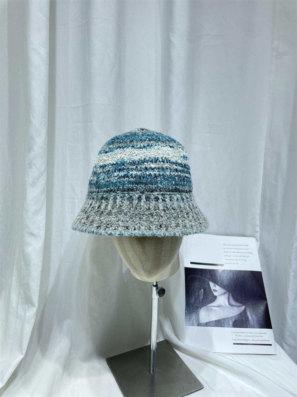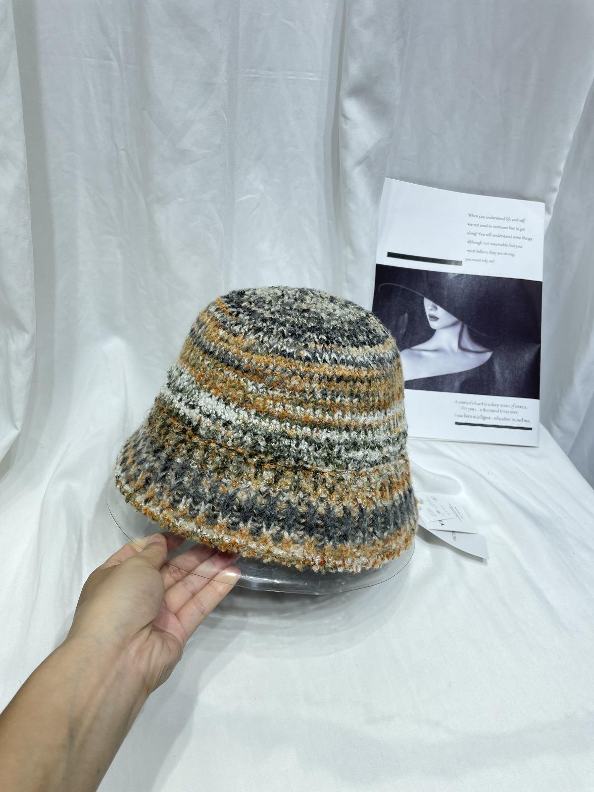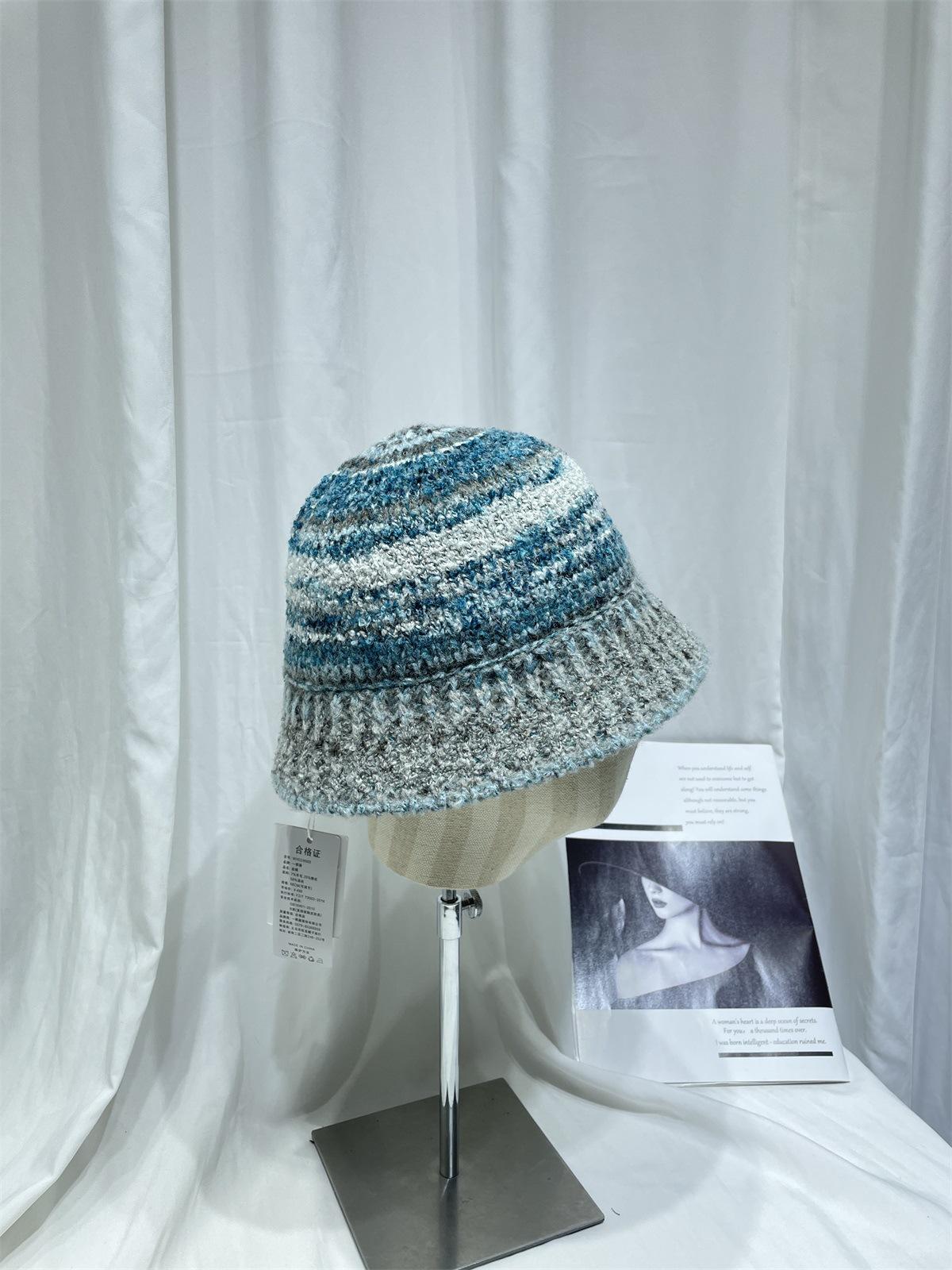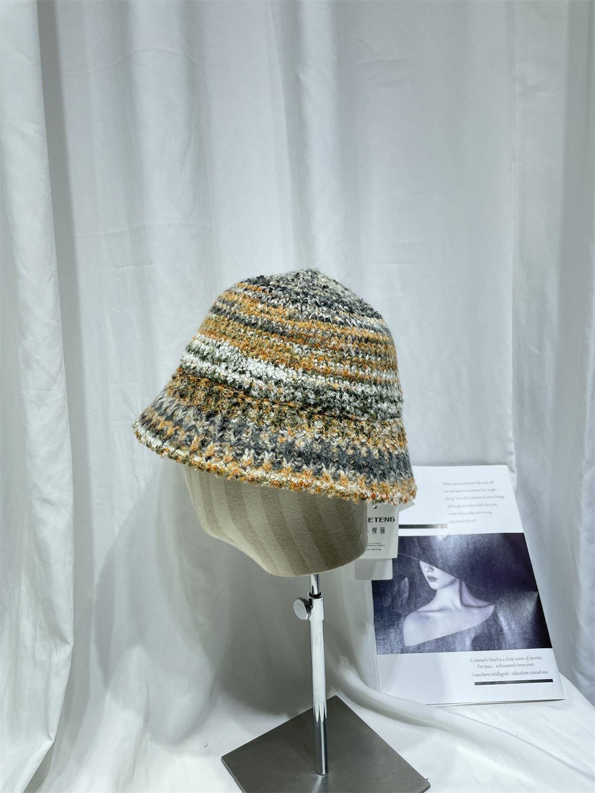 Corea del Sur Otoño e Invierno Colorido Degradado Tejido Sombrero de Pescador Sombrero de Cubo Cálido de Lana Estilo Japonés para Mujer Moda Rostro Pequeño