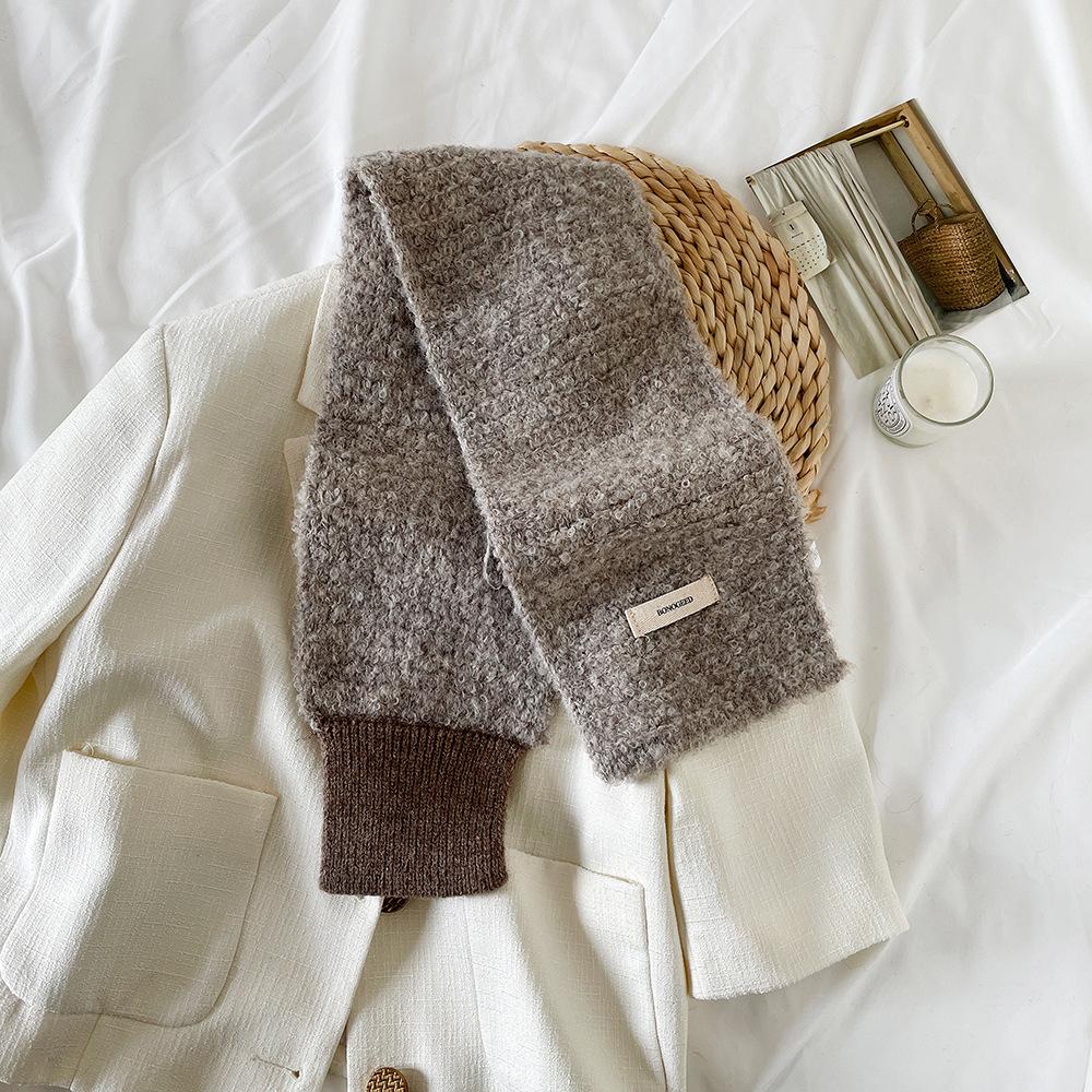 Bufanda pequeña de lana tejida de estilo coreano para mujer, de invierno, nueva, de alta gama, con colores sencillos y relajantes.