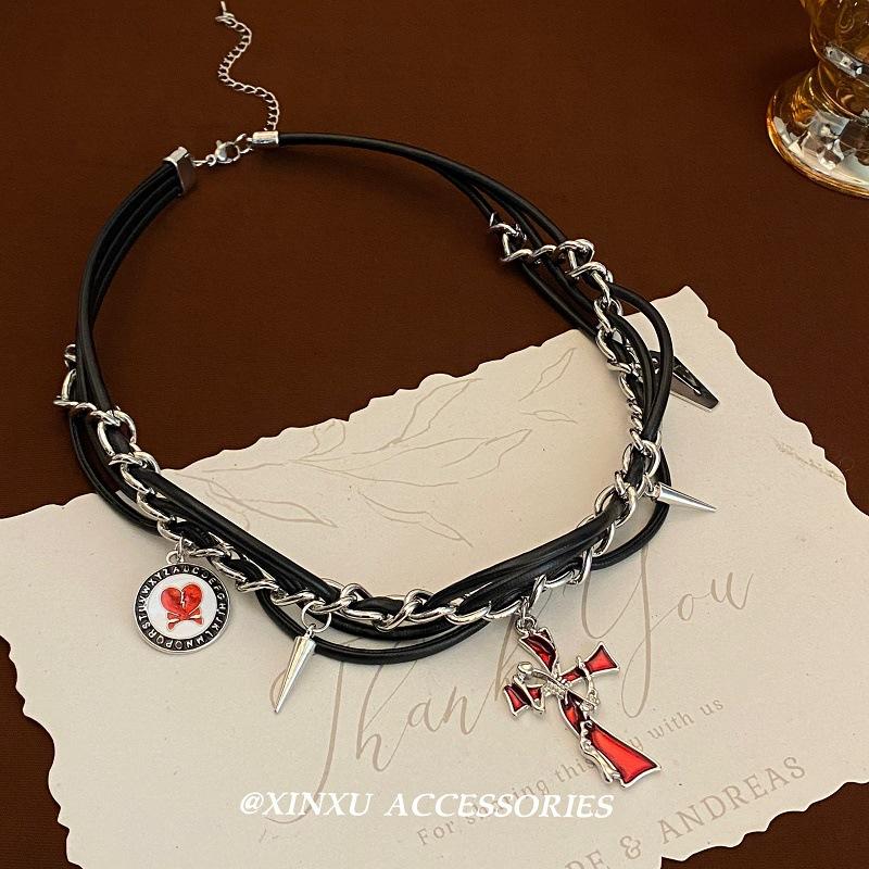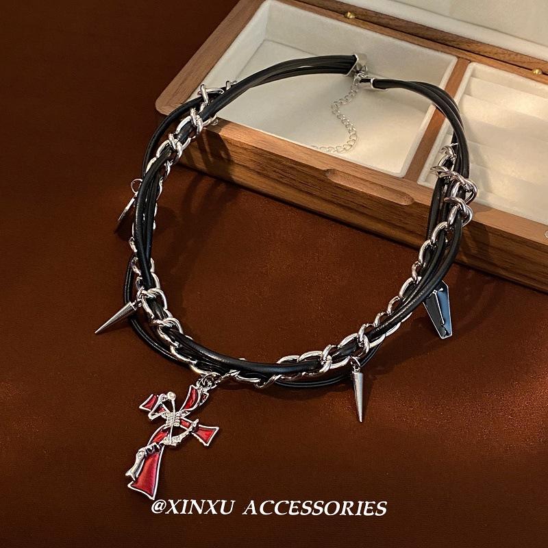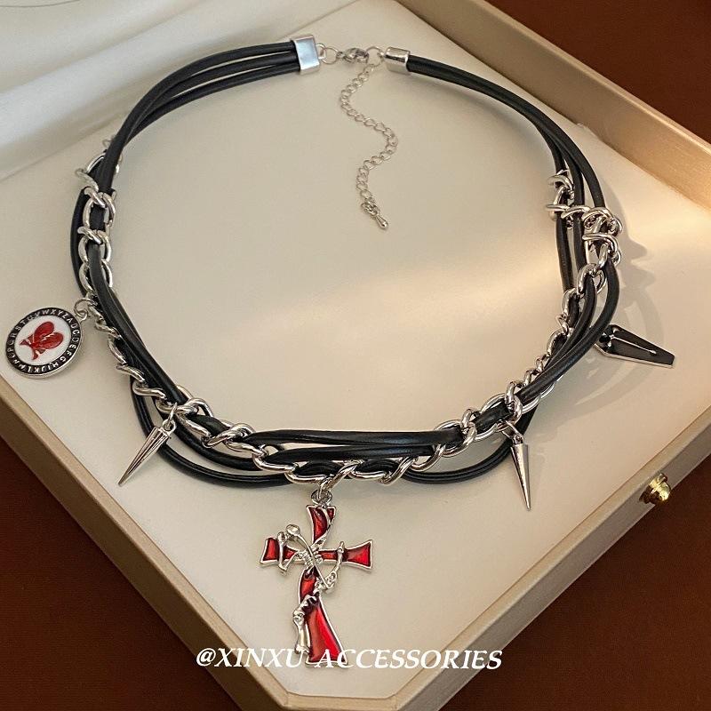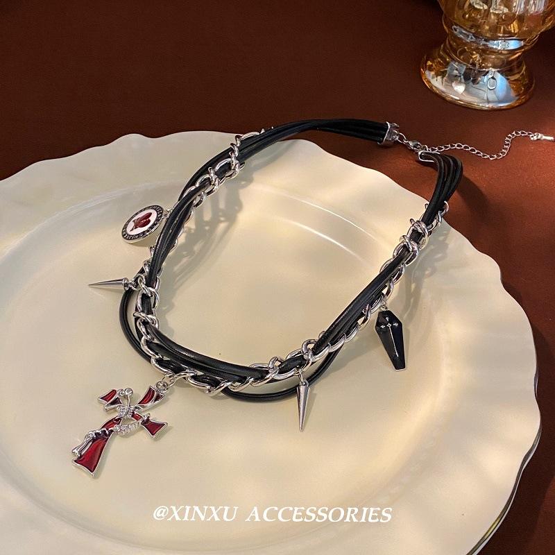 Collar retro irregular de cruz roja de sauce para uñas 2024 nuevo diseño de personalidad con temperamento collar simple oscuro