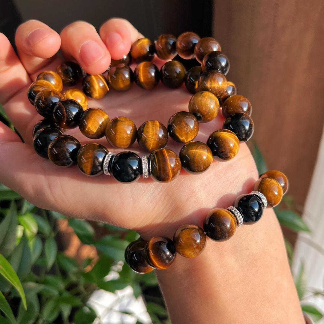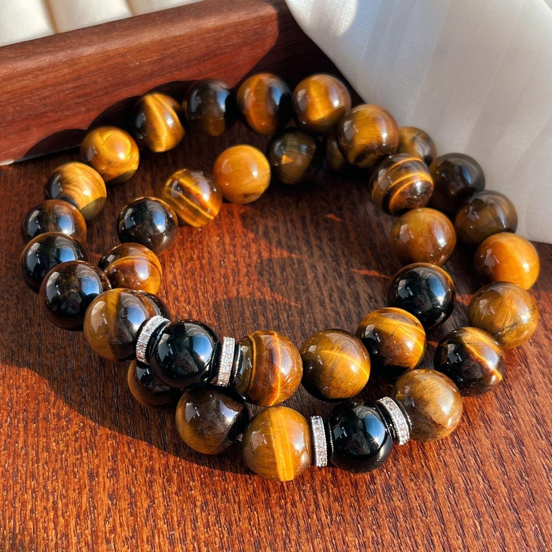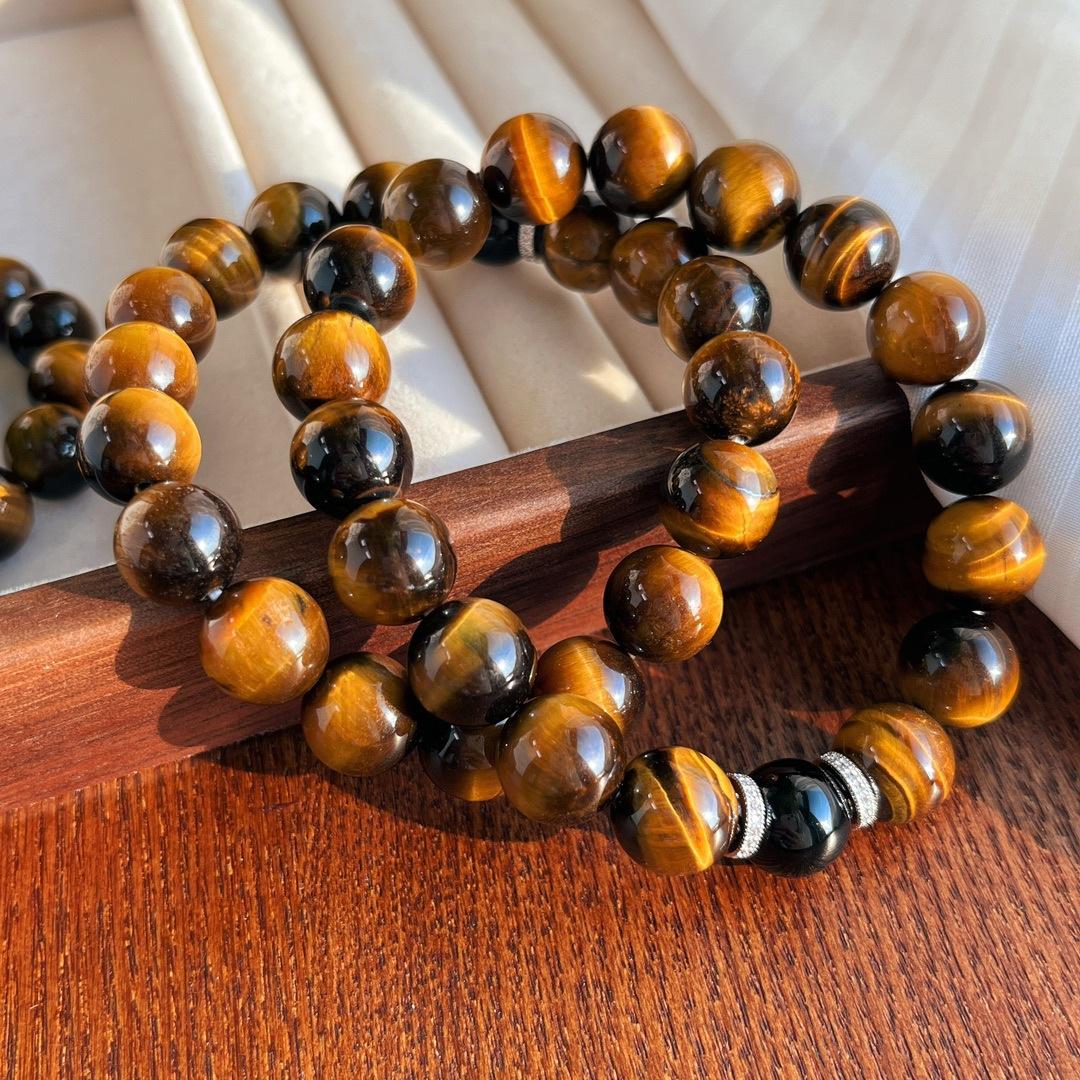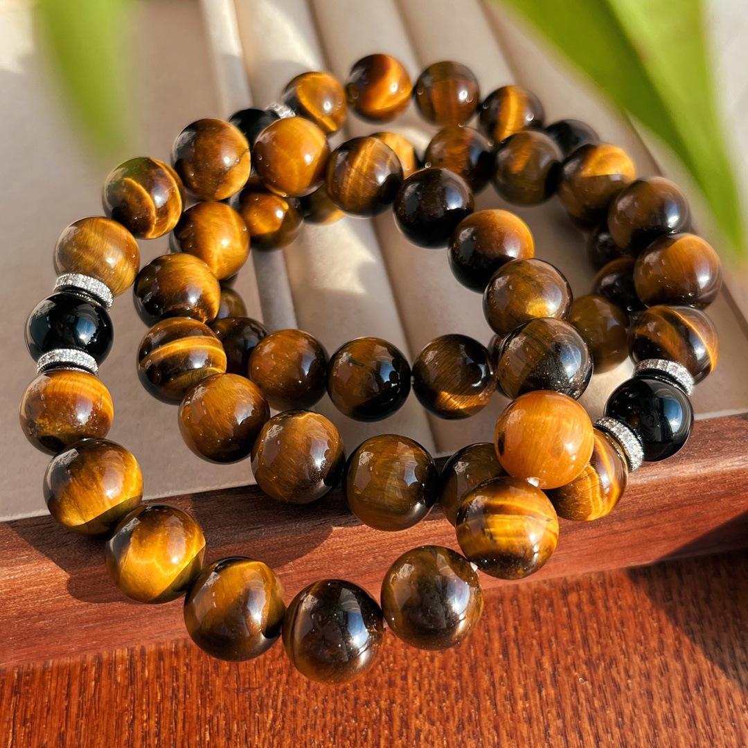 Pulsera Estilo Maillard Ojo de Tigre Amarillo Natural Ónix Negro para Mujer Pulsera con Cuentas de Alta Calidad Atmósfera