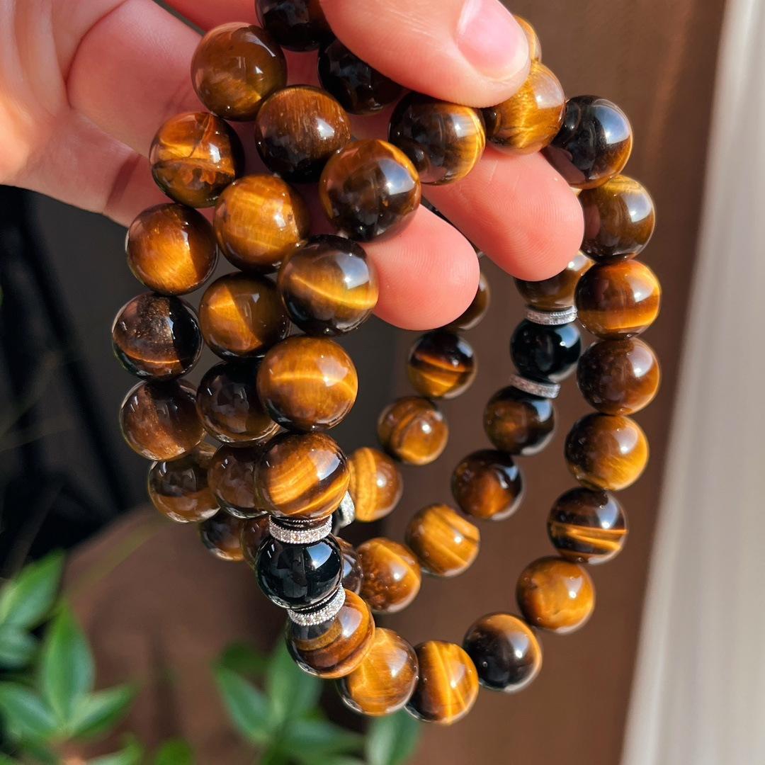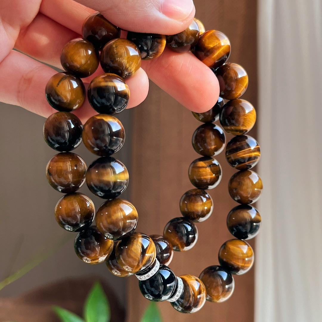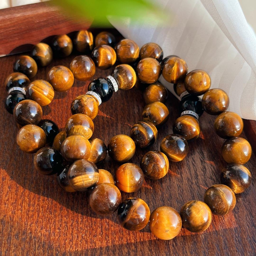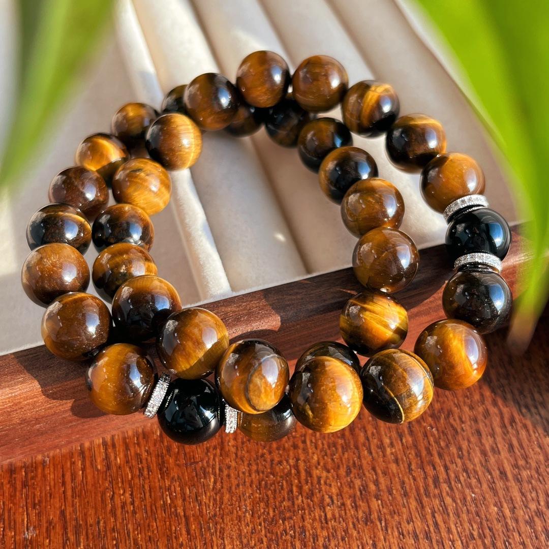 Pulsera Estilo Maillard Ojo de Tigre Amarillo Natural Ónix Negro para Mujer Pulsera con Cuentas de Alta Calidad Atmósfera