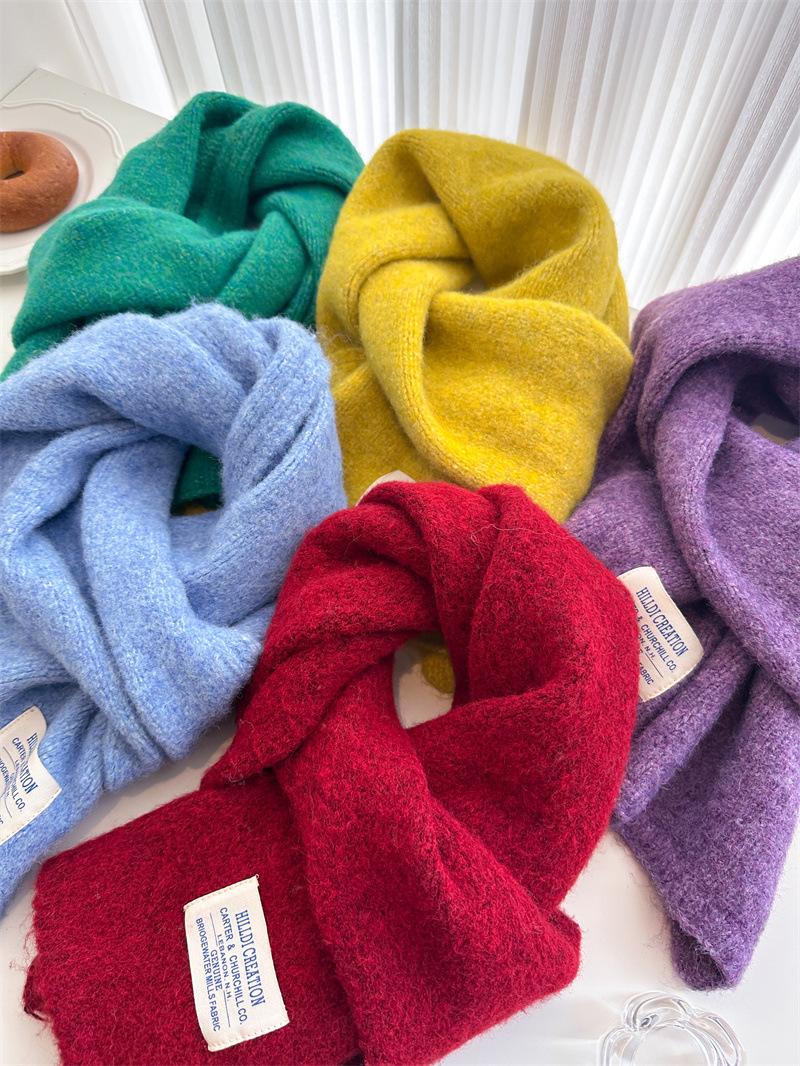 Bufanda Tejida de Lana Estilo Chanel Estilo Coreano Nueva Color Sólido Chal Bufanda de Longitud Media Combinable Cálida para Otoño e Invierno Mujer