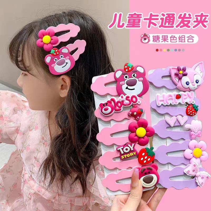 Horquilla de pelo roto para niña, horquilla de oso de fresa para niña, flequillo con forma de corazón, clip lateral, tocado de conejo de dibujos animados