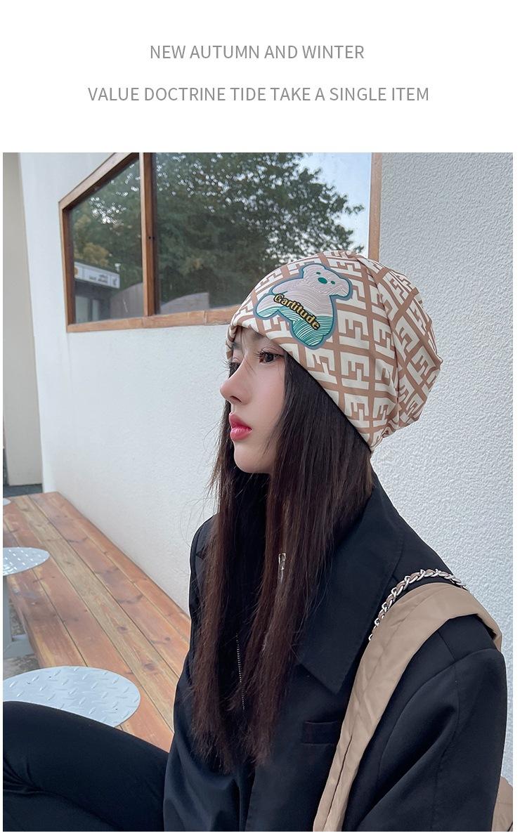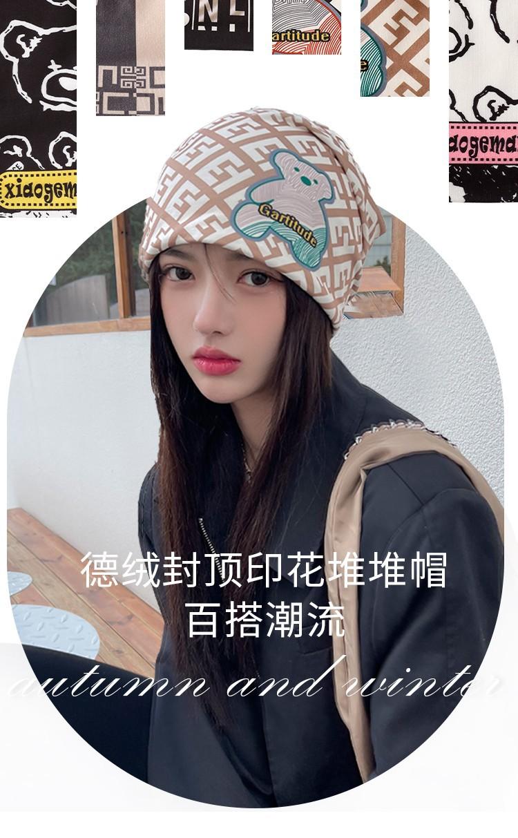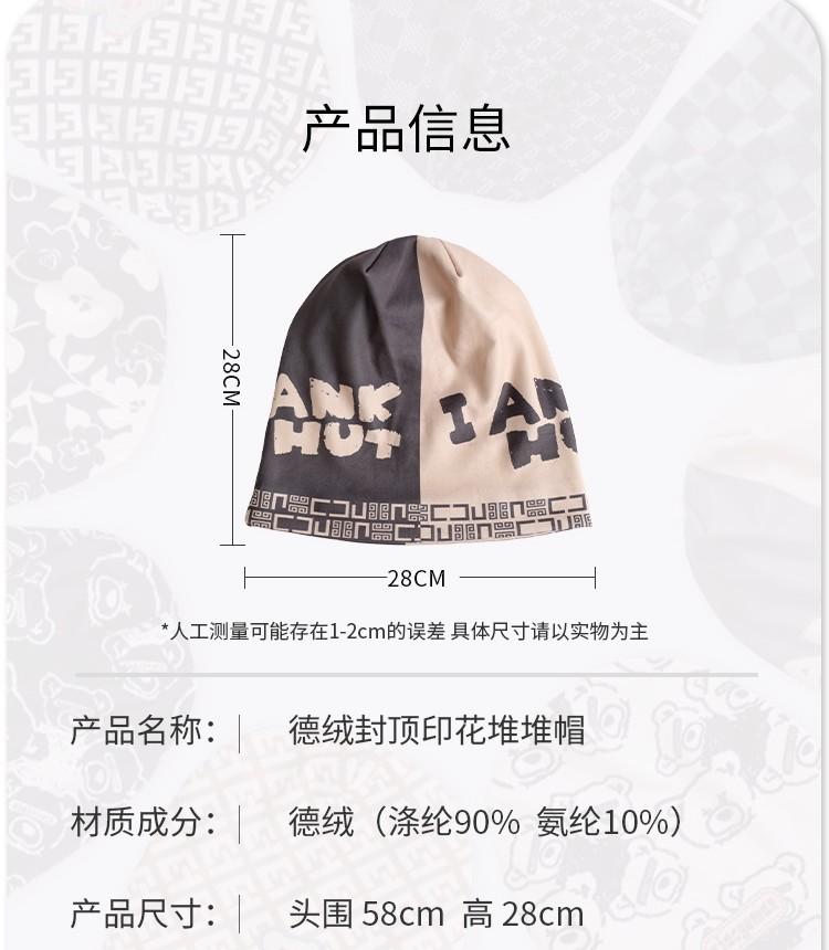 Gorro Beanie para Hombre Gorro para el Frío Primavera y Otoño Marca de Moda Gorro Tejido Unisex Circunferencia de Cabeza Grande Adelgazante de Rostro Terciopelo Estampado Venta al por Mayor