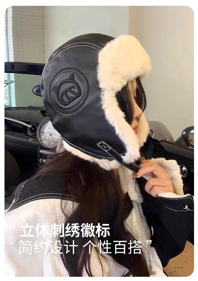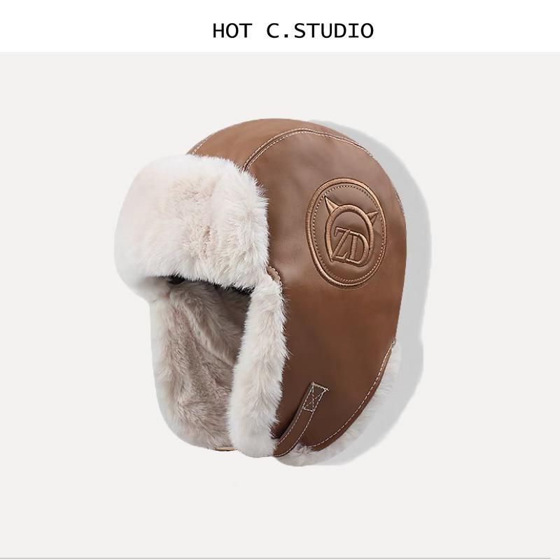 Sombrero Lei Feng de invierno para mujer con forro polar grueso a prueba de frío para esquí, ciclismo, impermeable, de cuero, felpa cálida, protección para las orejas, sombrero a prueba de viento para hombre