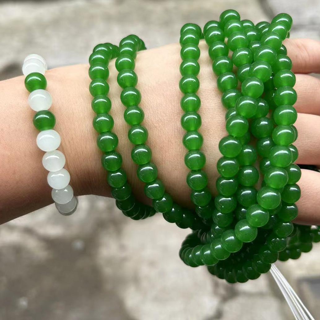 Cuentas redondas de ágata imitación jade verde de 8 mm, cuentas sueltas para pulsera, nuevo chino, accesorios de joyería DIY, pulsera, productos semiacabados al por mayor
