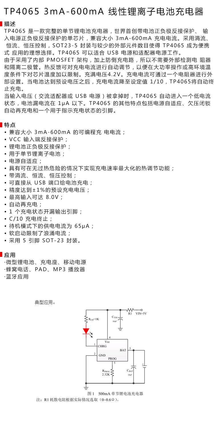 Chip cargador de batería de iones de litio micro TP4065 serigrafiado 65b **SOT23-5 4.2V600MA