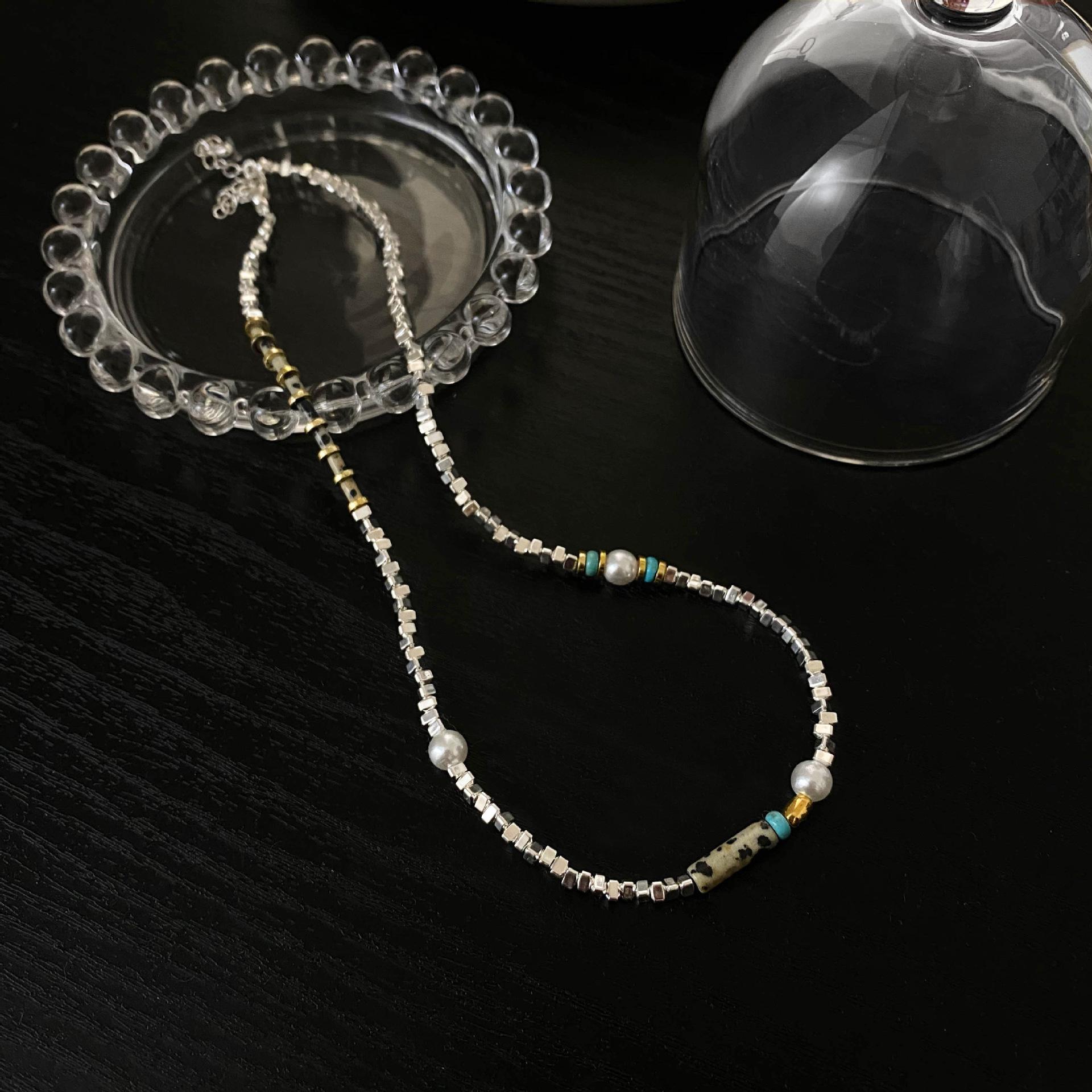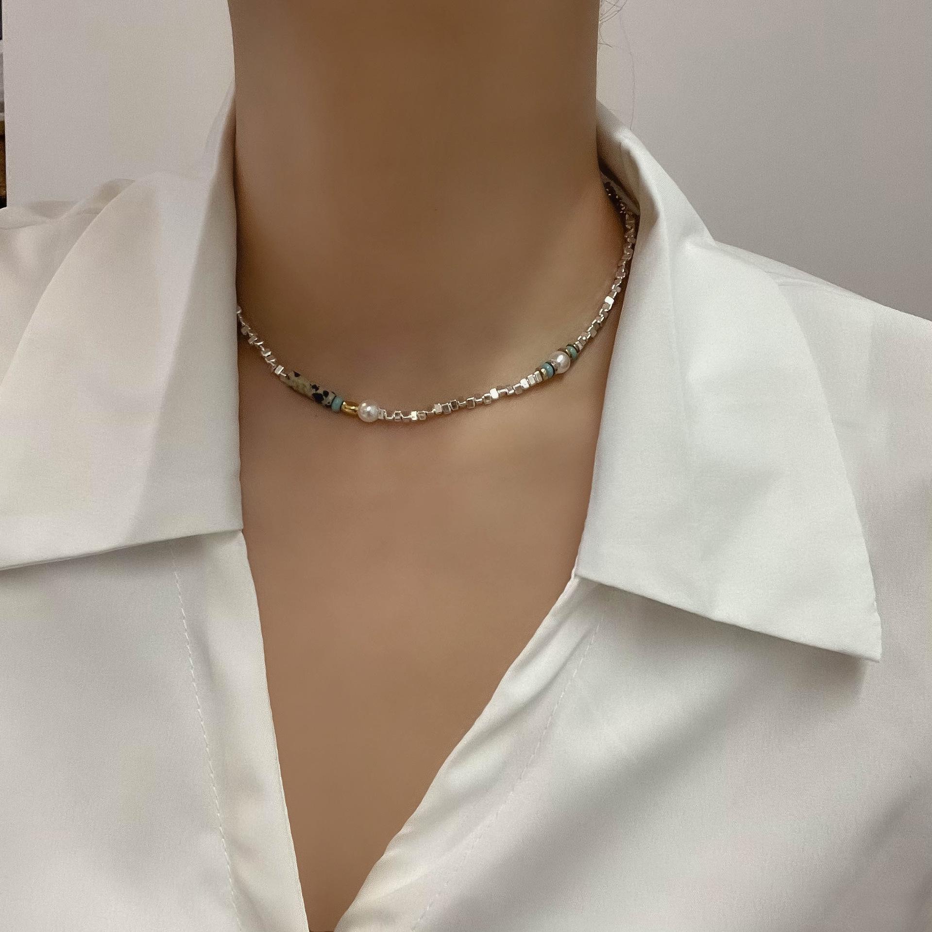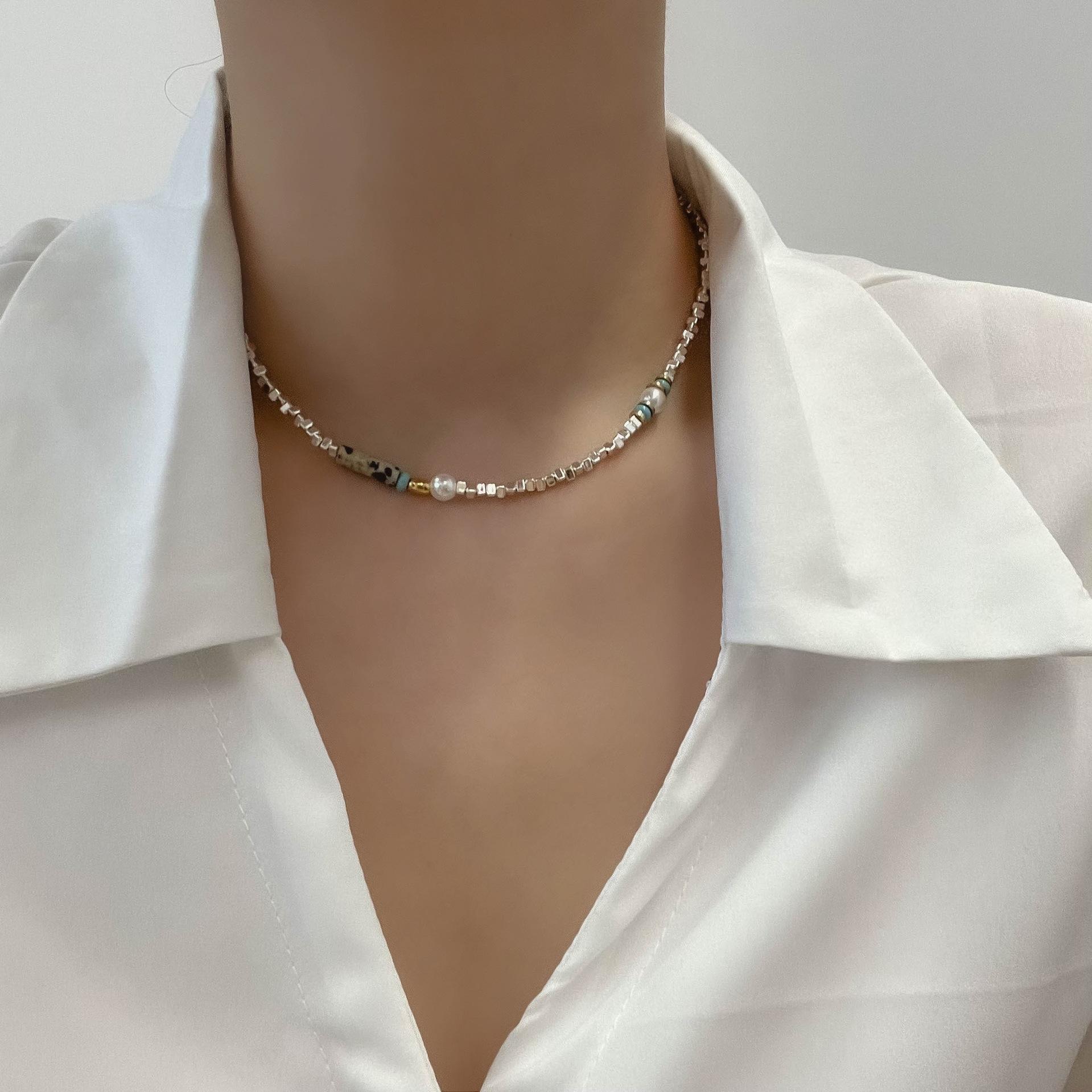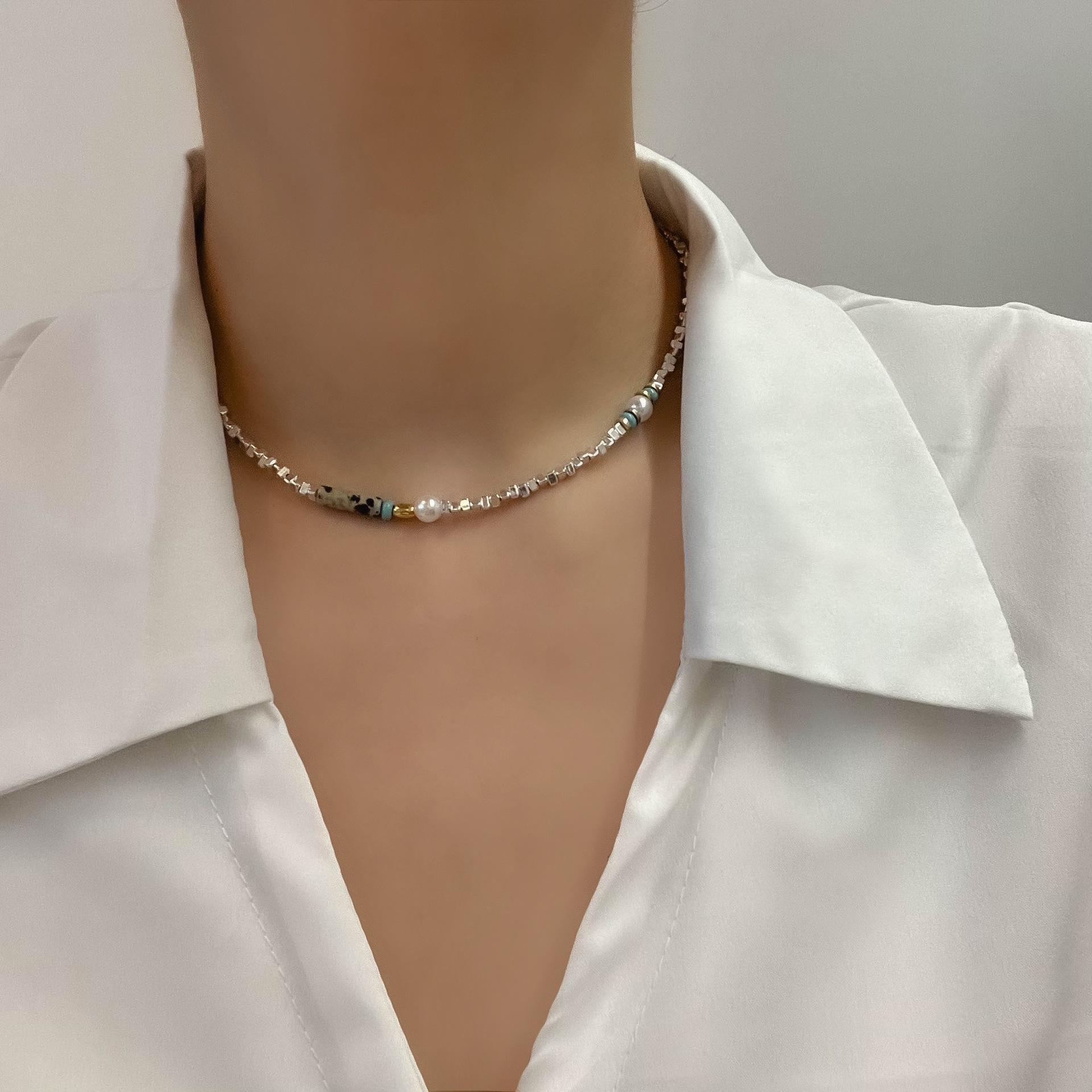 Collar de plata rota con piedra verde de nicho de lujo ligero retro de primavera y verano para mujer, nueva cadena de clavícula con cuentas retro 2023