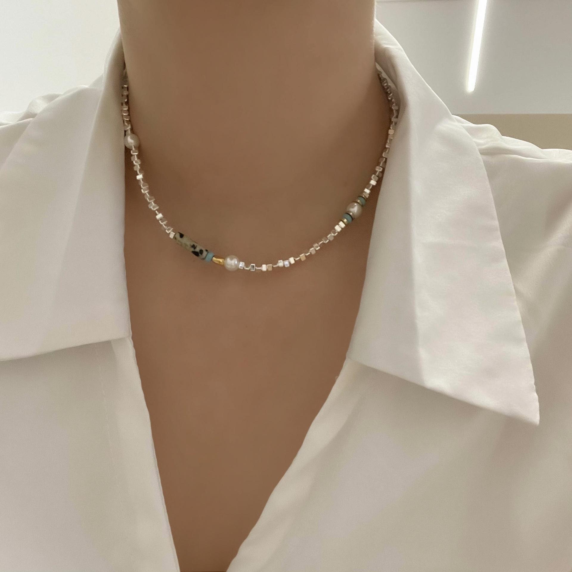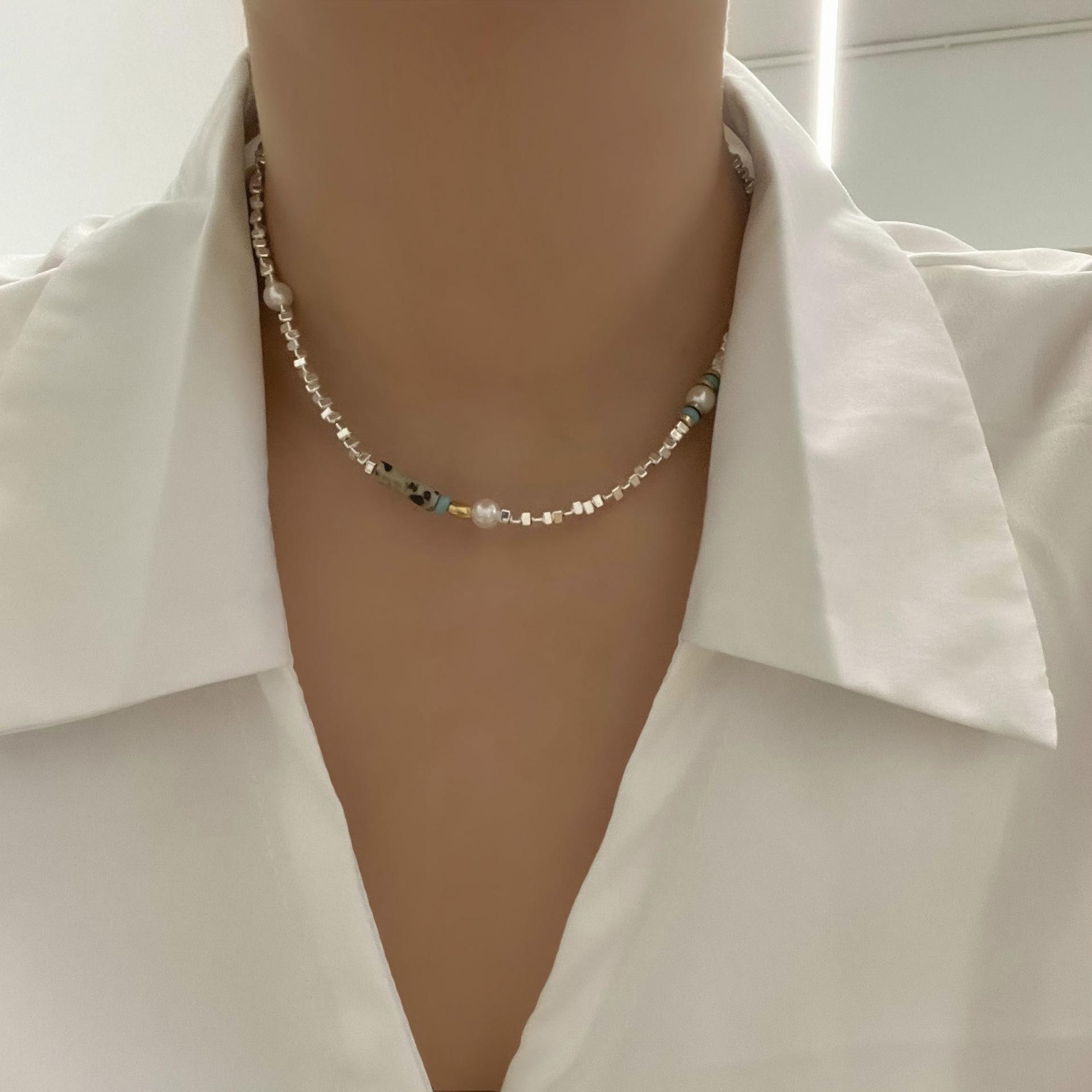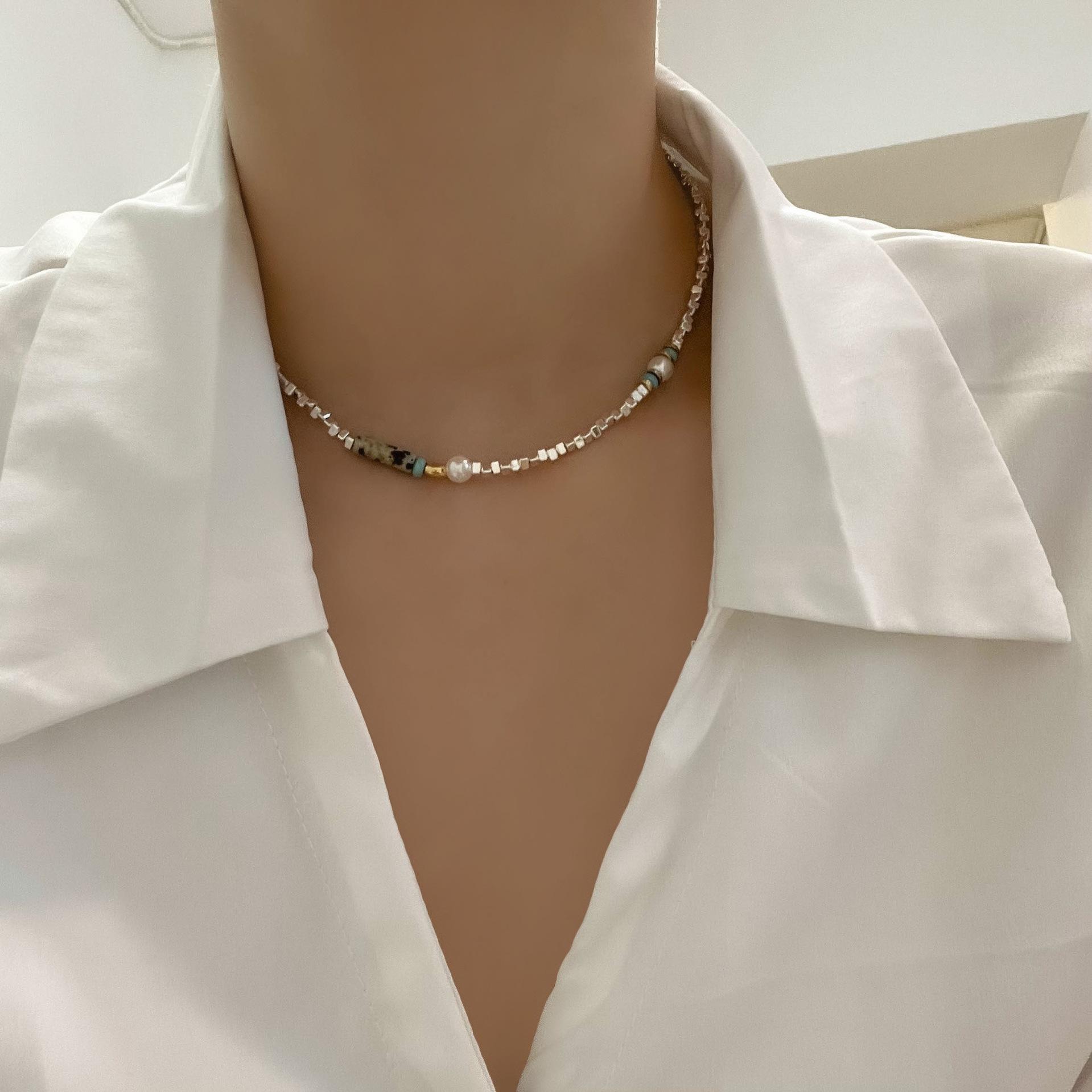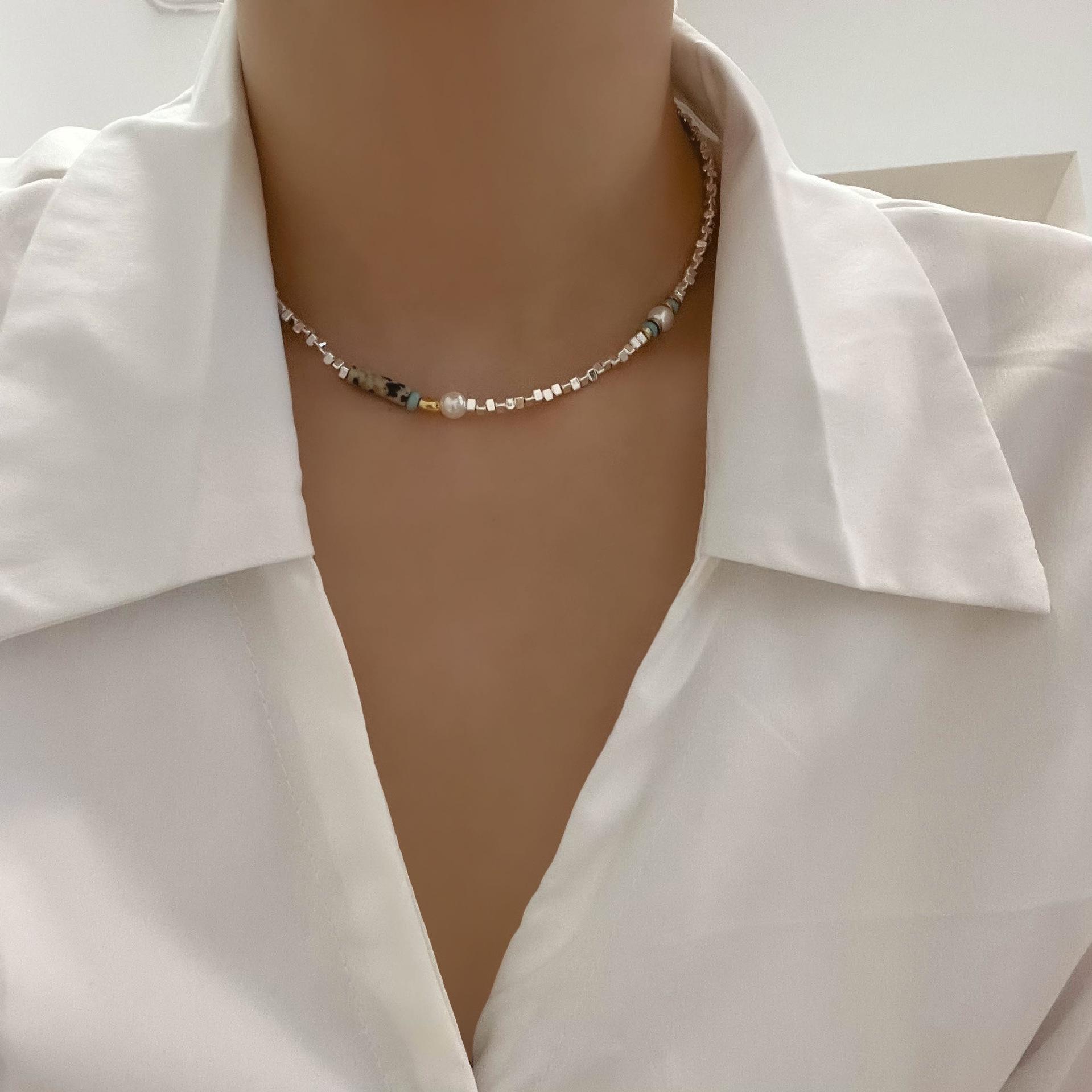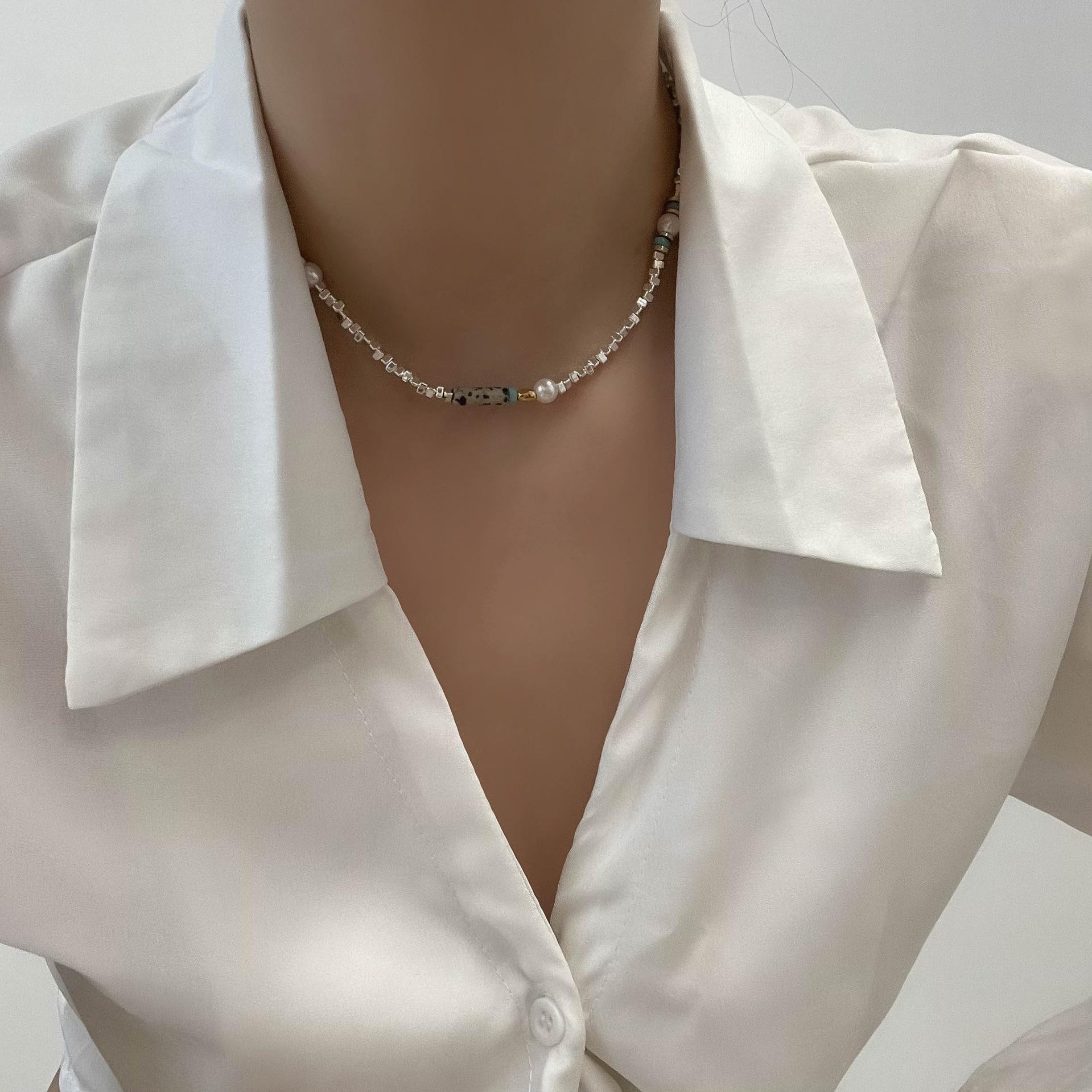 Collar de plata rota con piedra verde de nicho de lujo ligero retro de primavera y verano para mujer, nueva cadena de clavícula con cuentas retro 2023