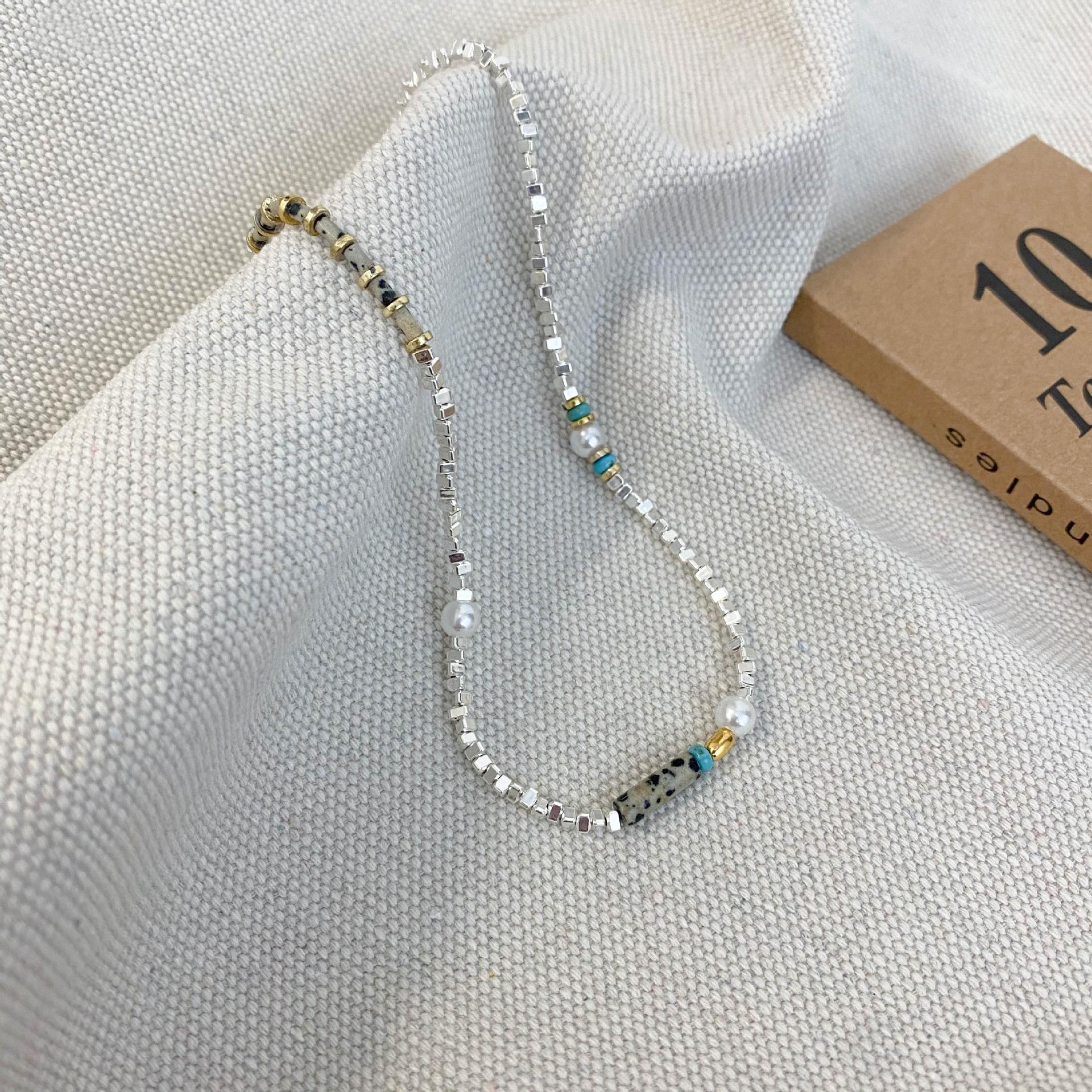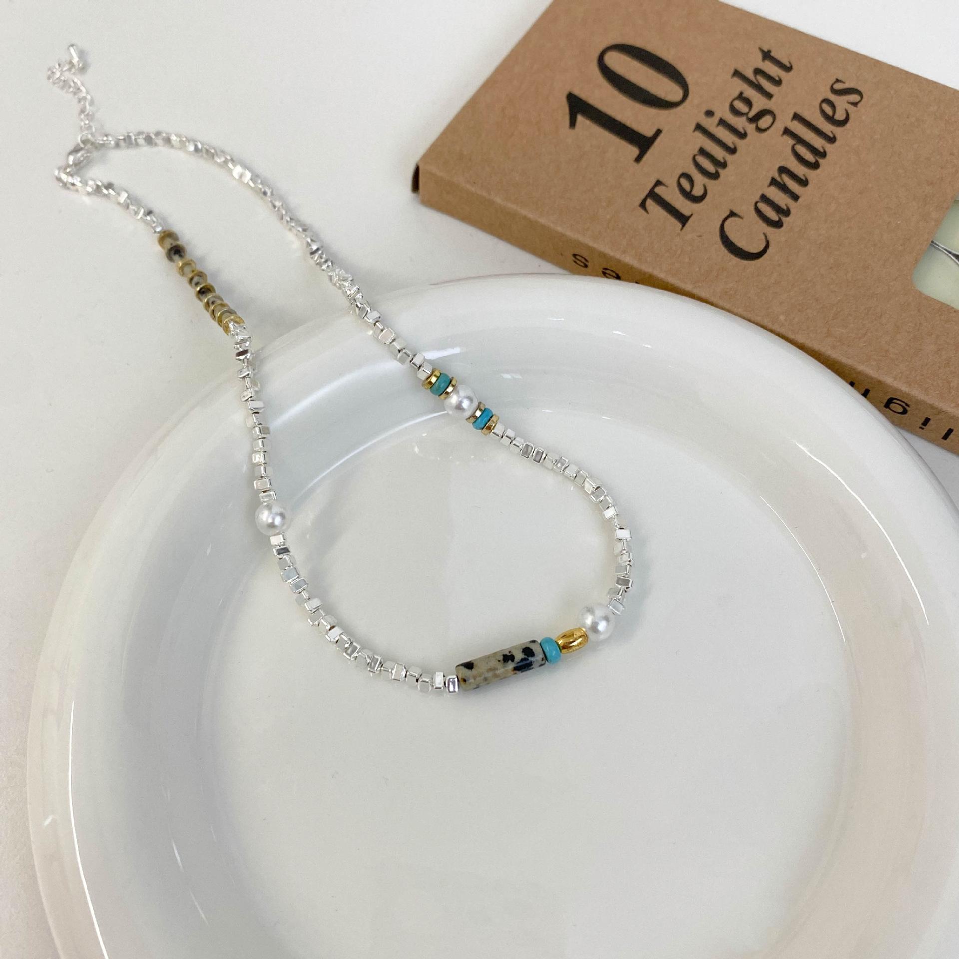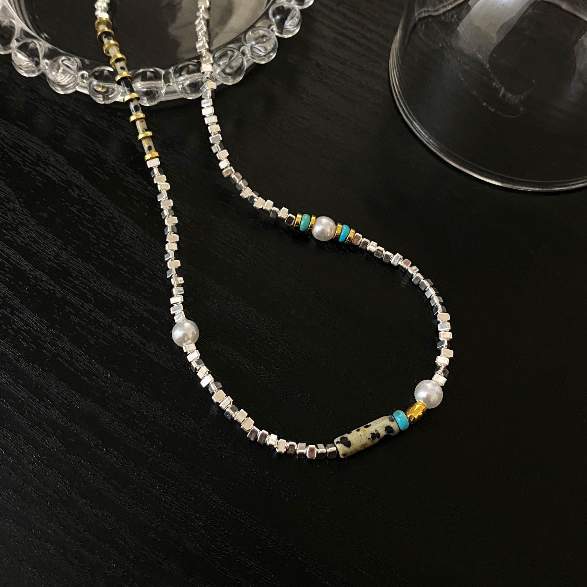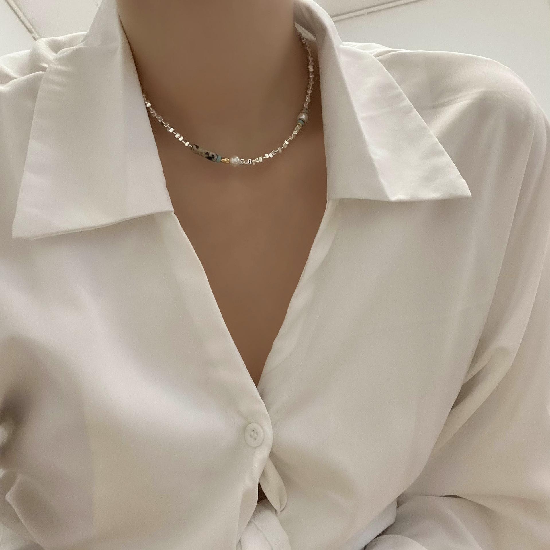 Collar de plata rota con piedra verde de nicho de lujo ligero retro de primavera y verano para mujer, nueva cadena de clavícula con cuentas retro 2023