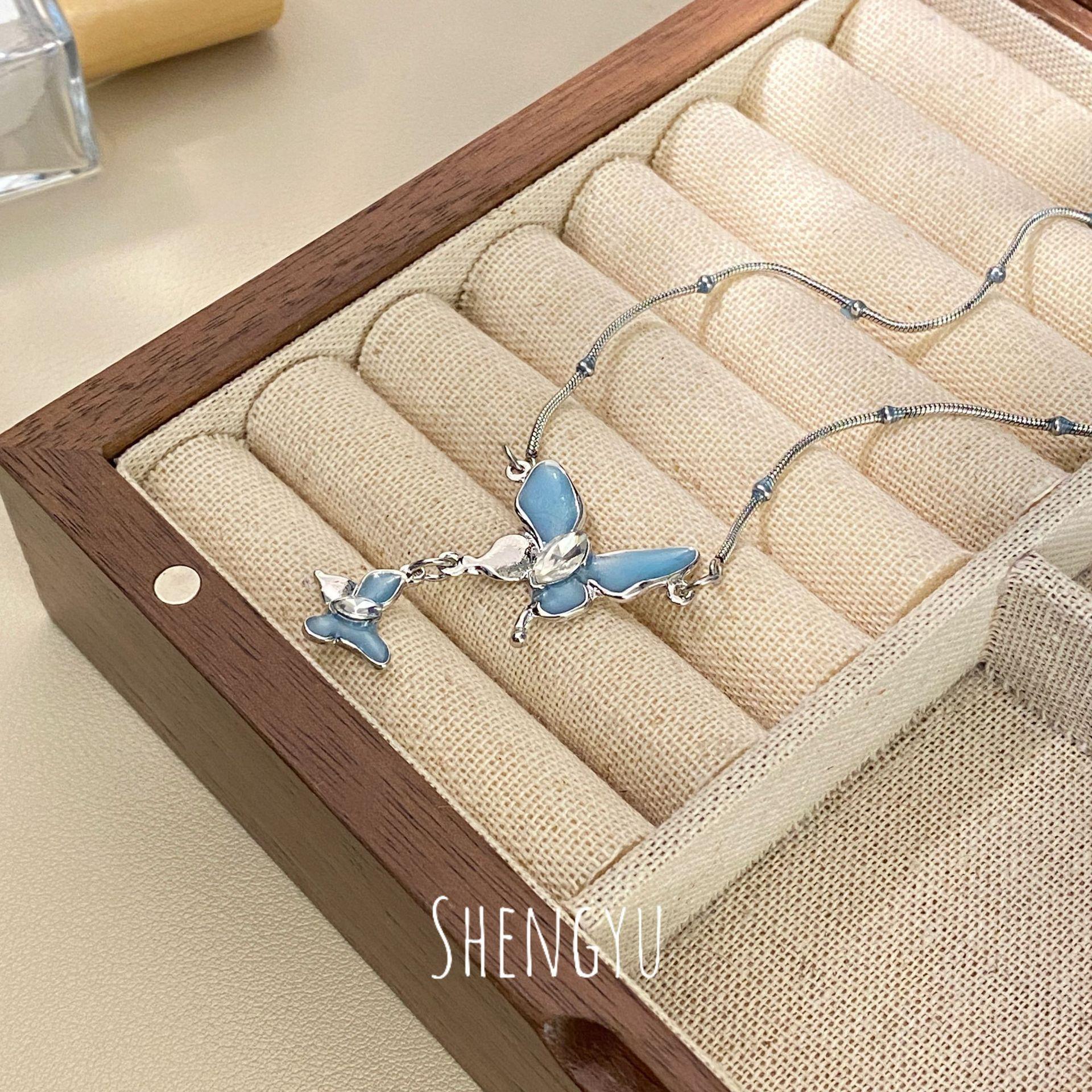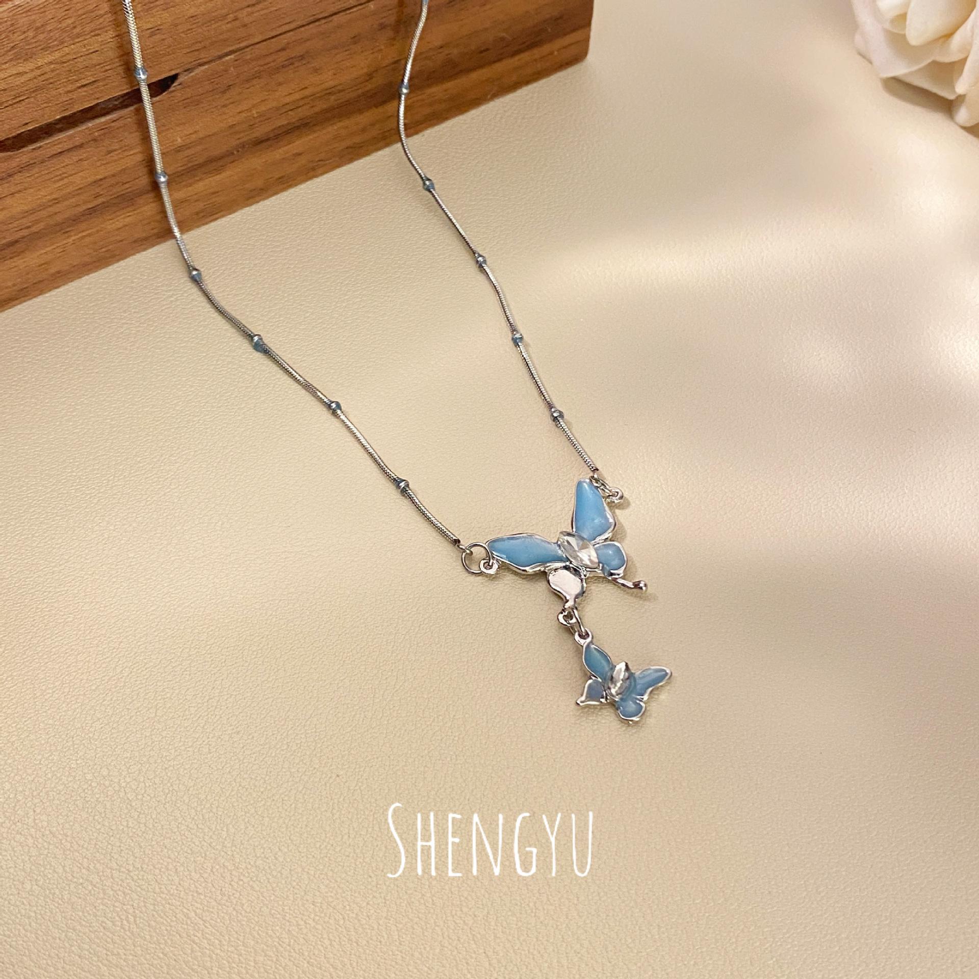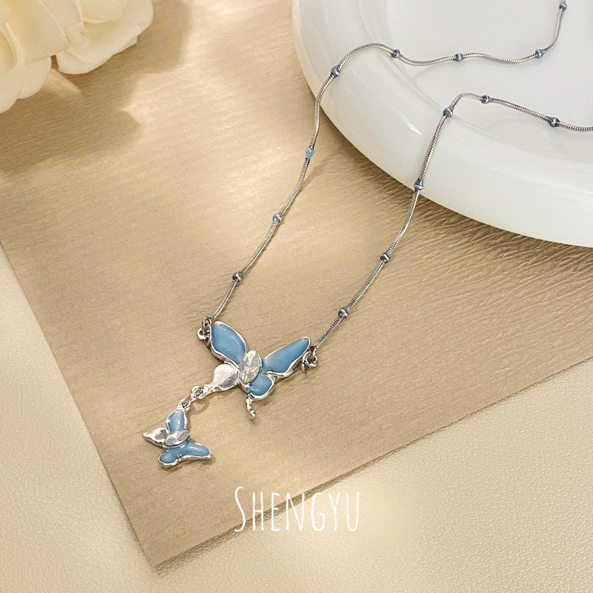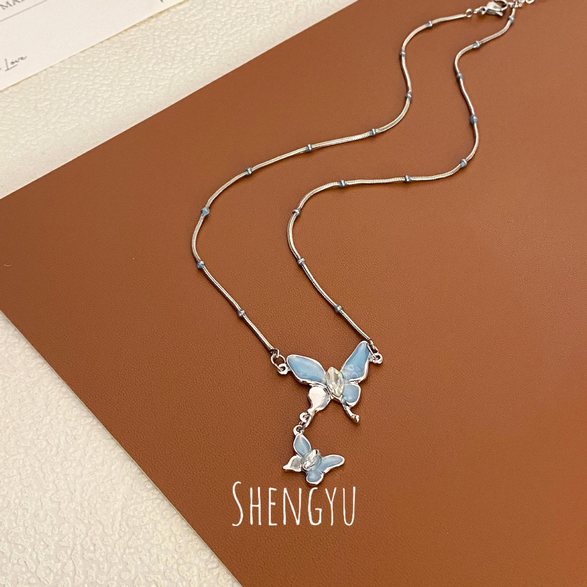 Collar con colgante de mariposa para mujer, diseño de cadena de clavícula con esmalte de gota de sensación fresca, único y con temperamento, 2024
