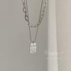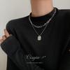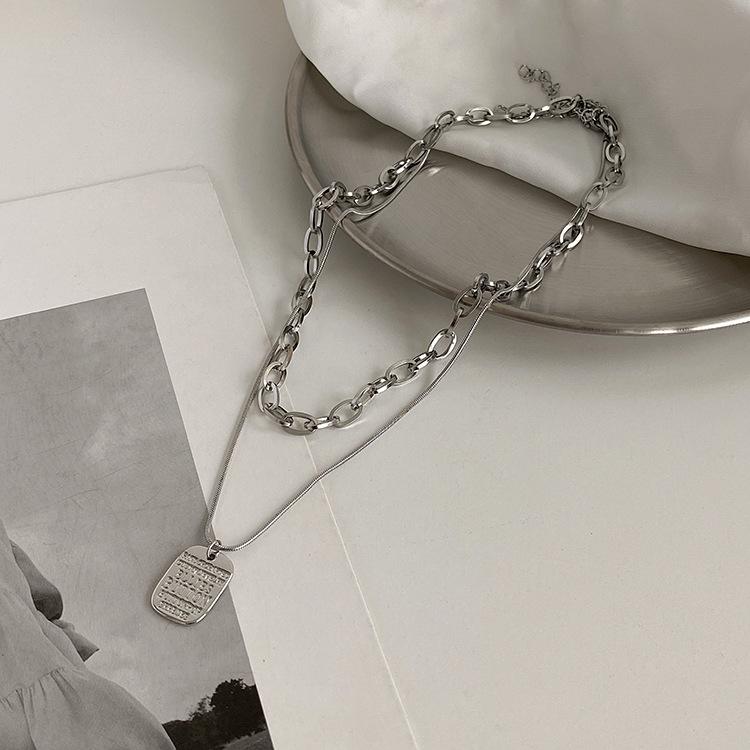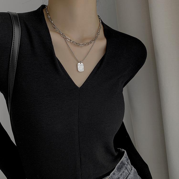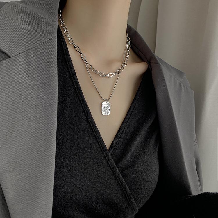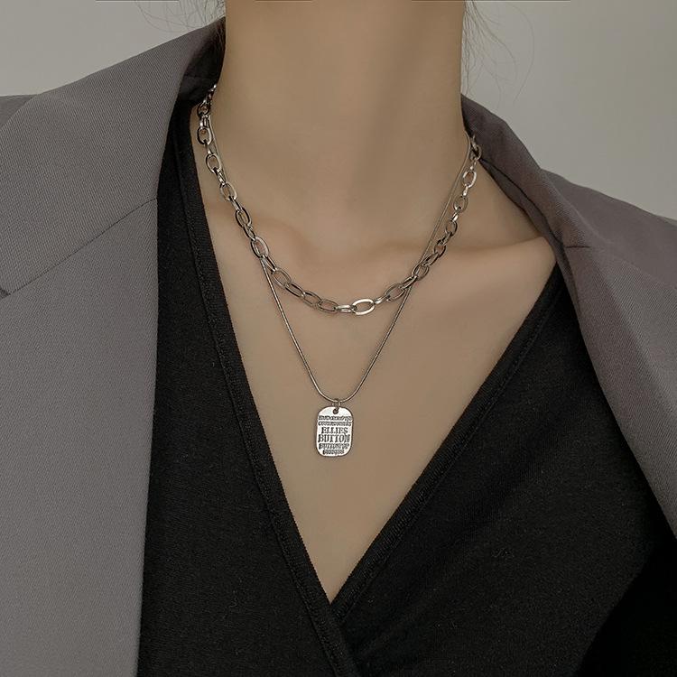 Collar apilado de doble capa para mujer, colgante cuadrado con letra personalizada, cadena de suéter, estilo hip hop, cadena de moda que no se decolora