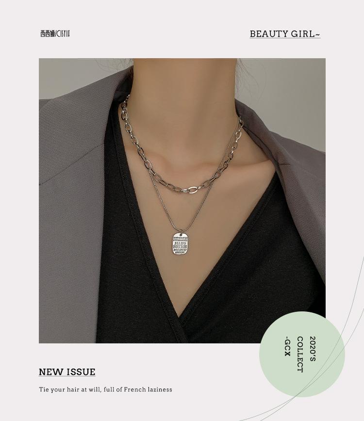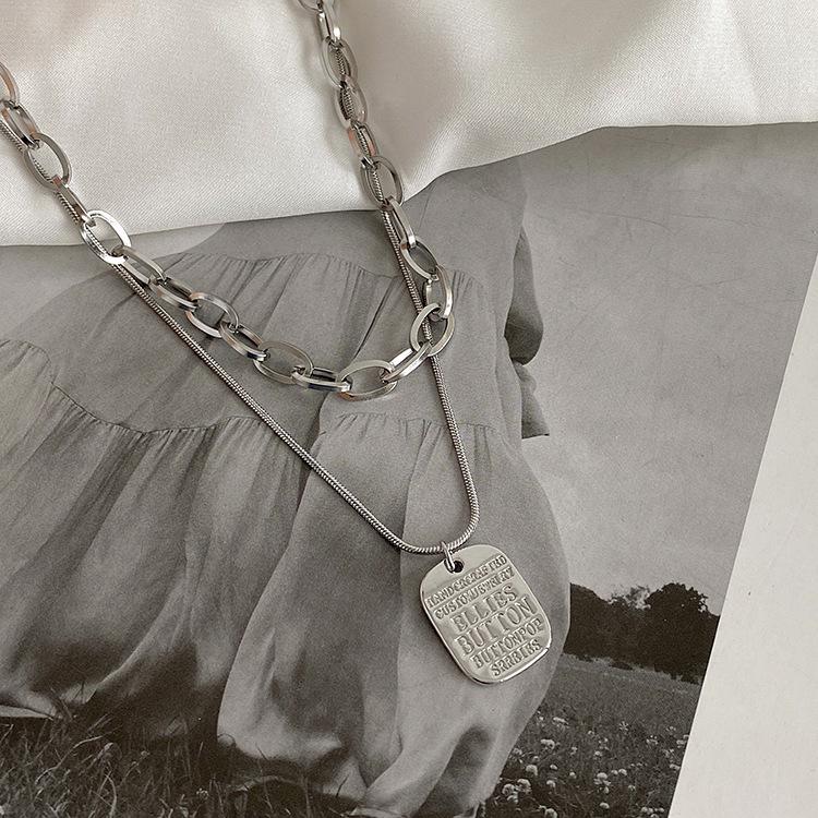 Compra Collar apilado de doble capa para mujer, colgante cuadrado con letra personalizada, cadena de suéter, estilo hip hop, cadena de moda que no se decolora al por mayor en Joom.pro